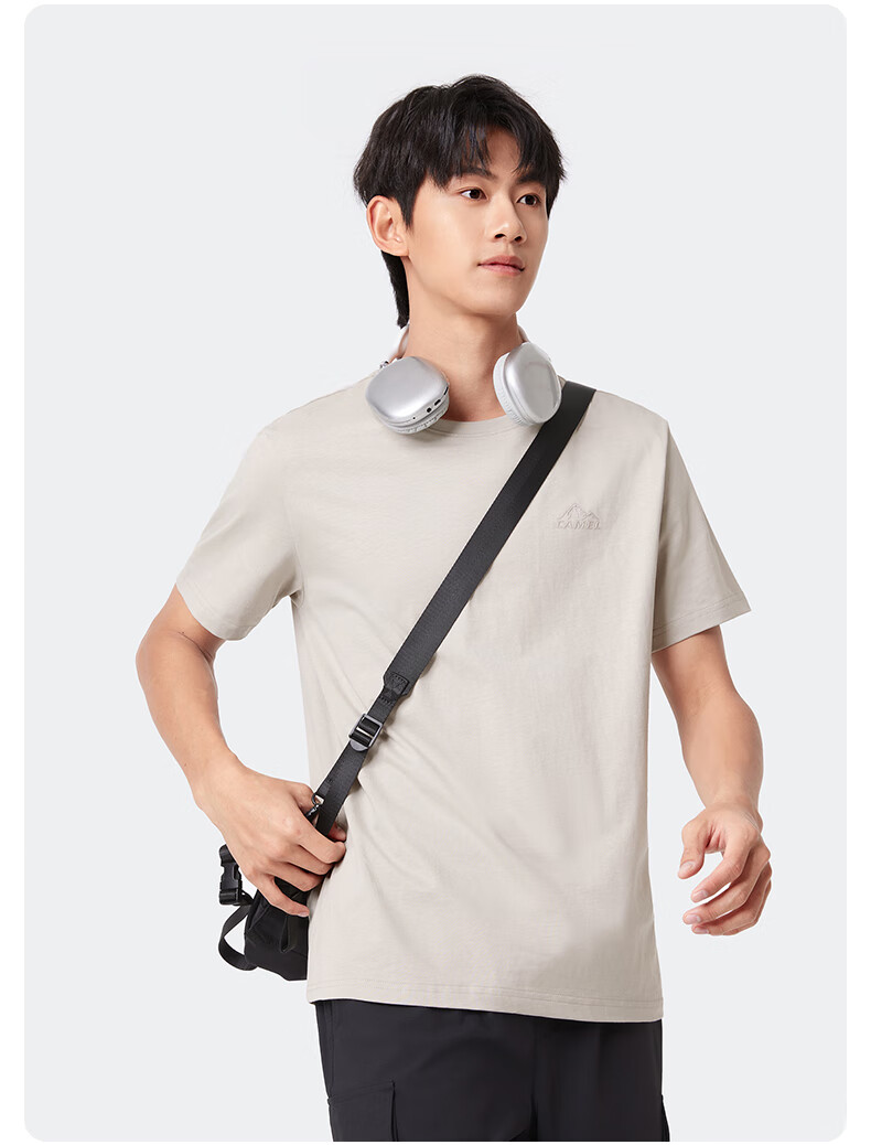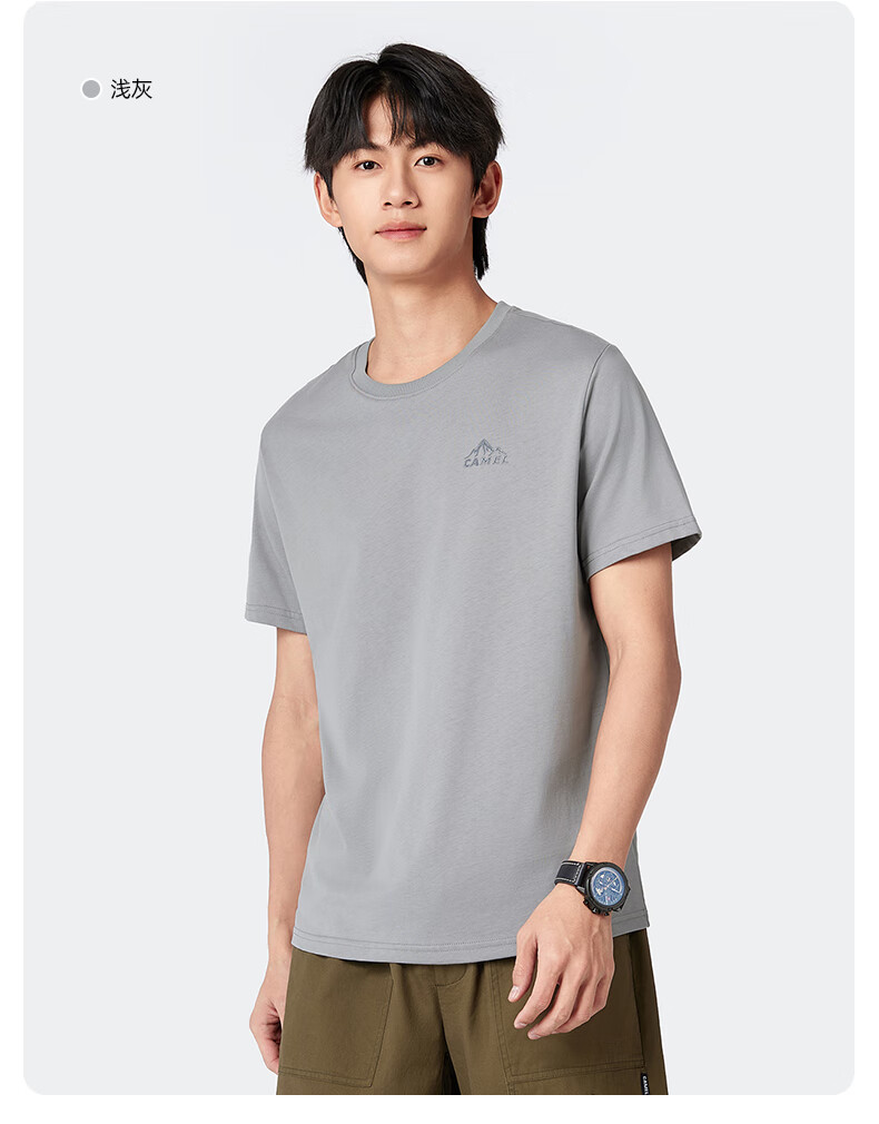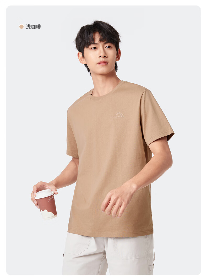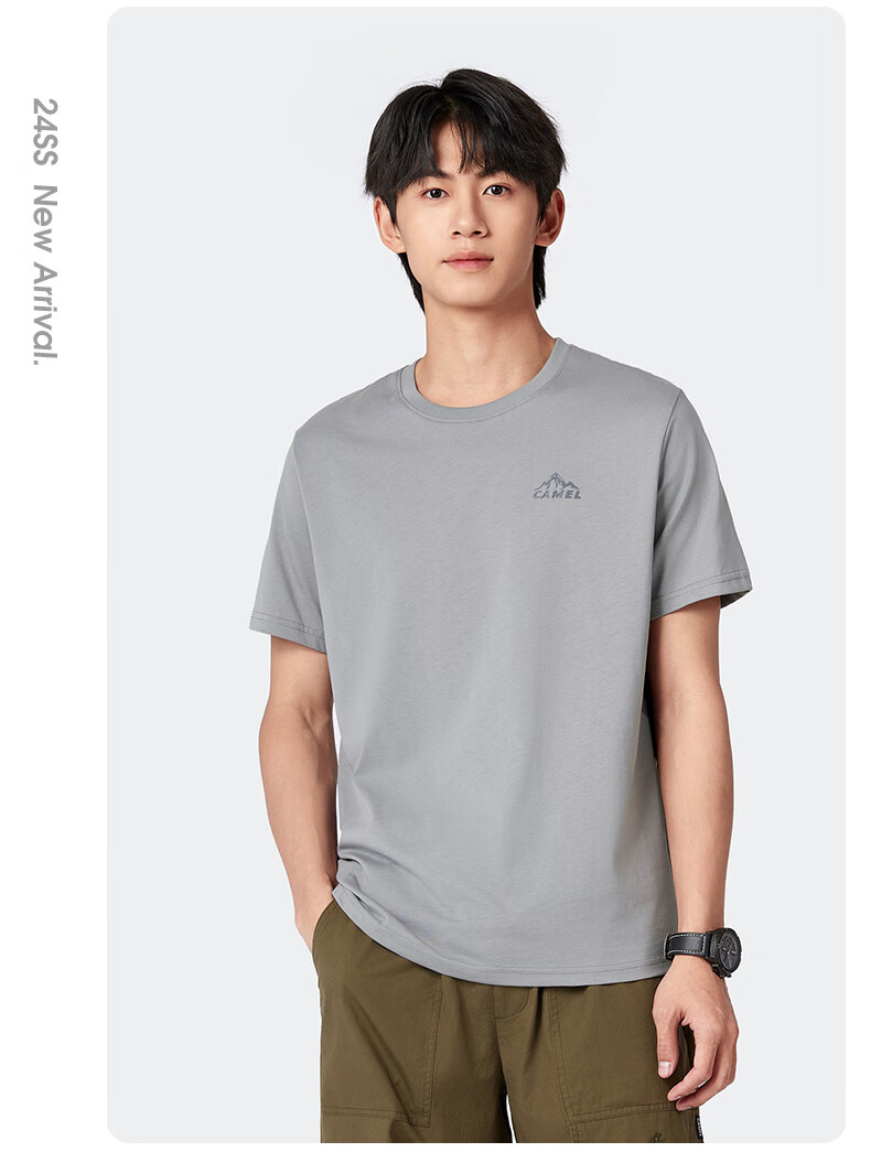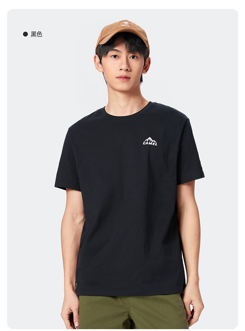 骆驼(CAMEL)纯棉透气短袖男士三防圆领弹力宽松百搭印花T恤夏季M13BAQR045A