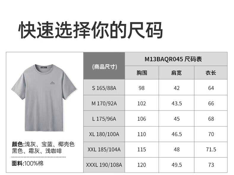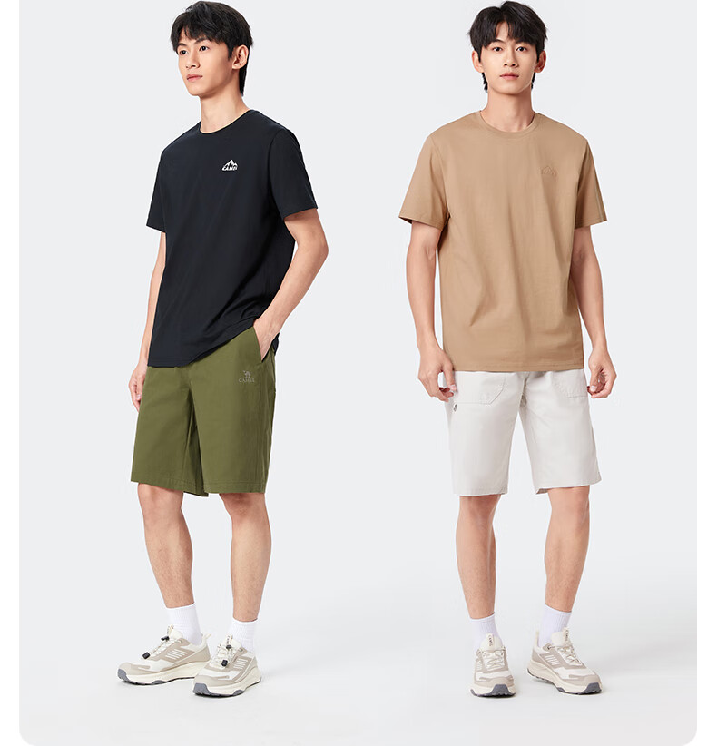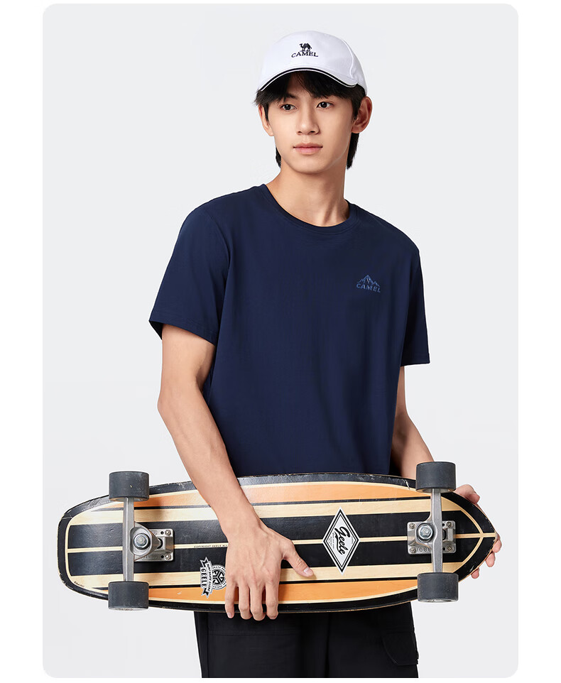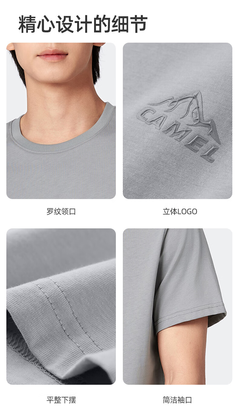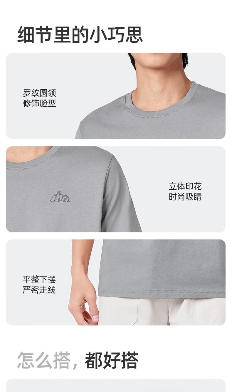 骆驼(CAMEL)纯棉透气短袖男士三防圆领弹力宽松百搭印花T恤夏季M13BAQR045A