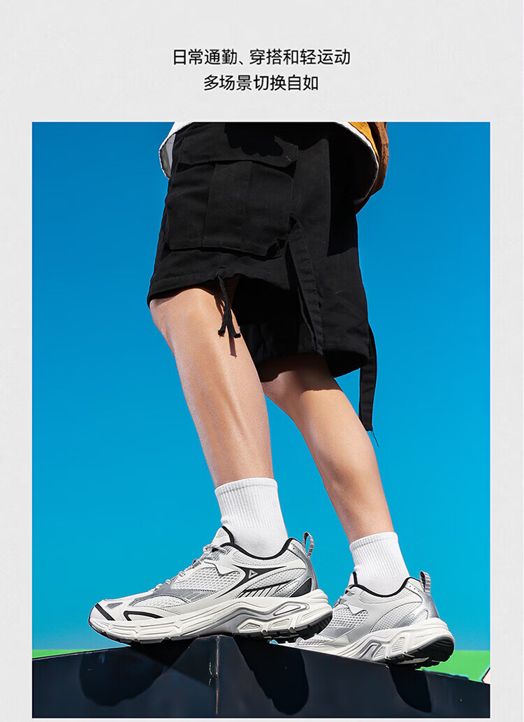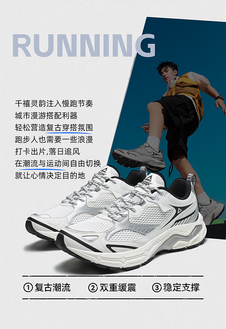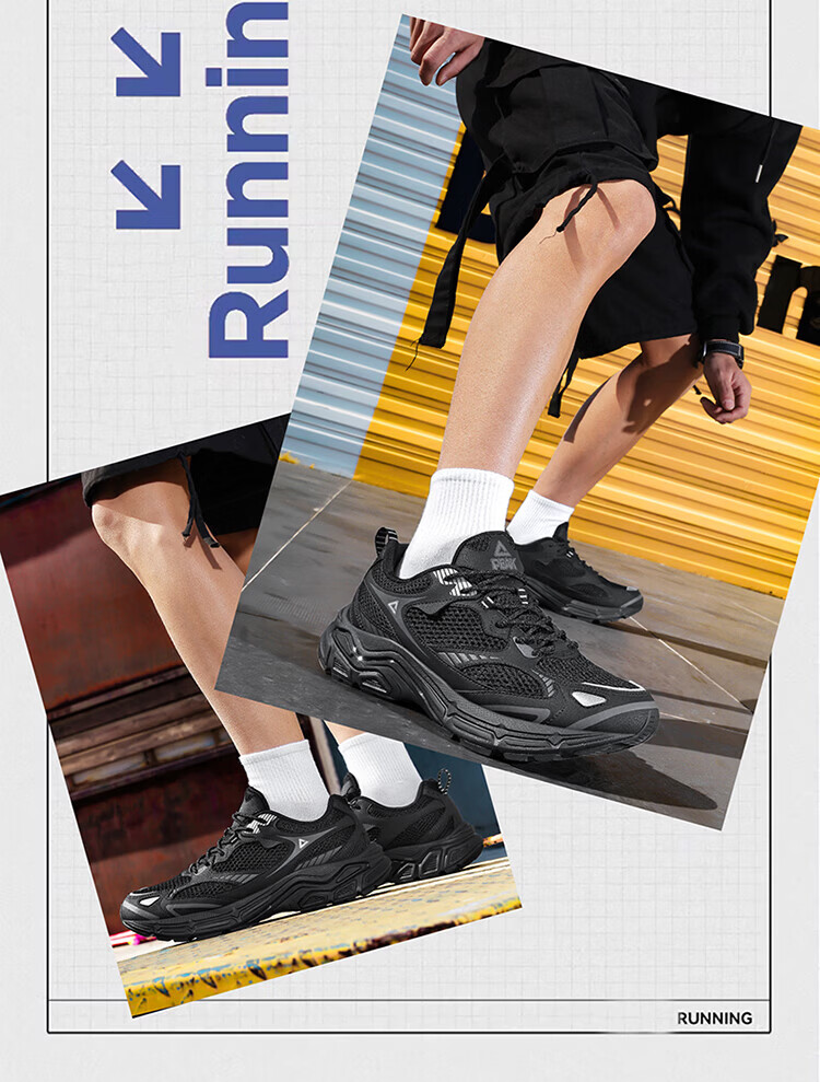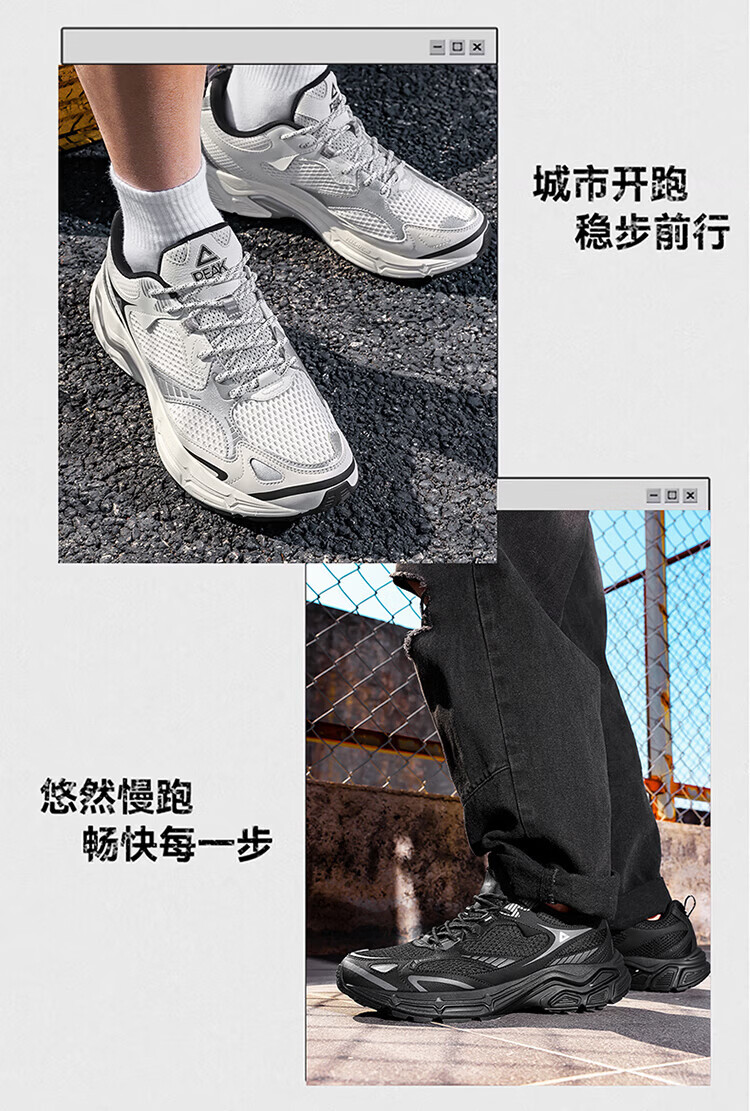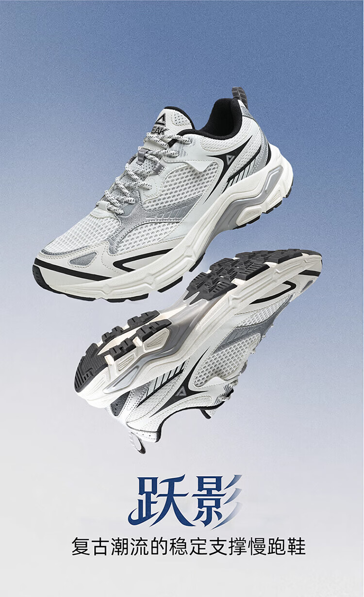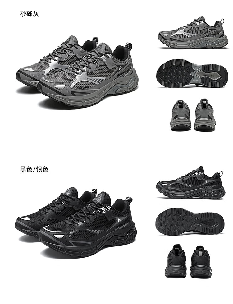 匹克(PEAK)态极跃影跑步鞋夏季透气网面户外缓震男休闲运动老爹鞋 黑色/银色 42