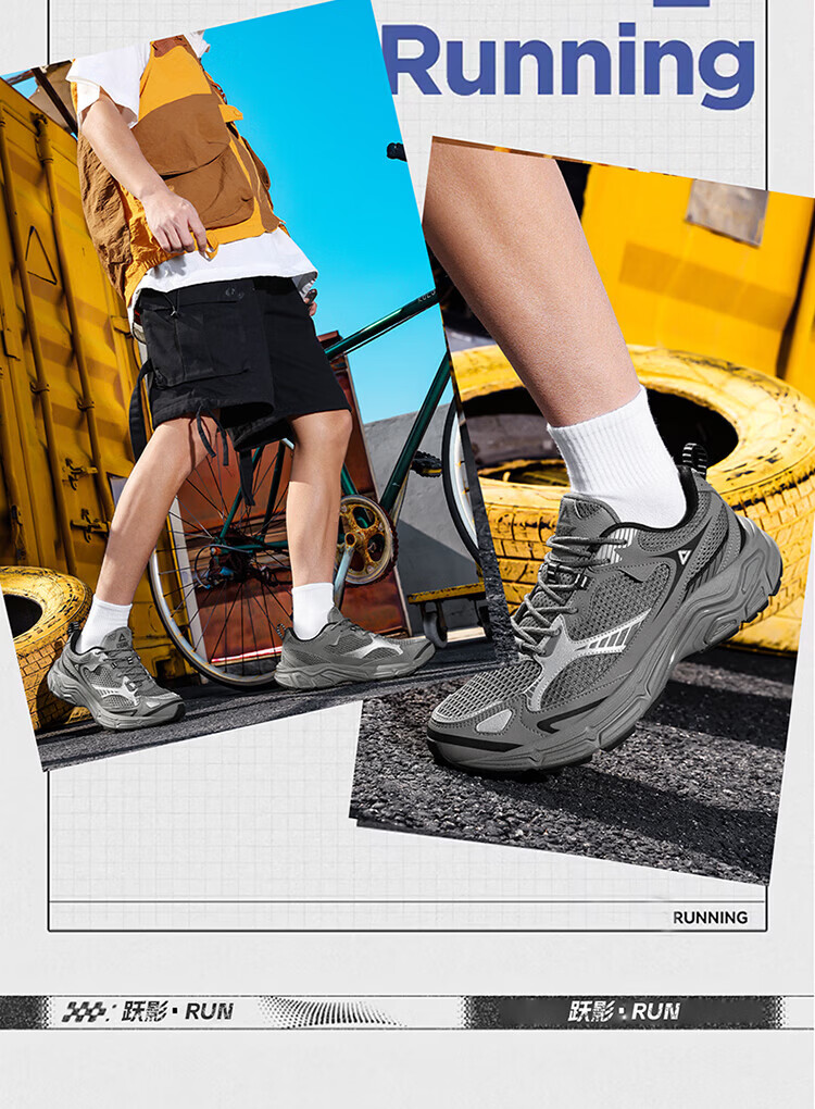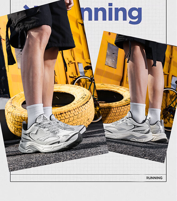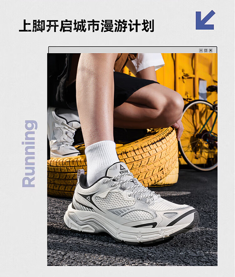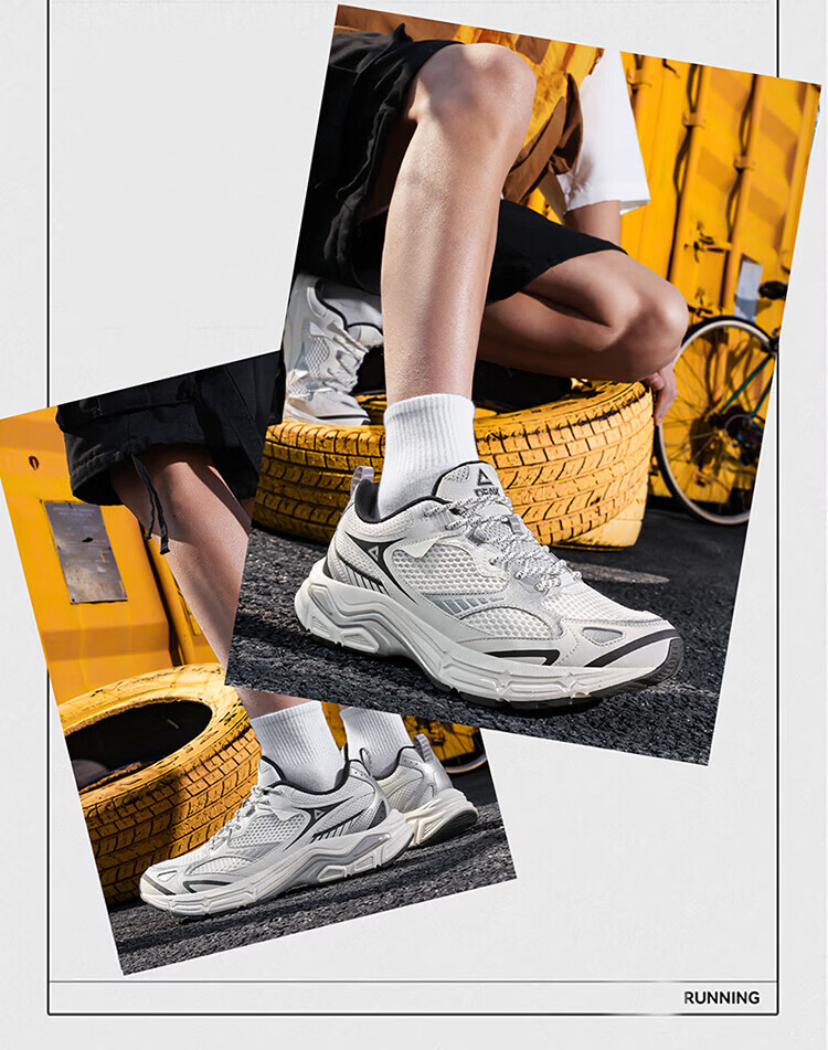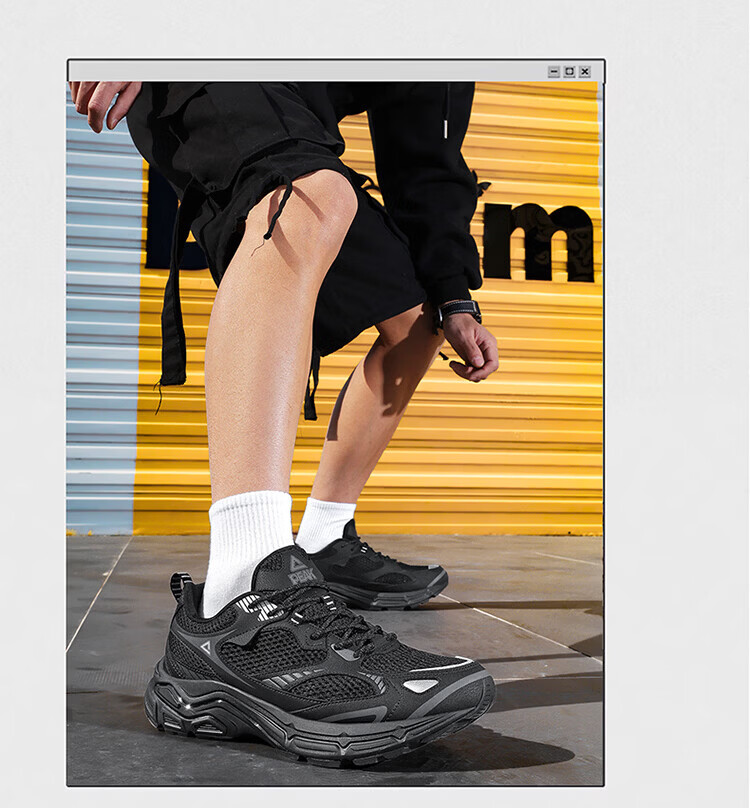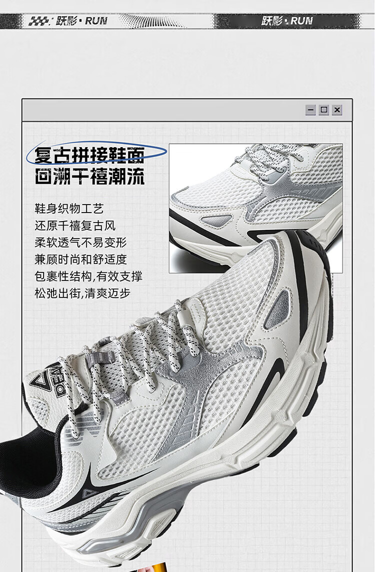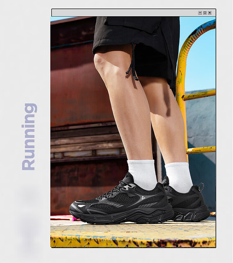 匹克(PEAK)态极跃影跑步鞋夏季透气网面户外缓震男休闲运动老爹鞋 黑色/银色 42