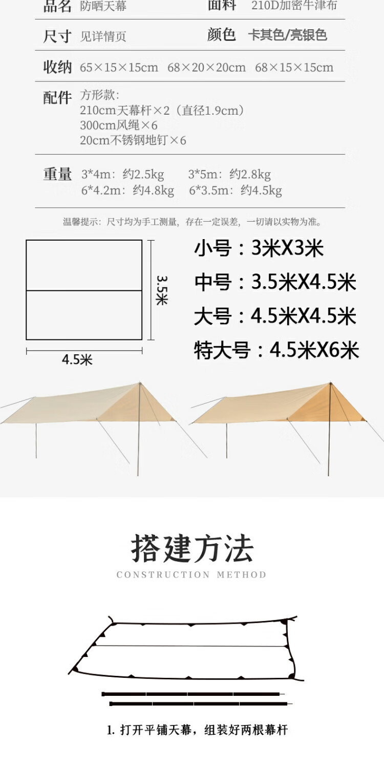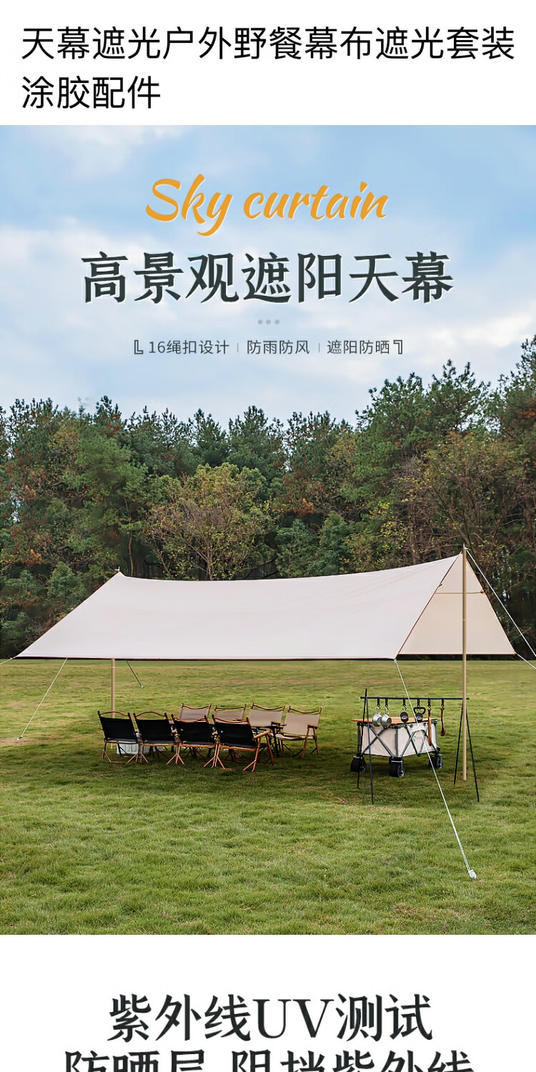 羚特天幕遮光户外野餐幕布遮光套装涂胶配件 银胶四角天幕3米*4.5米 银胶四角天幕3米*4.5米
