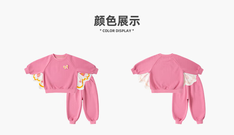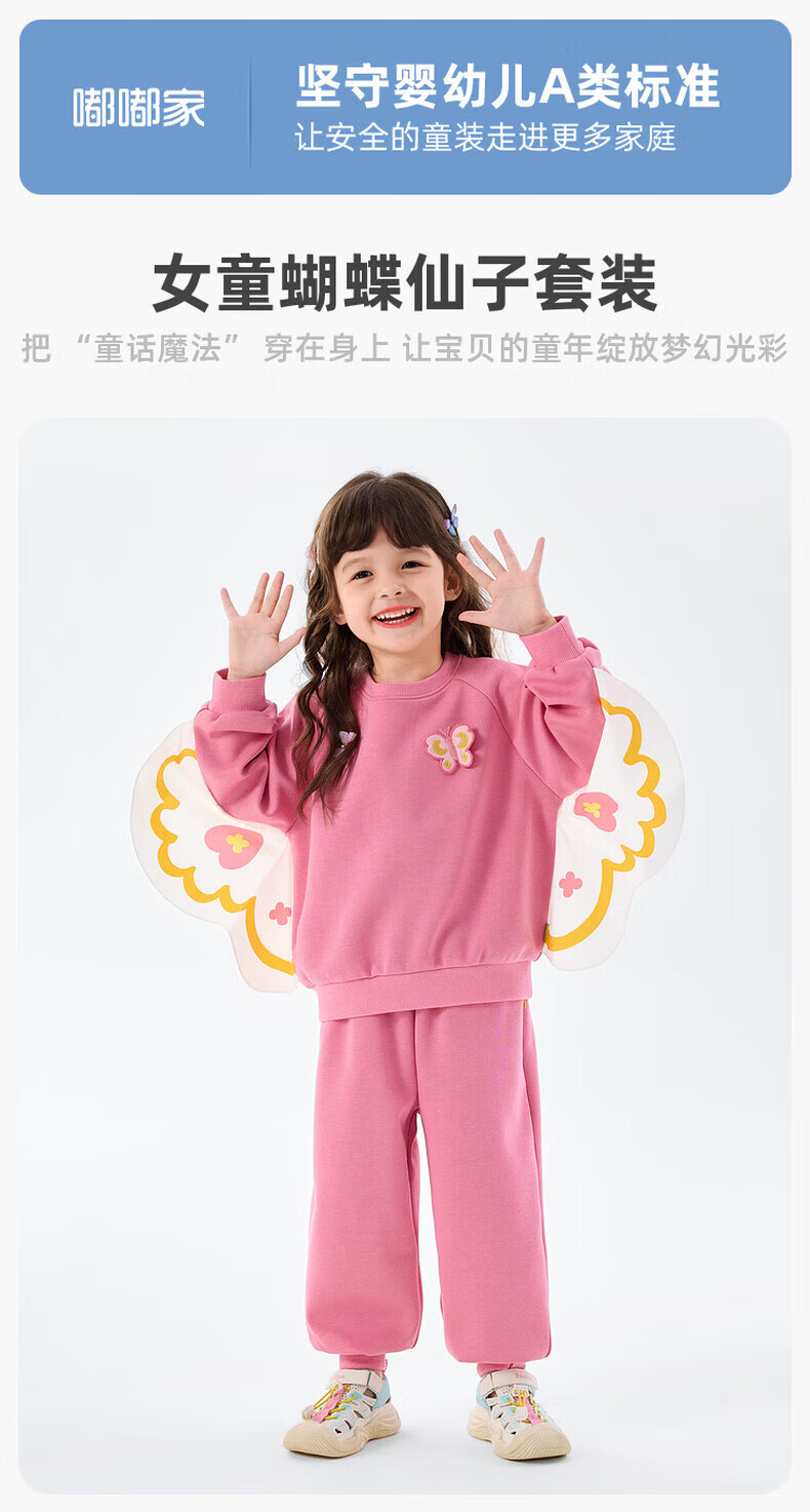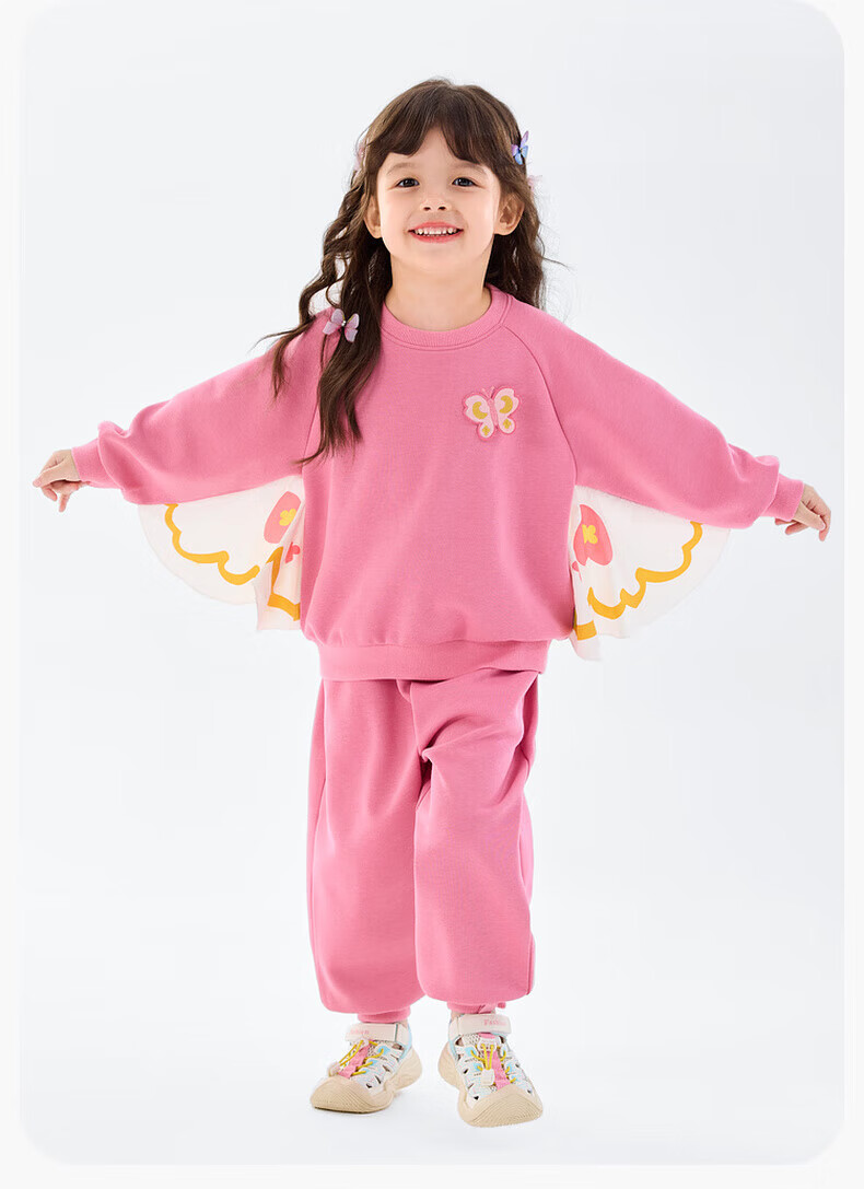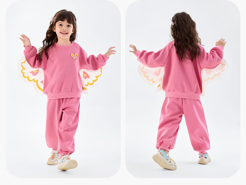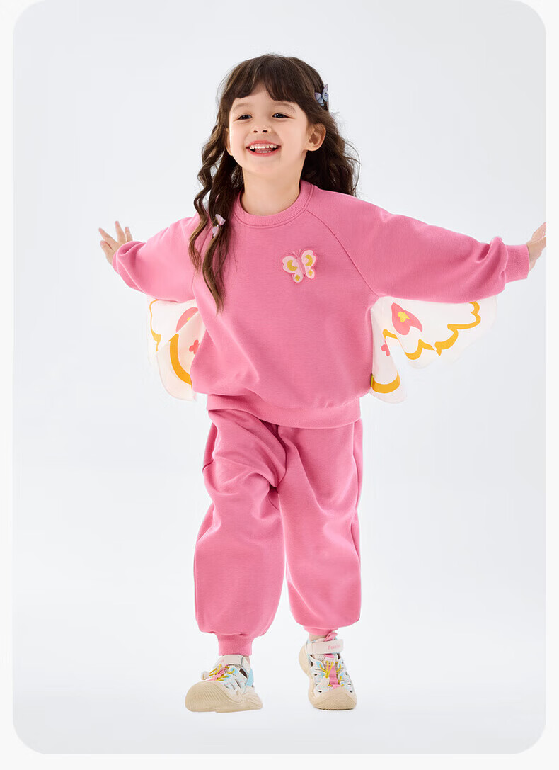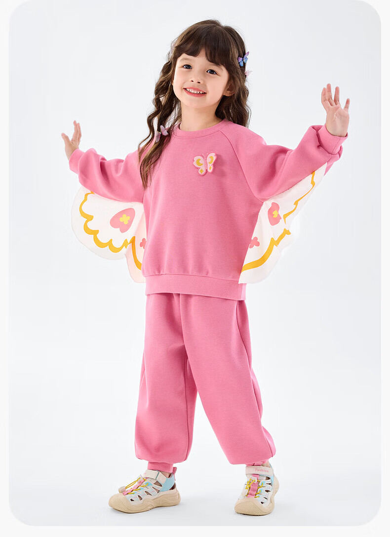 嘟嘟家【蝴蝶装饰】女童春季卫衣套装儿童甜美春装可爱两件套休闲针织衫 海石竹粉 120