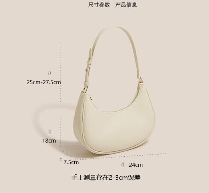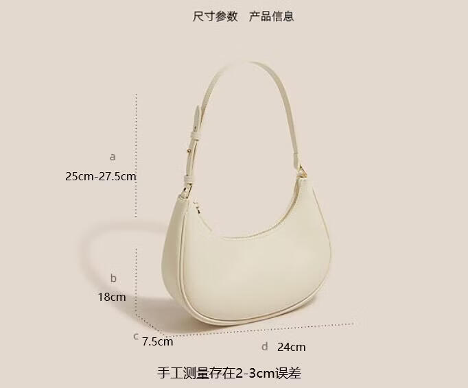 【厂家直发】2025春季简约腋下包单肩小众法棍包包女斜挎包半月包 乳白色