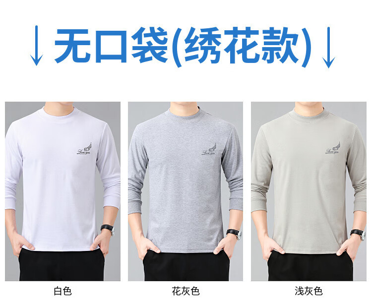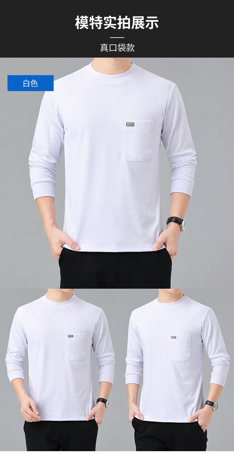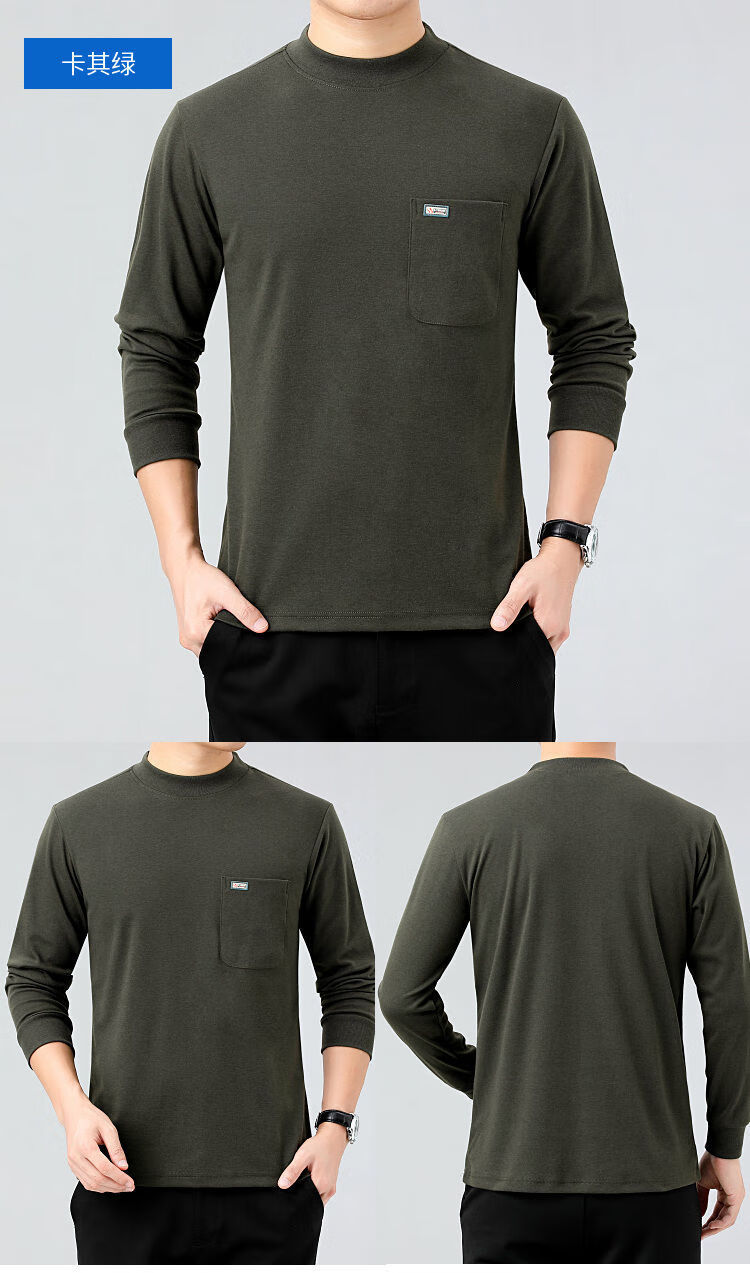 纯棉爸爸长袖t恤中老年秋衣上衣男半高领口袋中年冬天打底衫体恤 6606中绿灰 XL 135-150斤