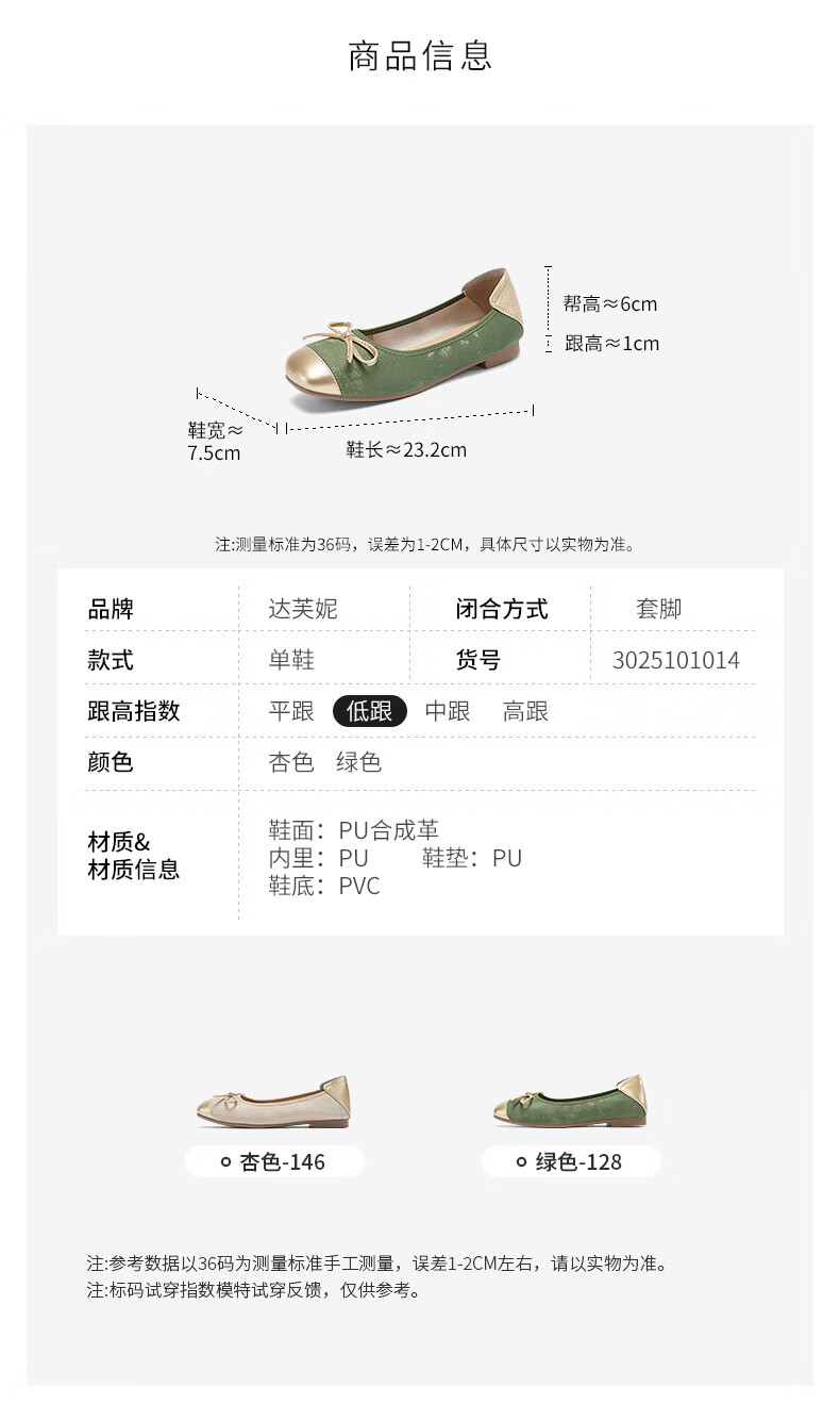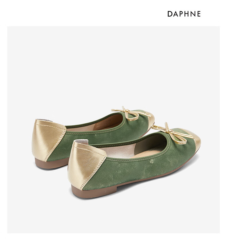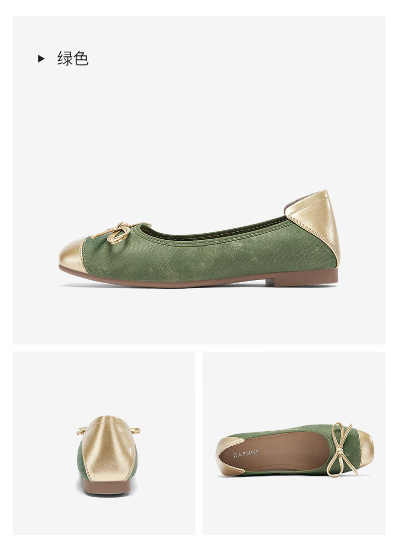 达芙妮平底单鞋女2026新款春季法式蝴蝶结芭蕾舞鞋温柔玛丽珍鞋女ZJ 绿色 36
