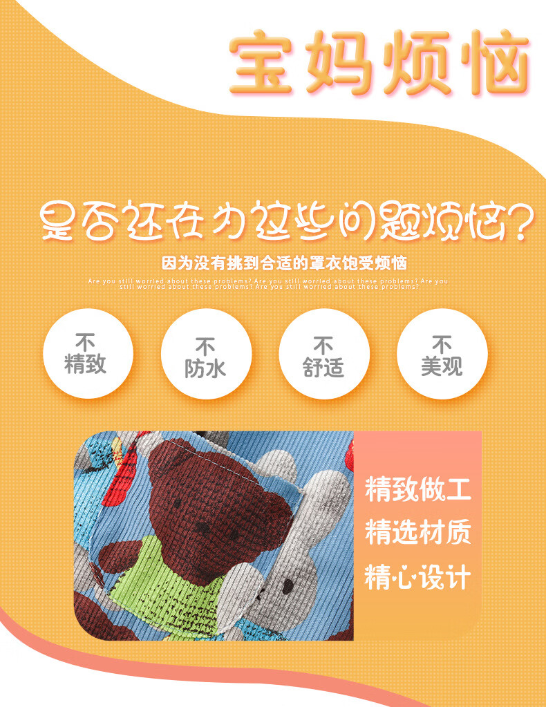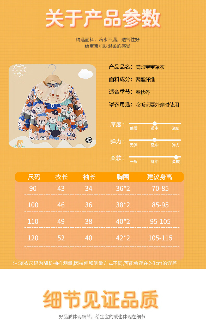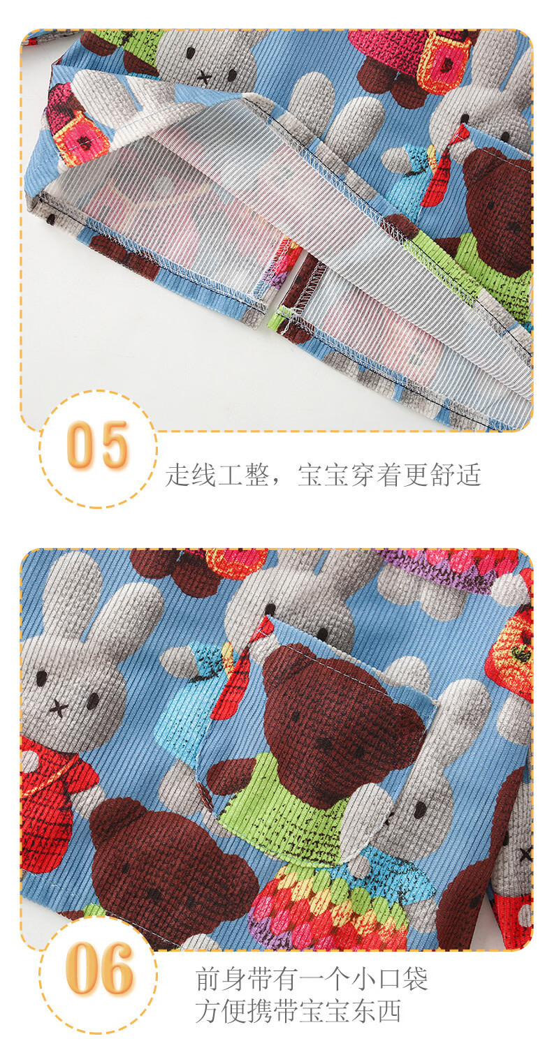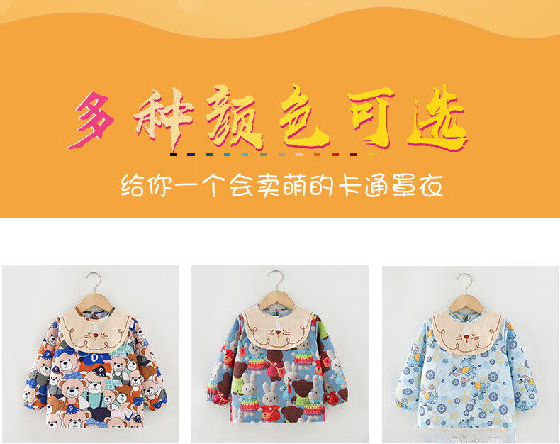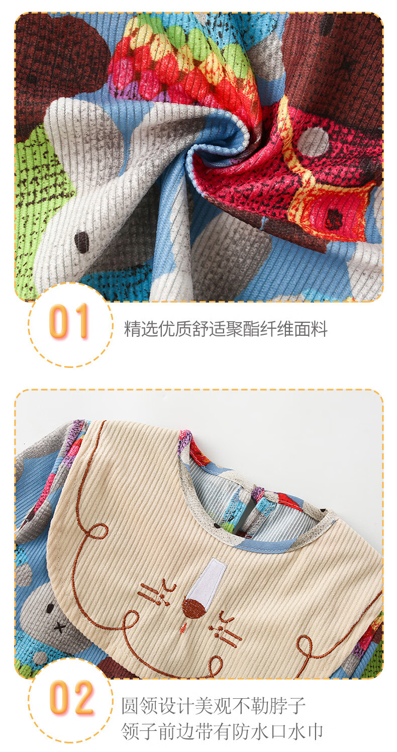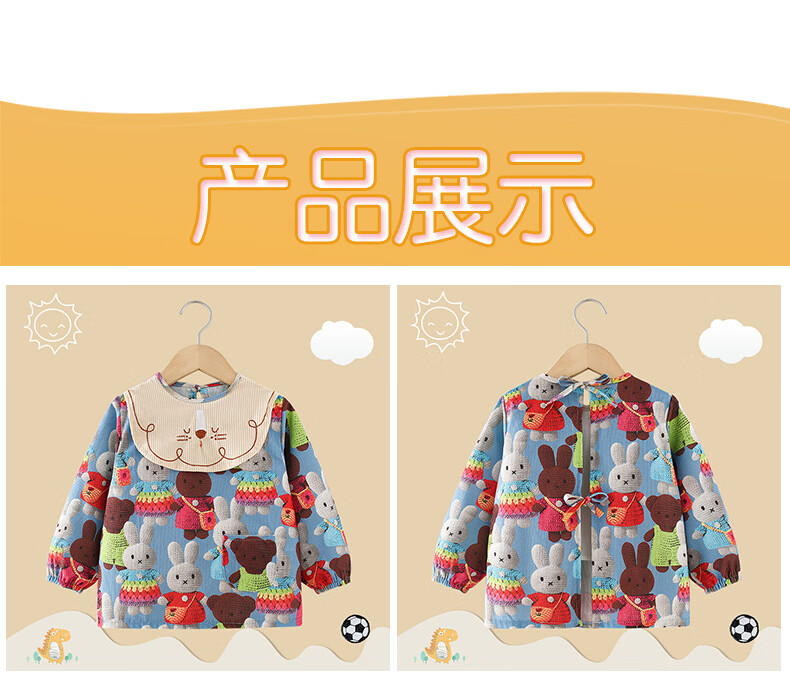 【直发】宝宝罩衣吃饭围兜防水防脏2024新款秋冬季儿童围裙反穿衣 满印立体兔 90码【建议0-2岁】