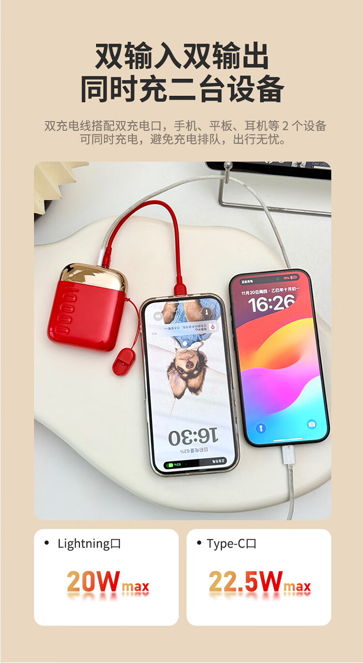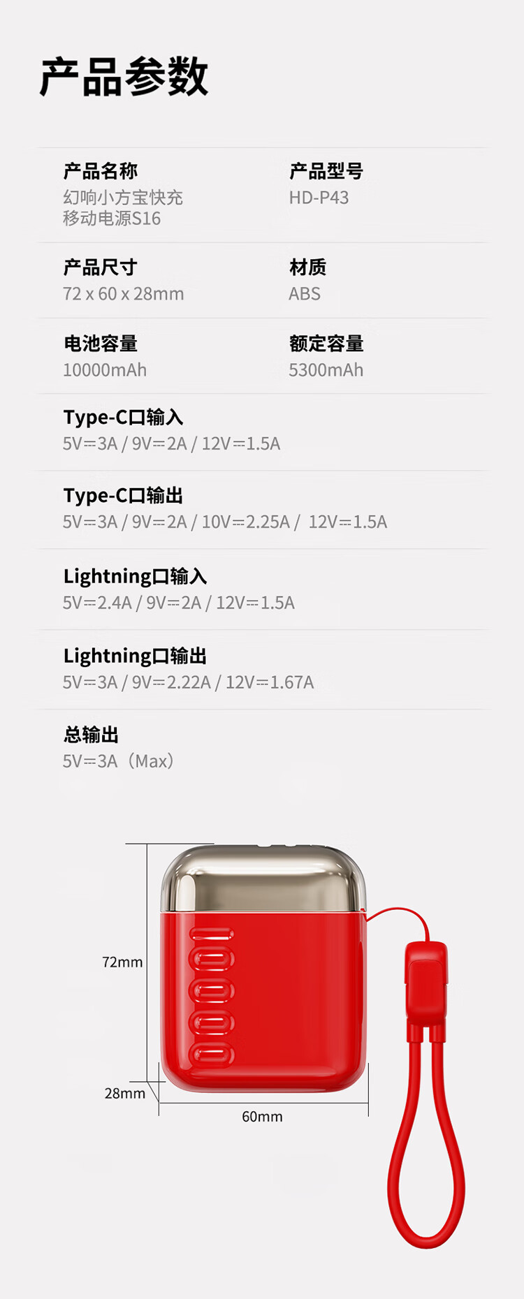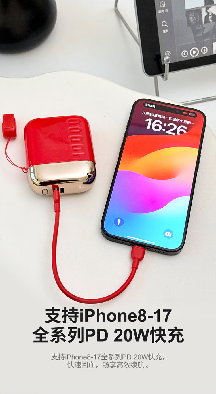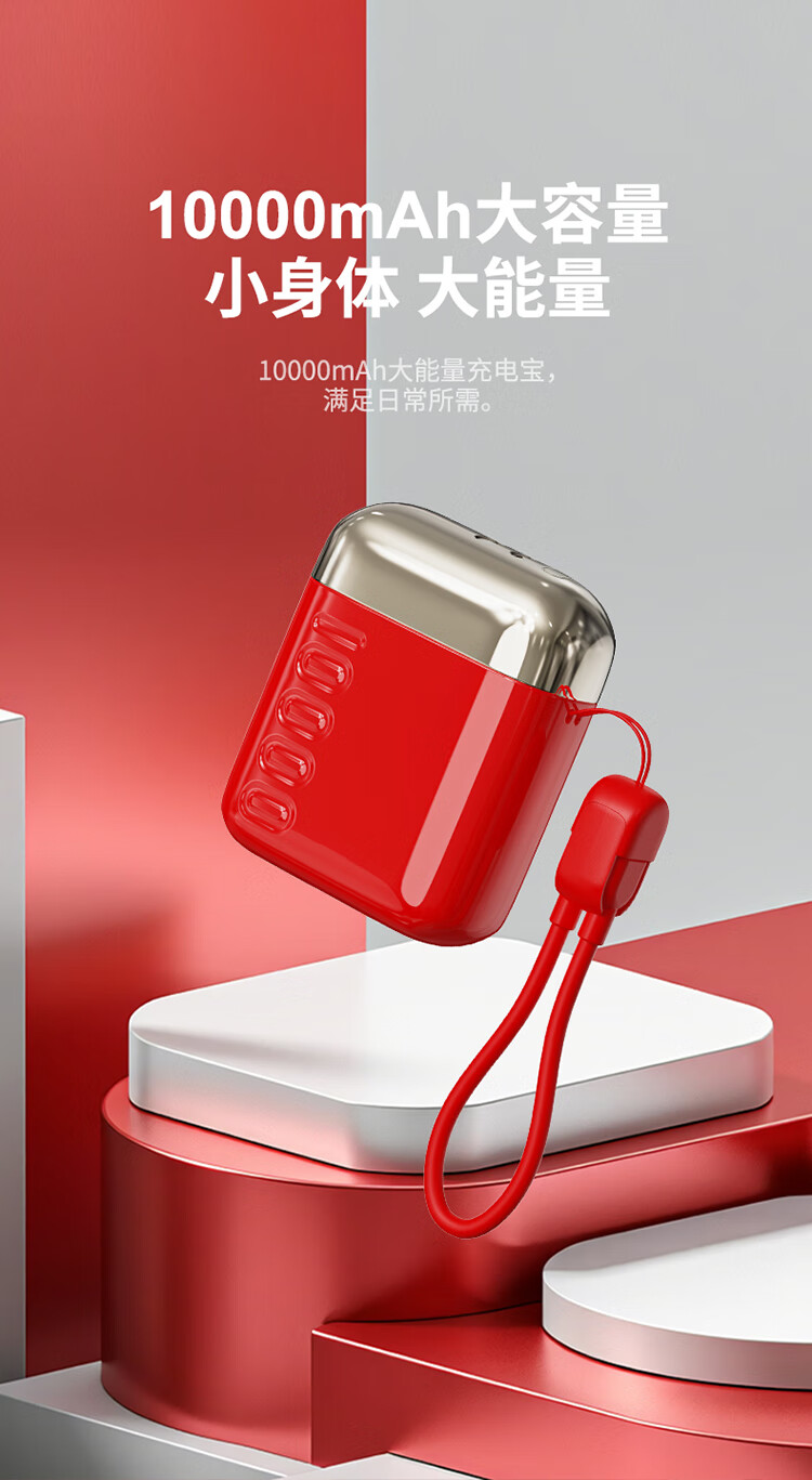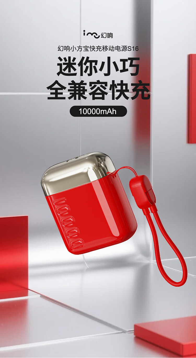 幻响(i-mu)S16充电宝马上红10000mAh小巧便携1万毫安支持超级快充大容量适用于苹果华为小米安卓等 S16【红色】