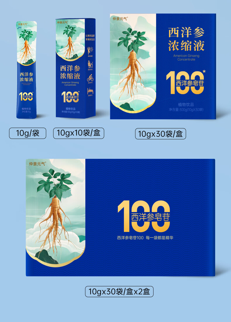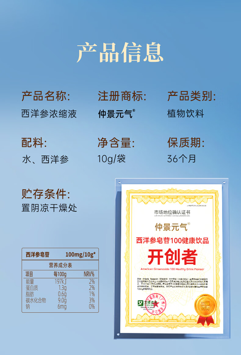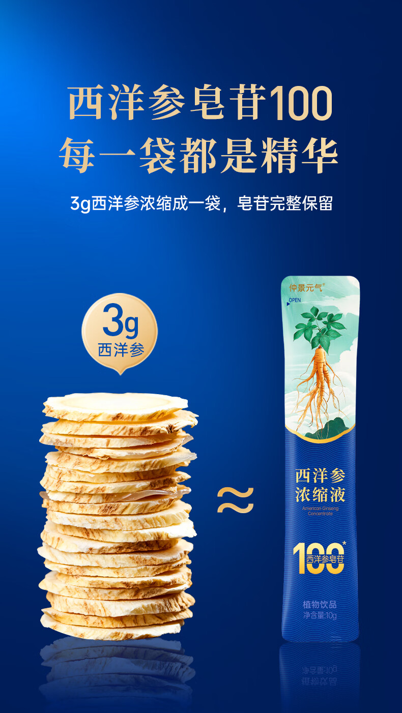 仲景元气西洋参浓缩液皂苷100滋补保健礼养生营养品送长辈 【润养小试】 10g*10袋