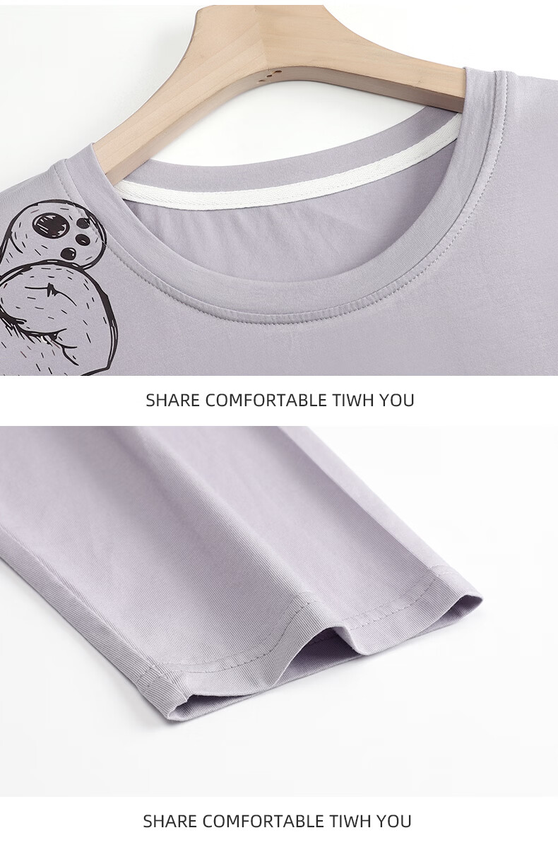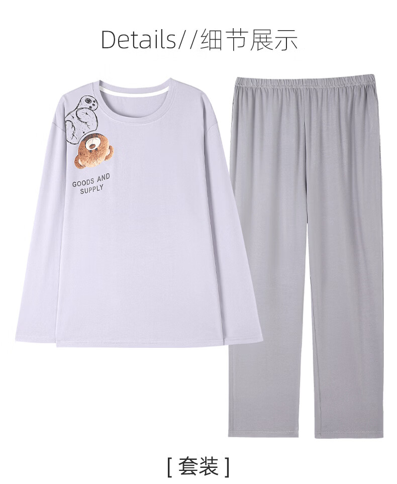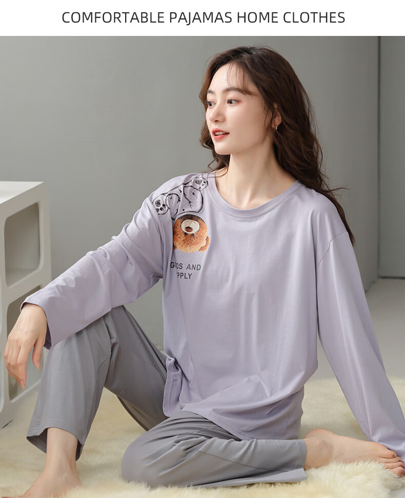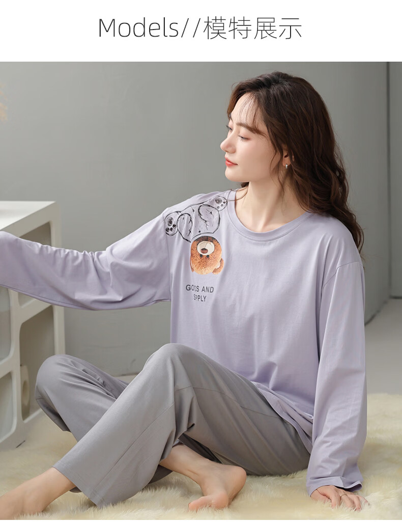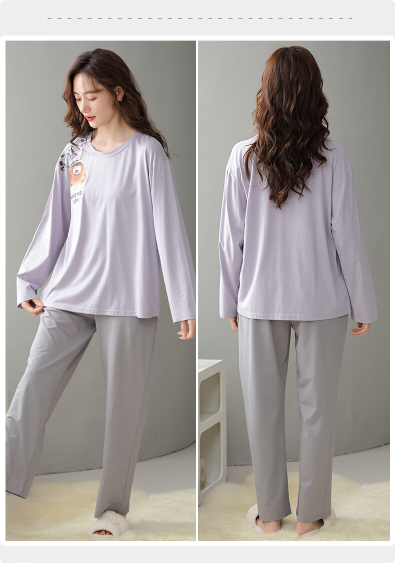 叶盼(yepan)【柔软】睡衣女春秋季莫代尔长袖宽松大码夏季薄款女士家居服套装 4355-灰紫 M (160) :建议90-110斤穿着