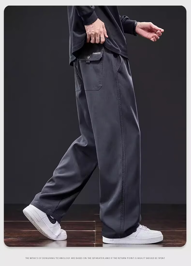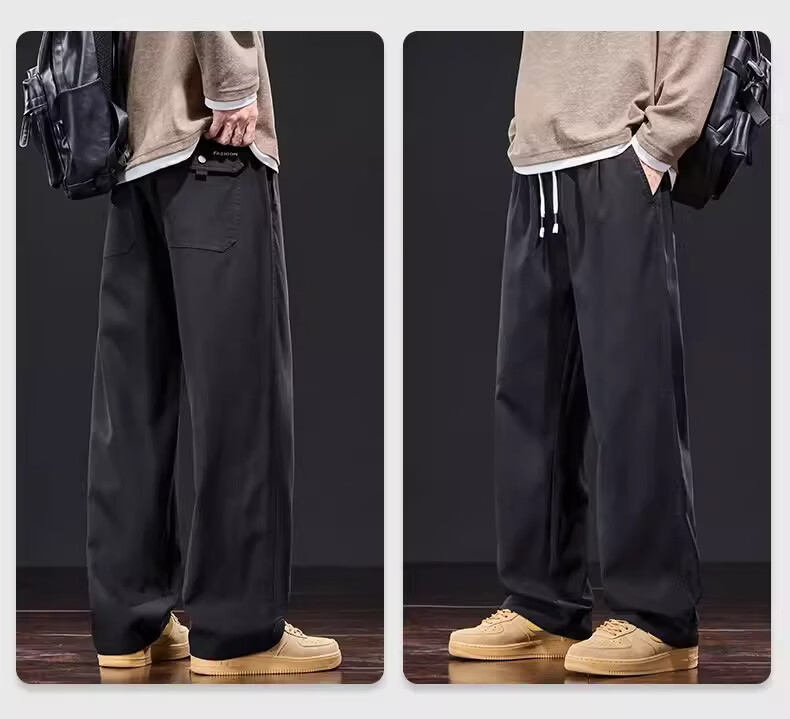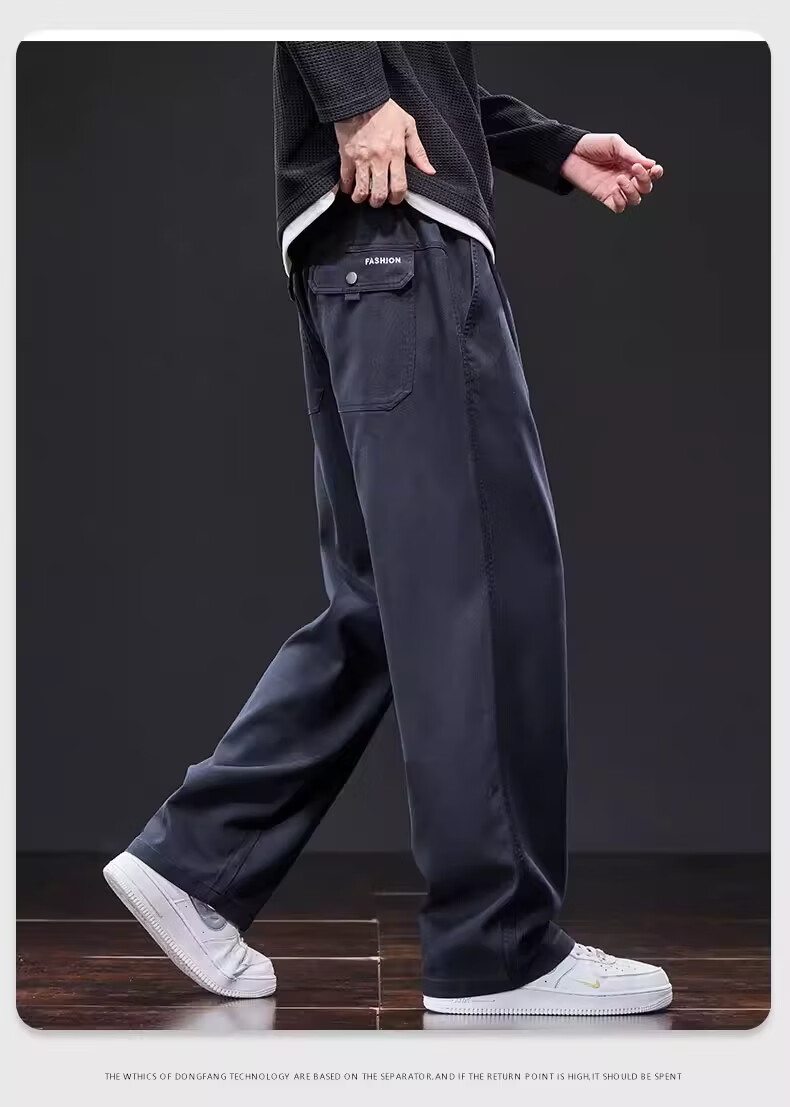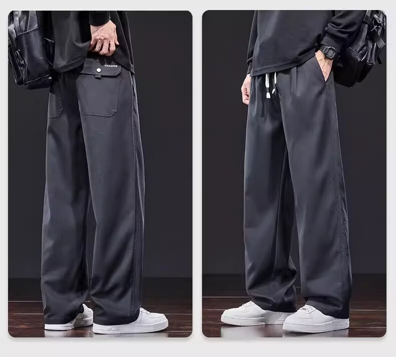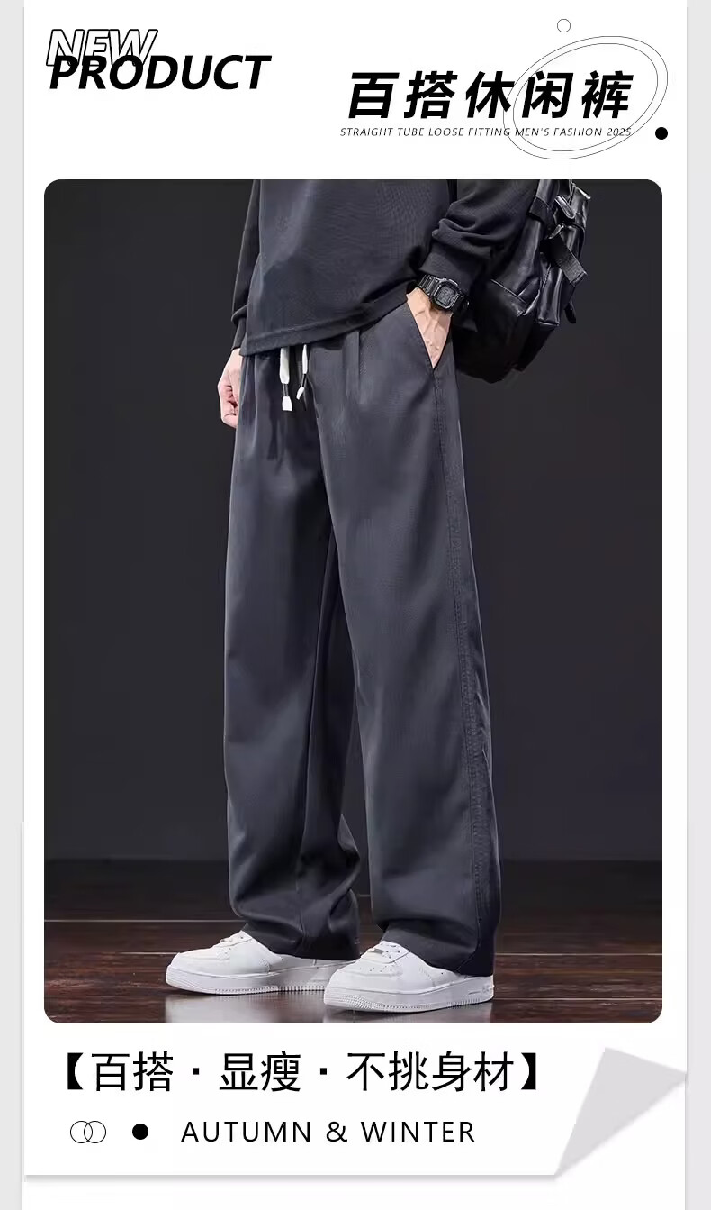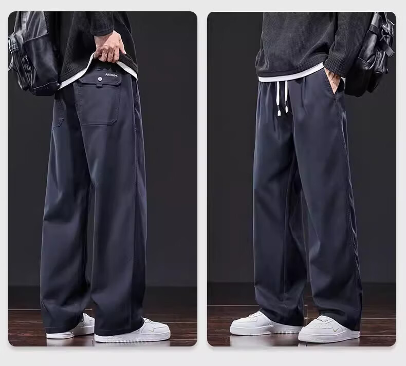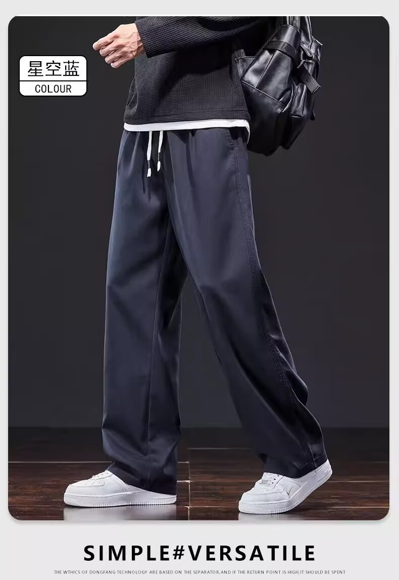 真维斯美式复古休闲裤男士2026新款春季潮牌宽松直筒抽绳垂感阔腿长裤子 星空蓝 M