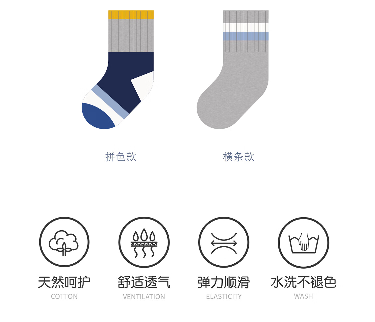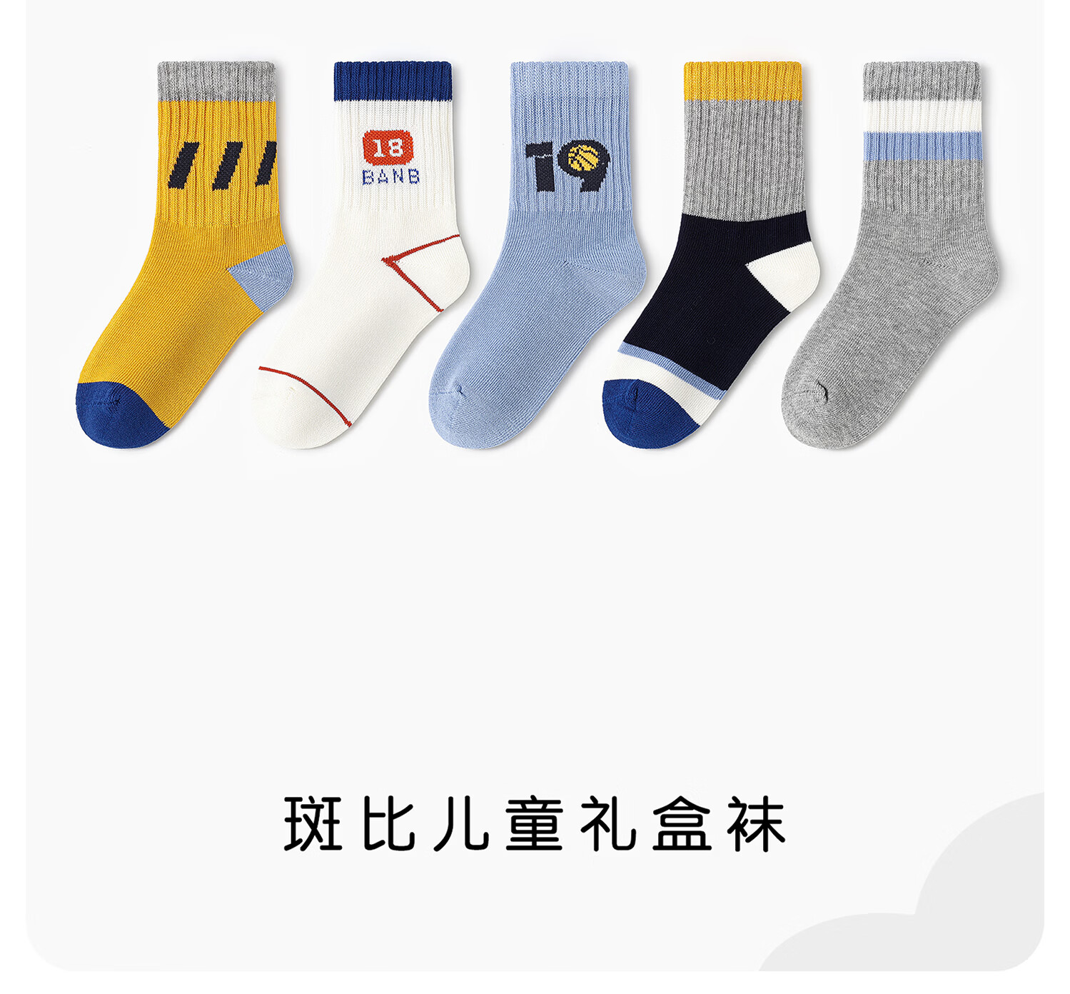 斑比儿童春秋运动款棉袜大童男孩学生秋冬季篮球袜中筒袜子 BB23519 儿童秋冬运动款袜子 5双 3-5岁 建议脚码21-26码【16-18】