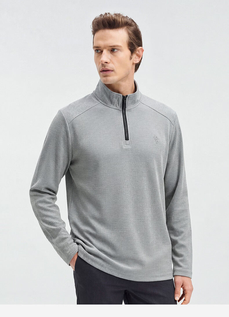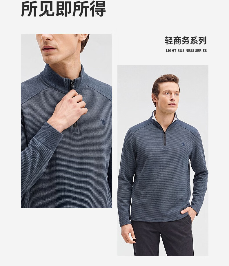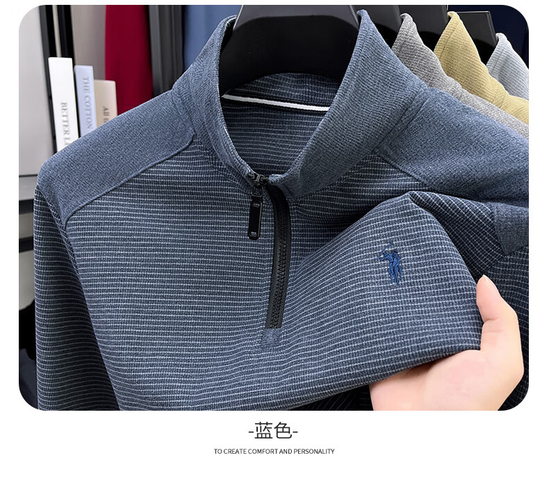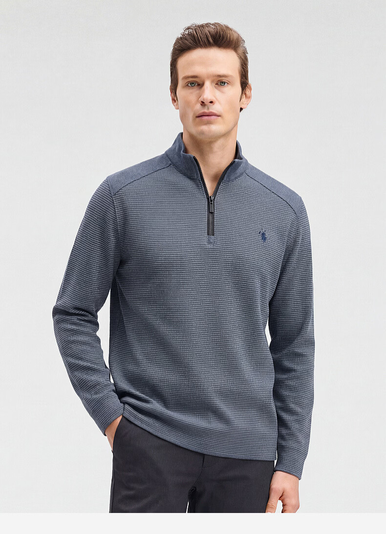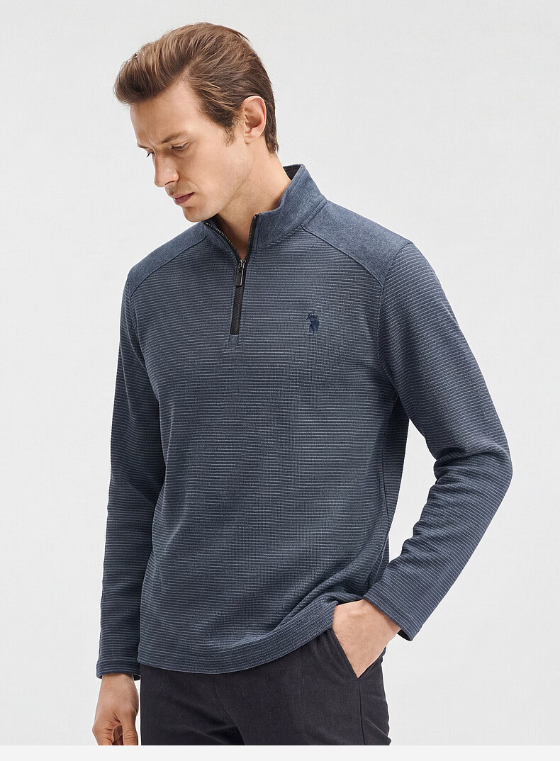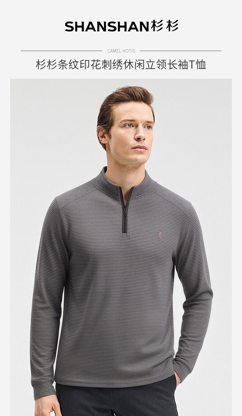 SHANSHAN杉杉【莱赛尔锦氨弹力】长袖t恤男半拉链立领POLO衫打底春秋新款 蓝色 L /175