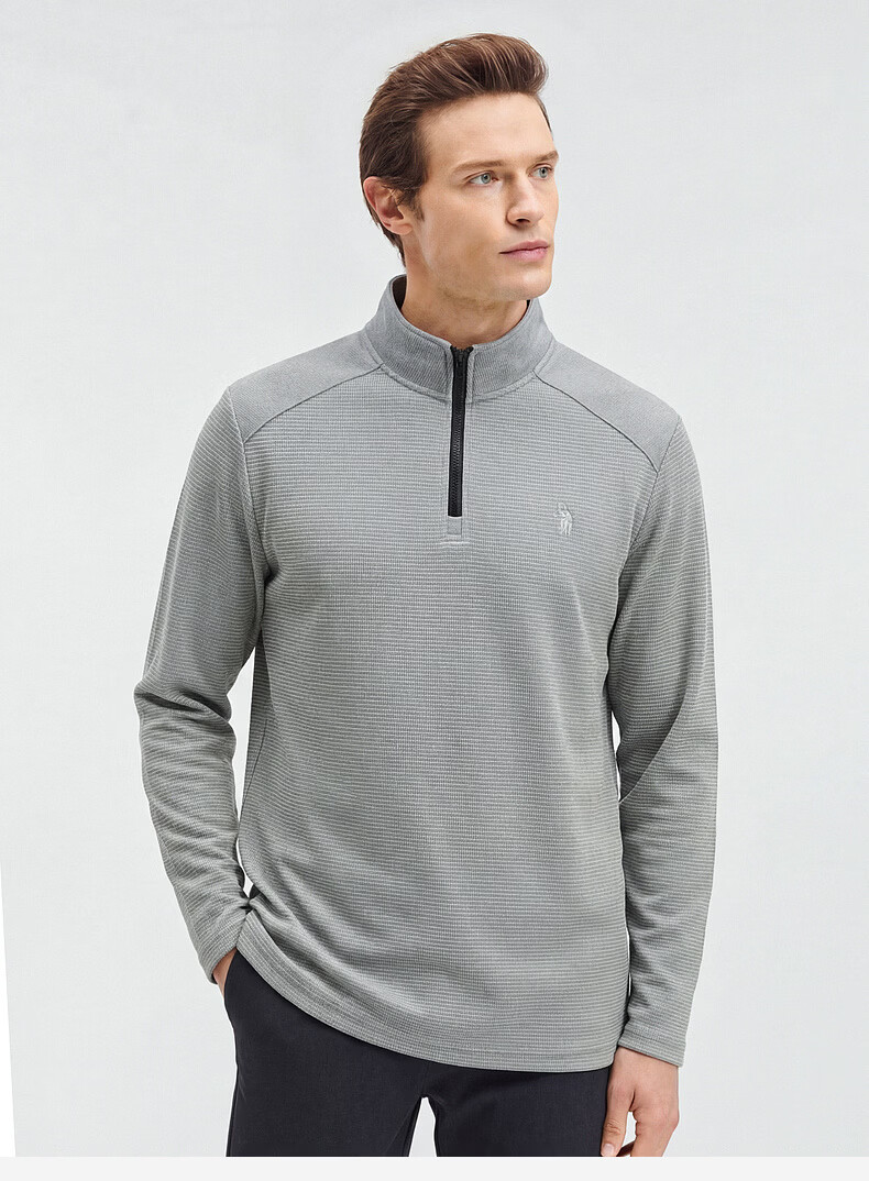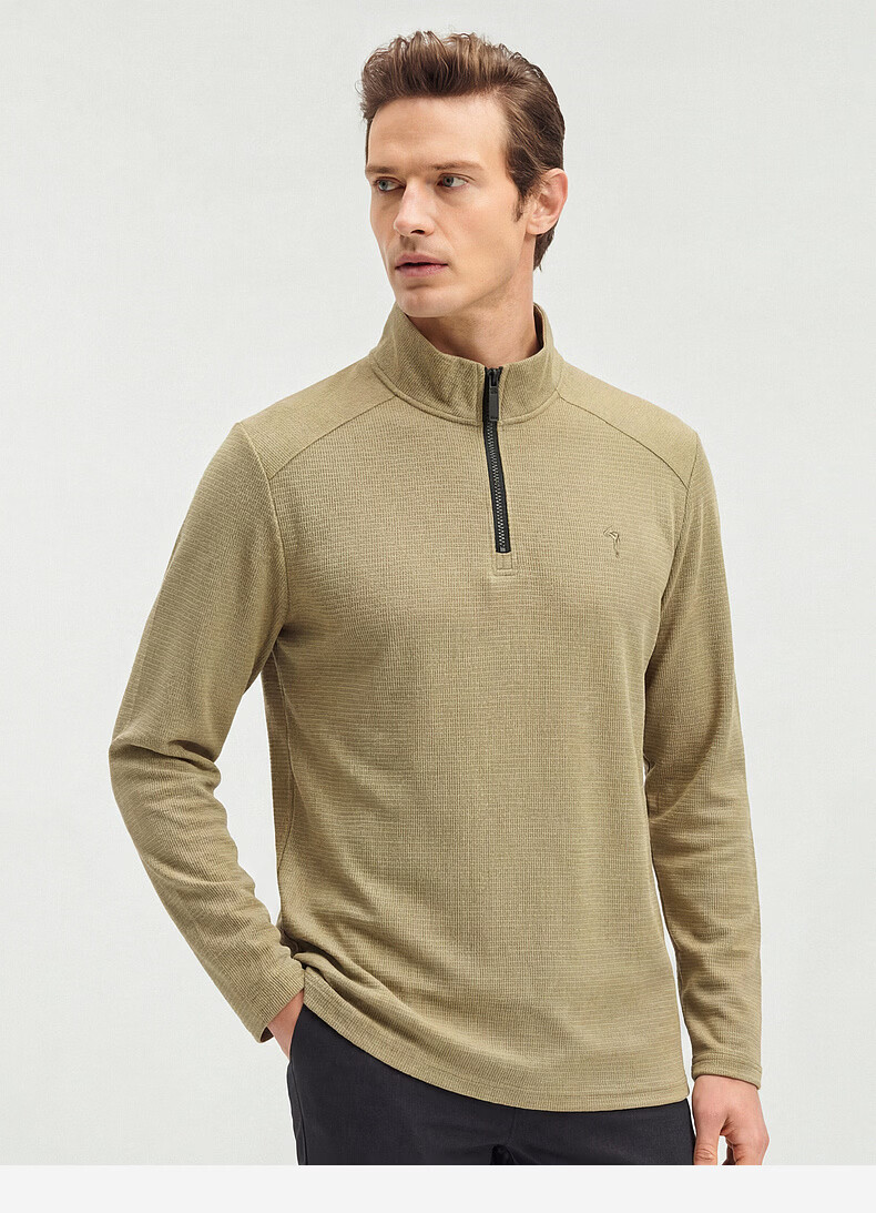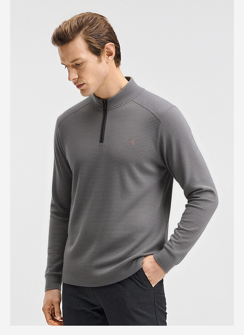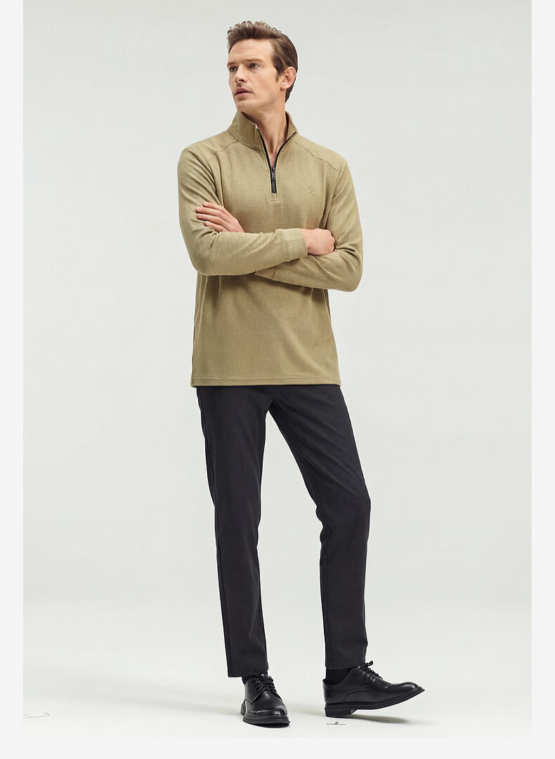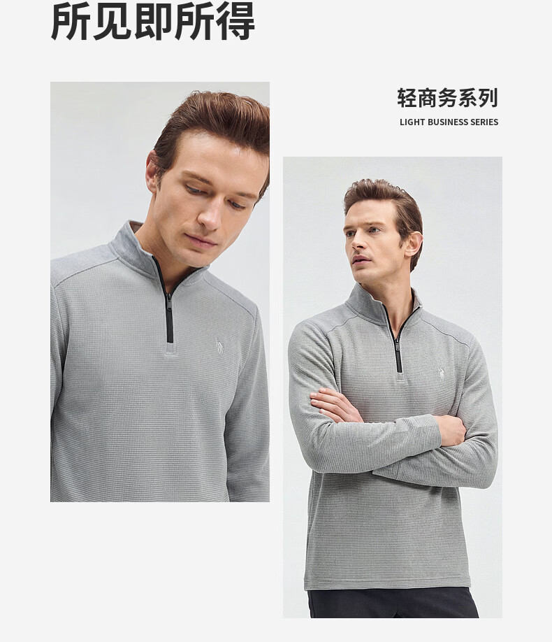 SHANSHAN杉杉【莱赛尔锦氨弹力】长袖t恤男半拉链立领POLO衫打底春秋新款 蓝色 L /175
