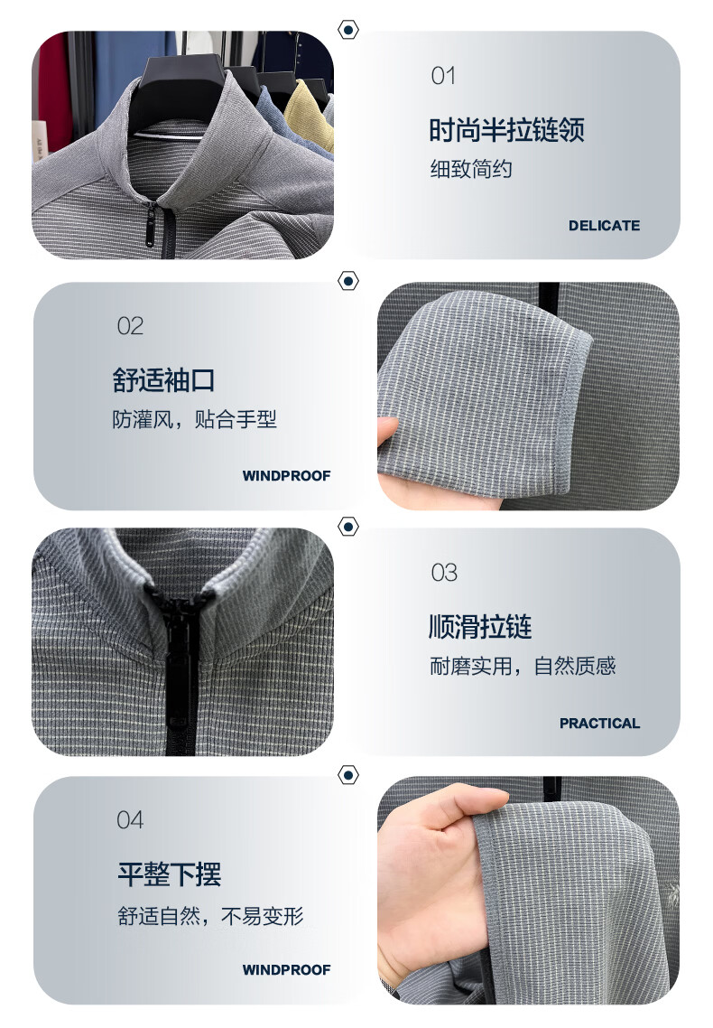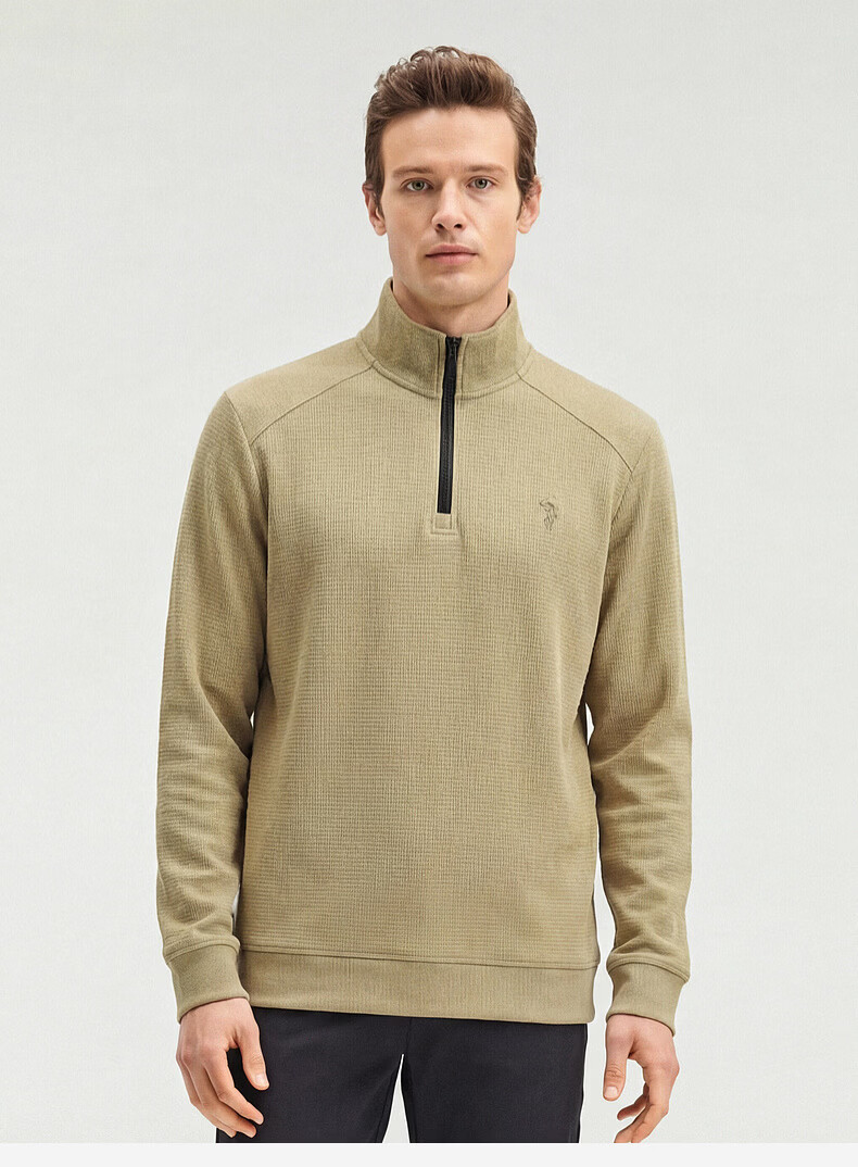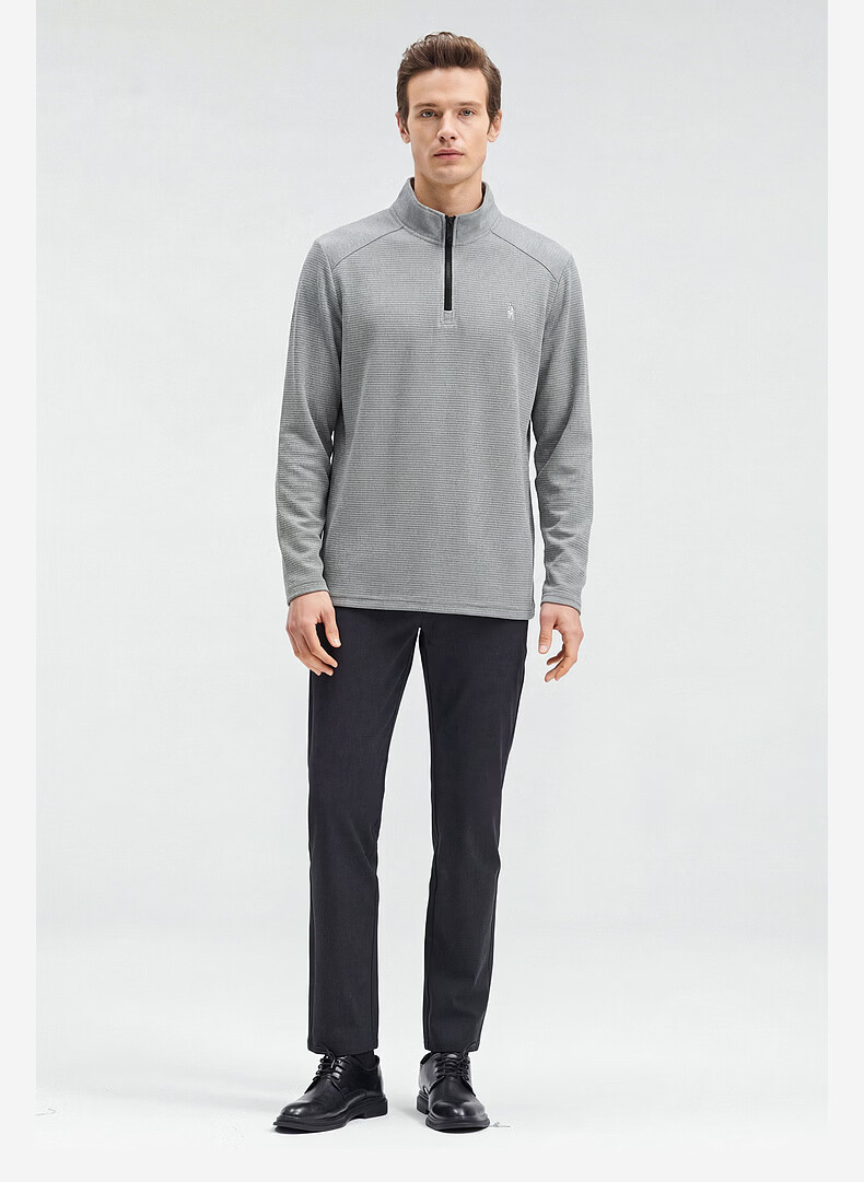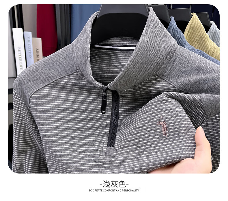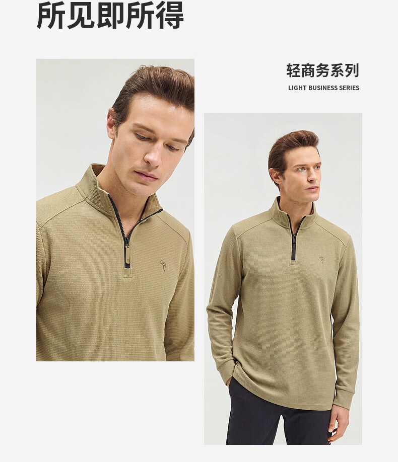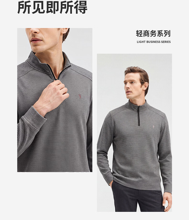 SHANSHAN杉杉【莱赛尔锦氨弹力】长袖t恤男半拉链立领POLO衫打底春秋新款 蓝色 L /175