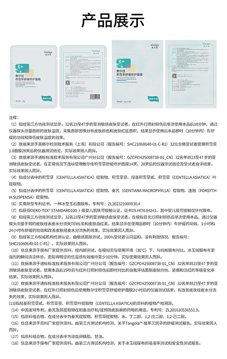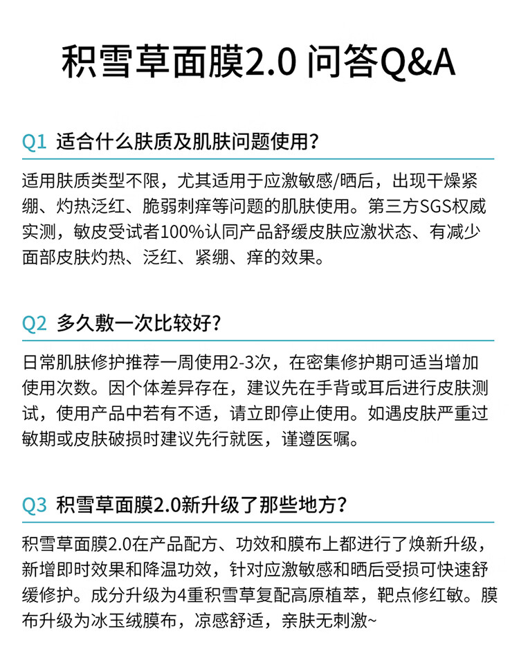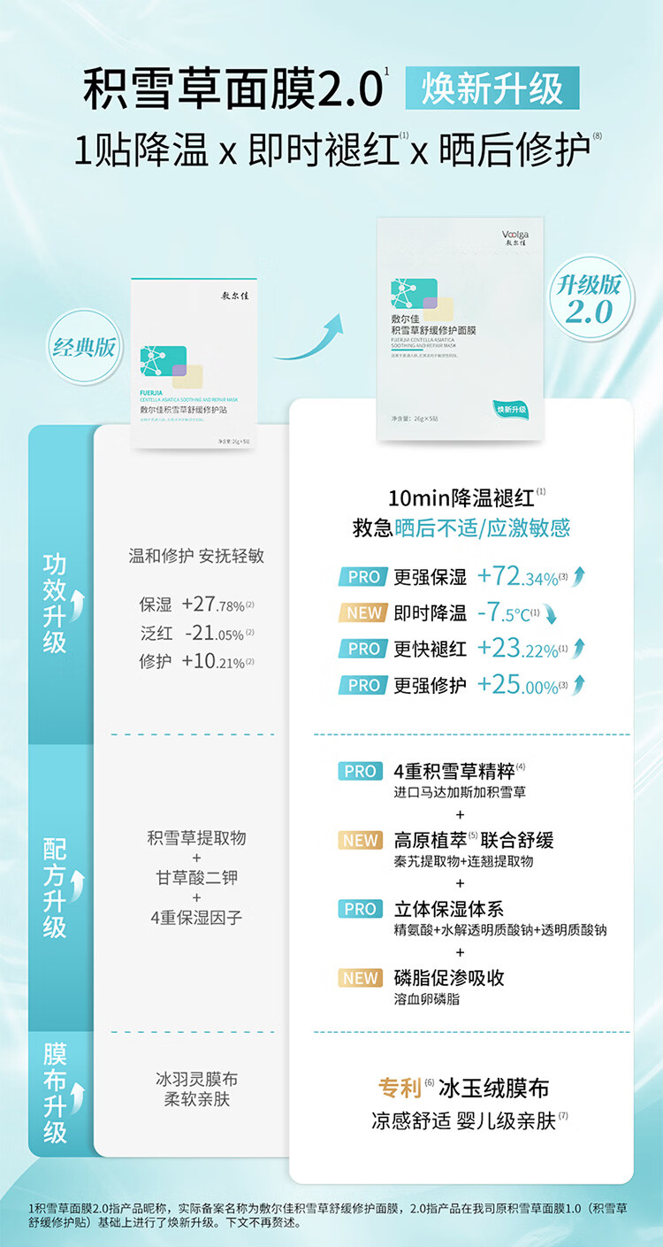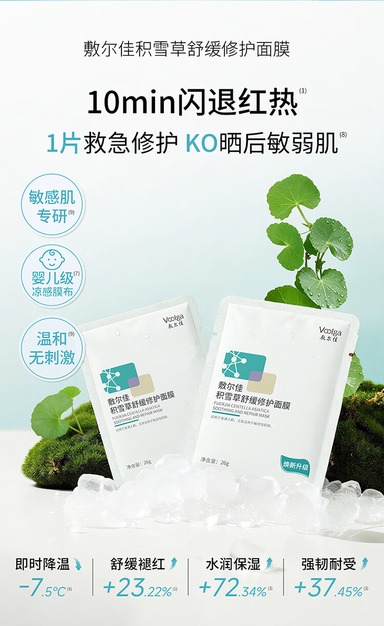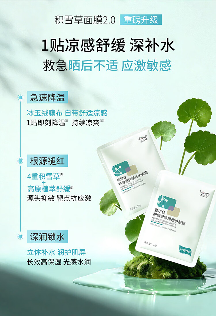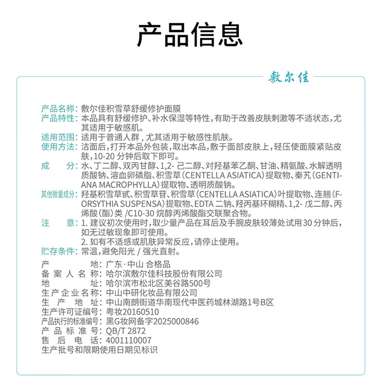 敷尔佳【敏肌专研】积雪草舒缓修护贴2.0升级版补水面膜保湿缓解肌肤 2片体验装