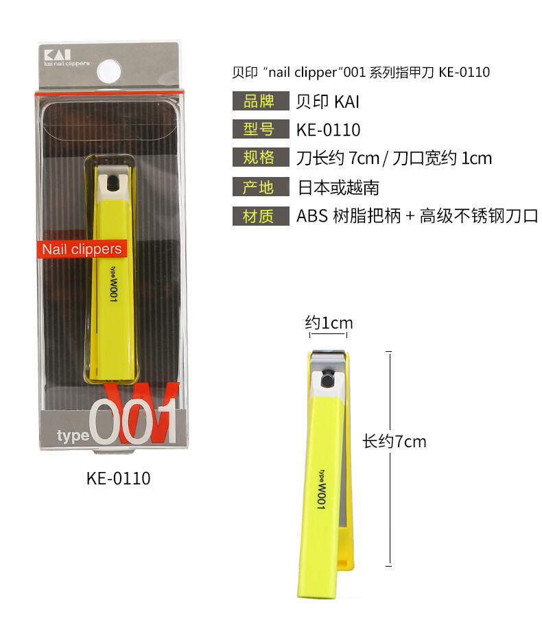 貝印日本原装 贝印指甲刀指甲钳指甲剪美甲工具安全防飞溅设计 type001黑色M号KE0101弯刃 1个