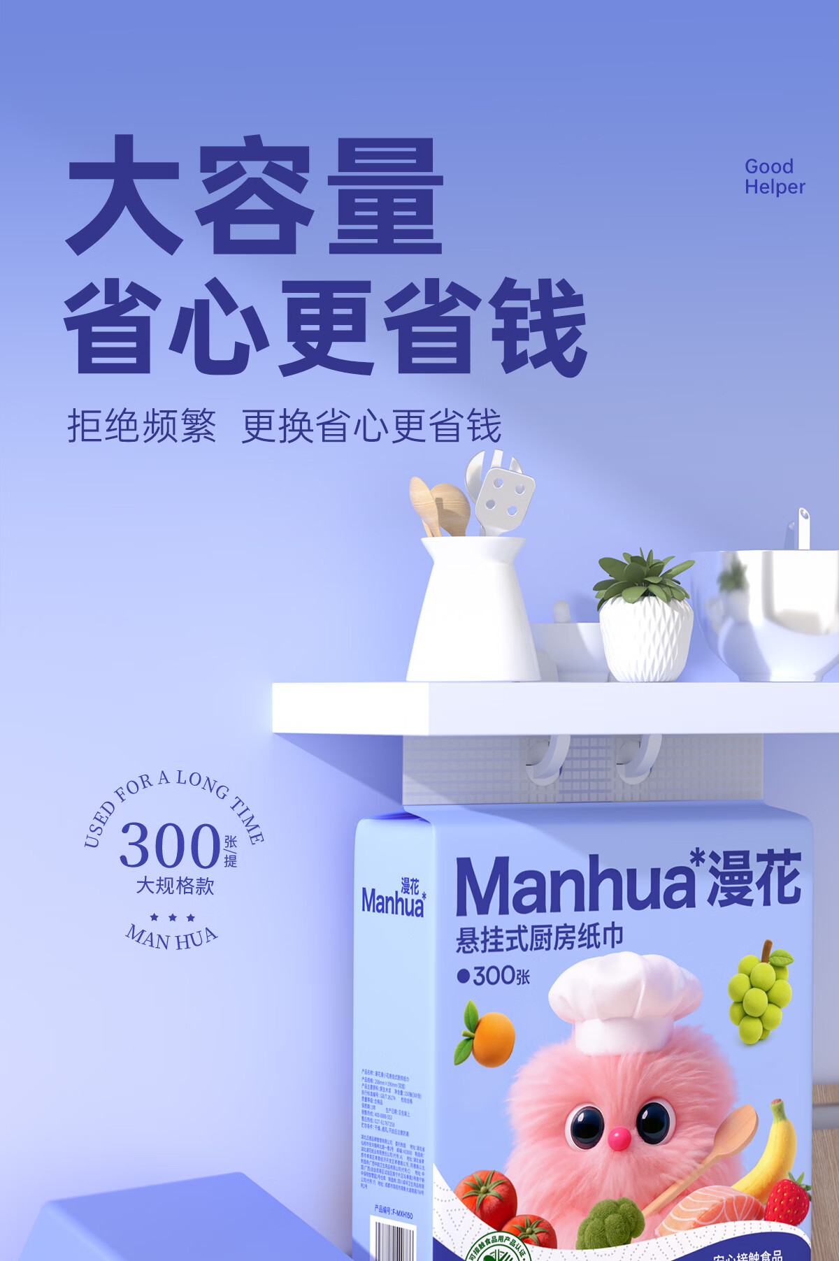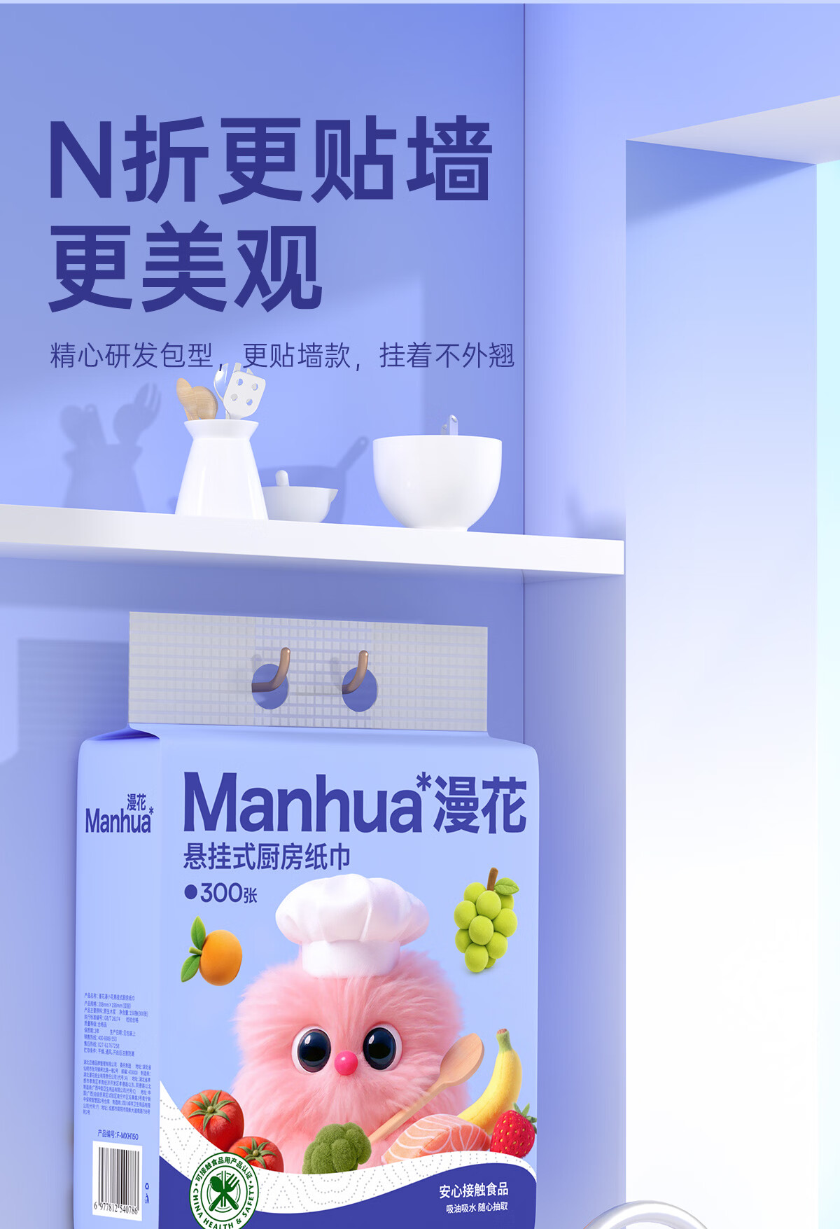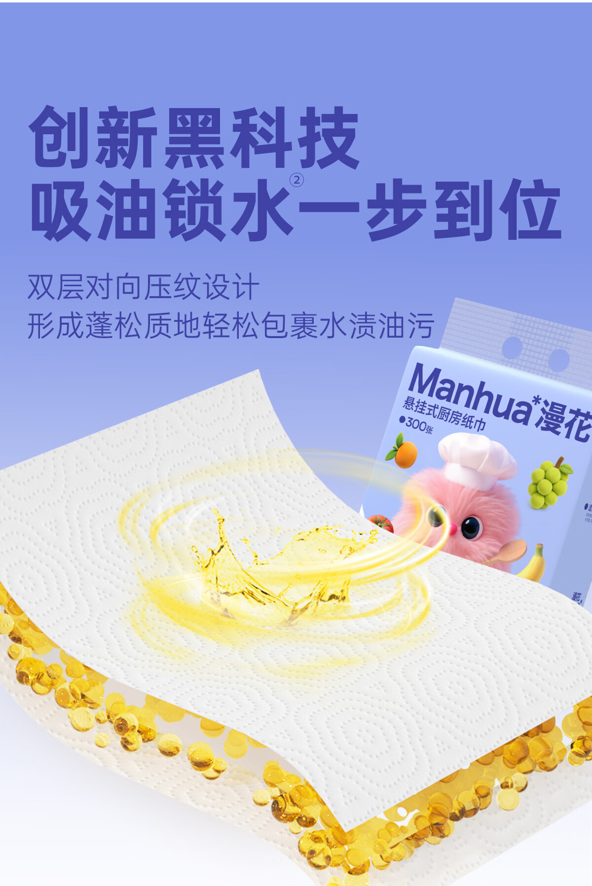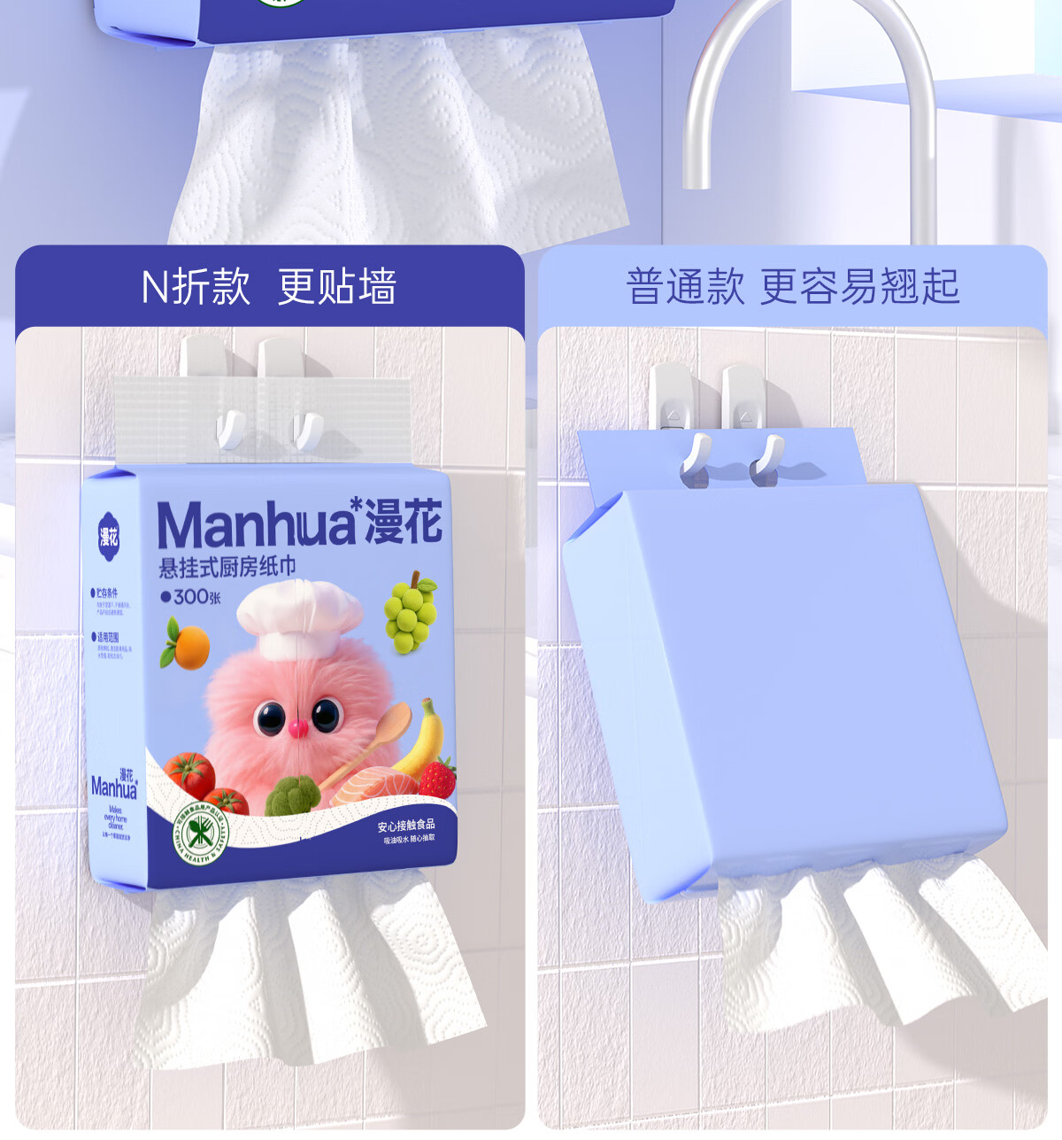 漫花悬挂式厨房纸巾抽纸吸油吸水家用一次性厨房用纸150抽/提实惠装 漫花挂式厨房专用抽纸 2层 150抽*6提
