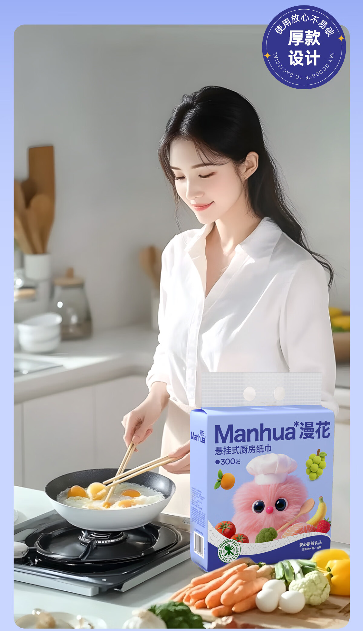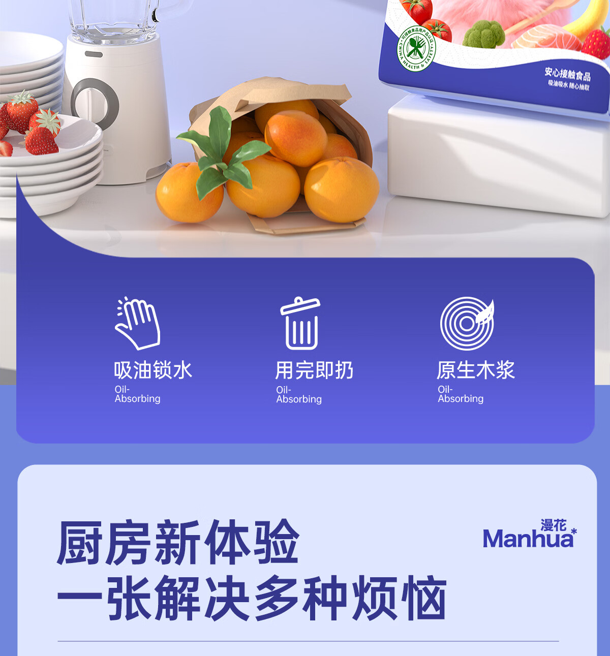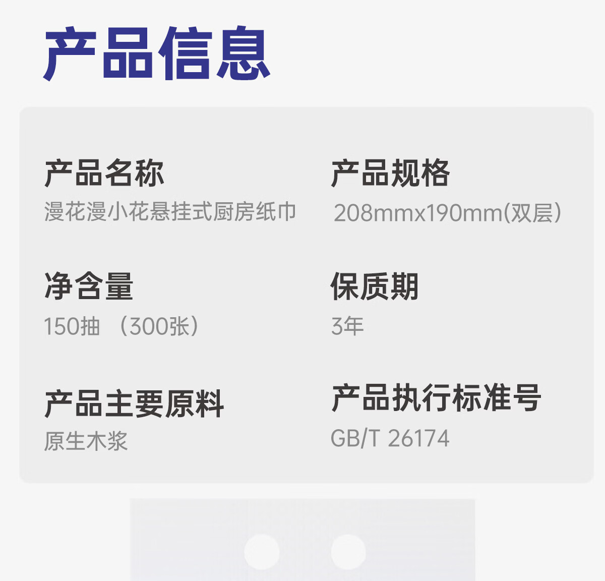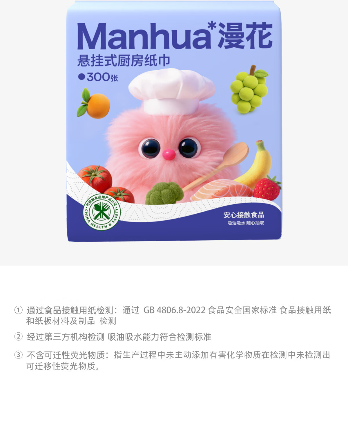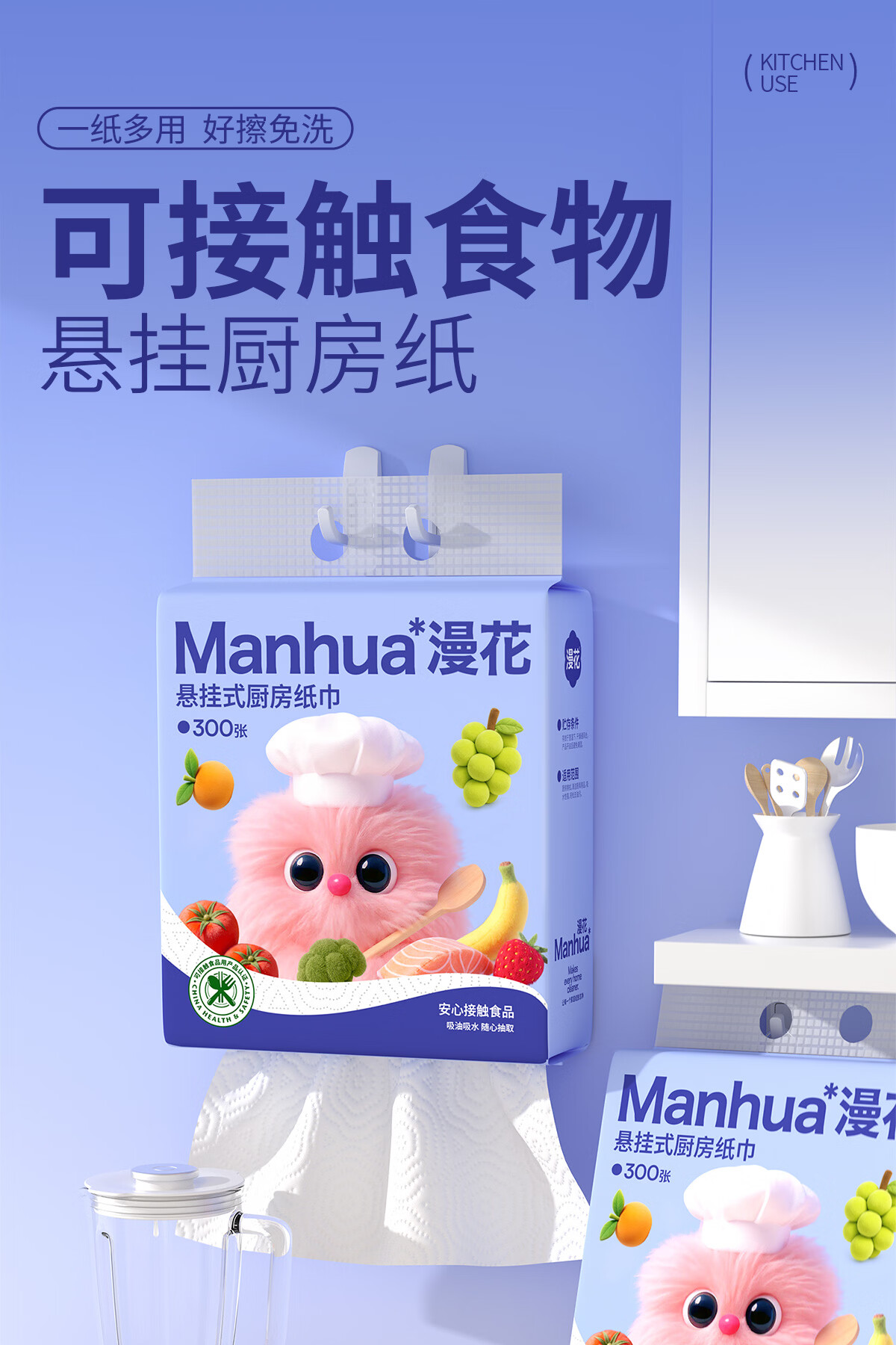 漫花悬挂式厨房纸巾抽纸吸油吸水家用一次性厨房用纸150抽/提实惠装 漫花挂式厨房专用抽纸 2层 150抽*6提