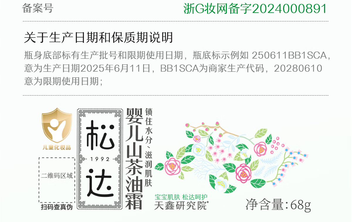 松达儿童面霜干痒红婴儿山茶油霜滋润保湿温和宝宝面霜秋冬季润肤霜 【店长推荐】霜68g*2瓶+旅行装