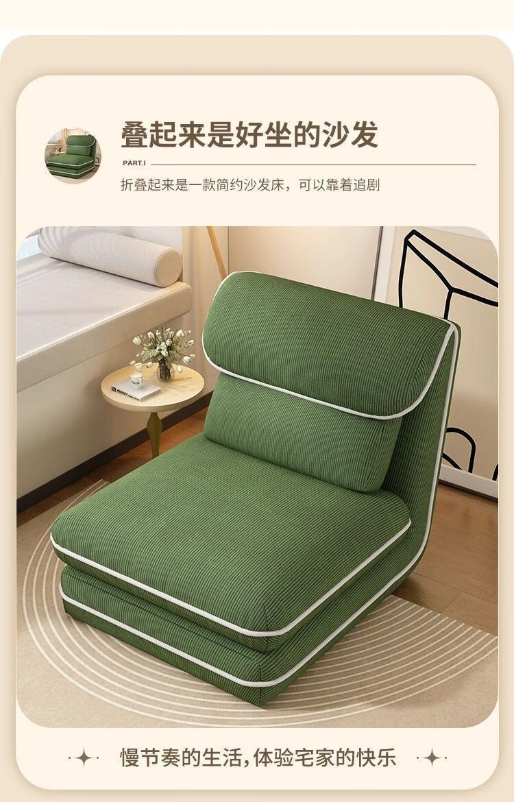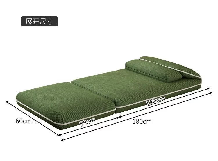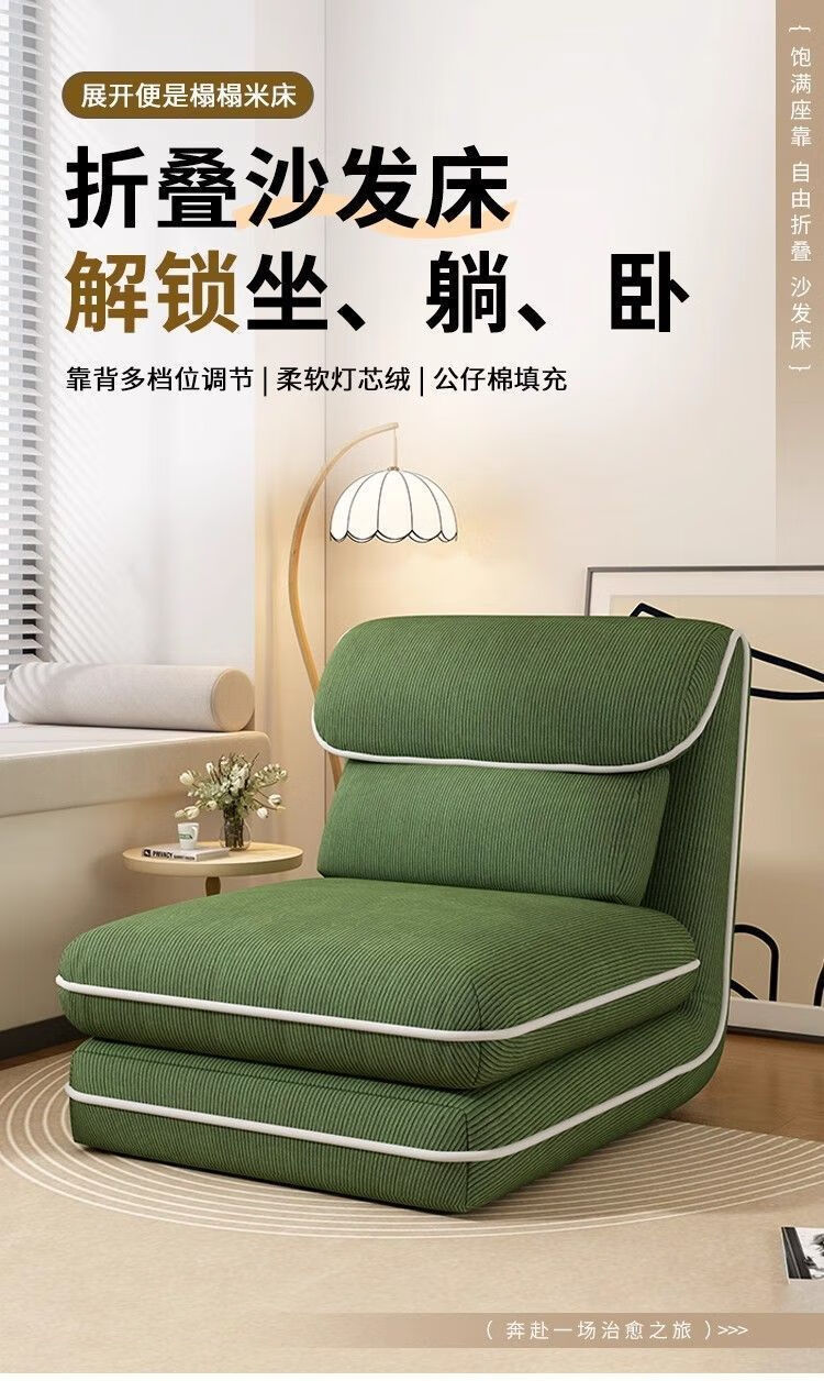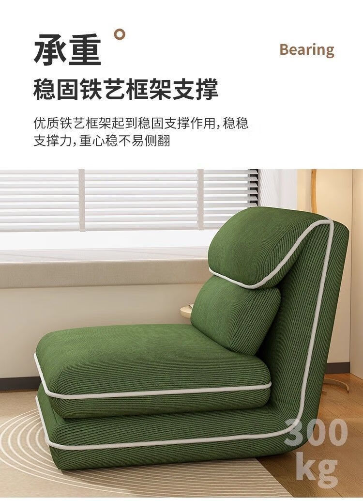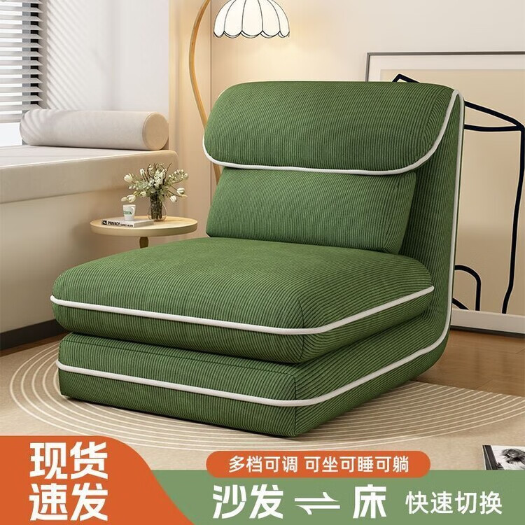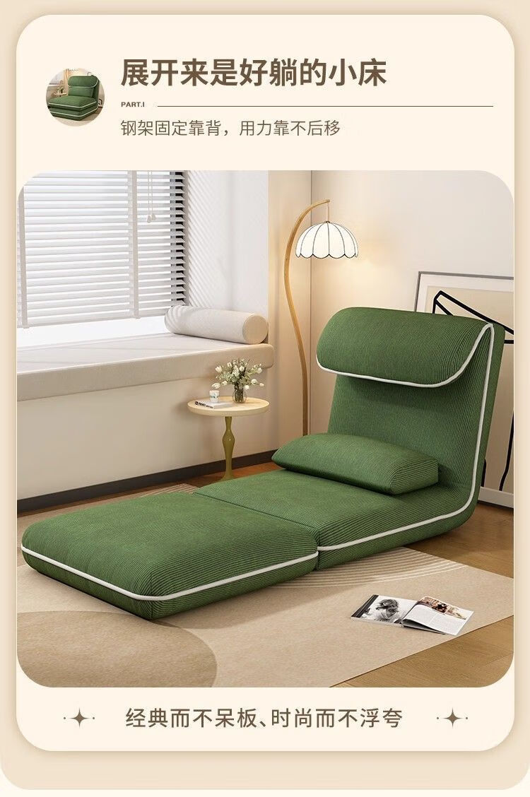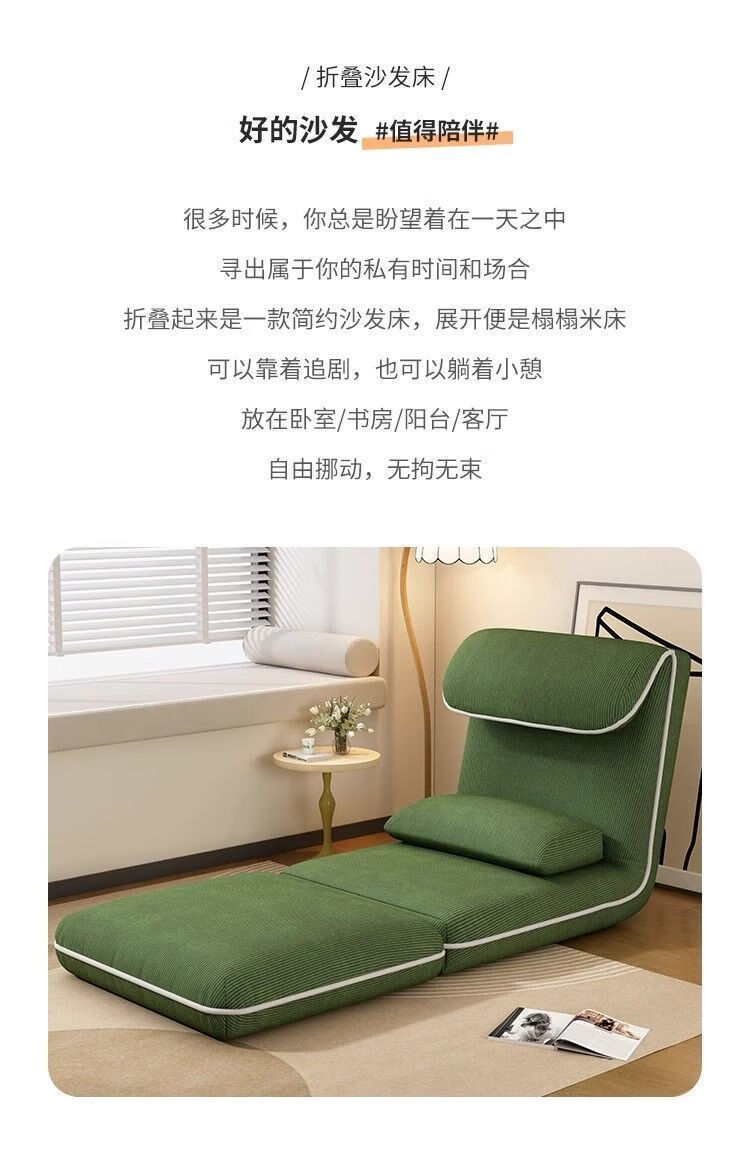 欣慕雅懒人沙发阳台卧室小户型单人榻榻米折叠床客厅折叠沙发床一体两用 橄榄绿【加大款】亲肤灯芯绒-靠背多档调节