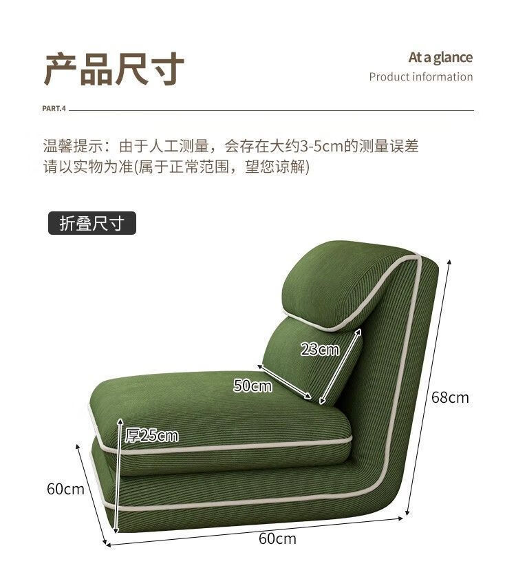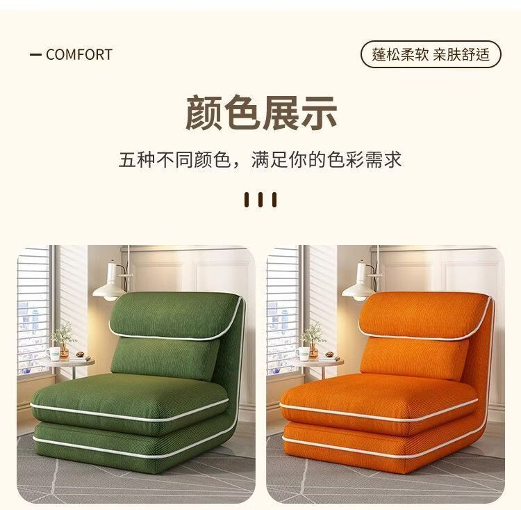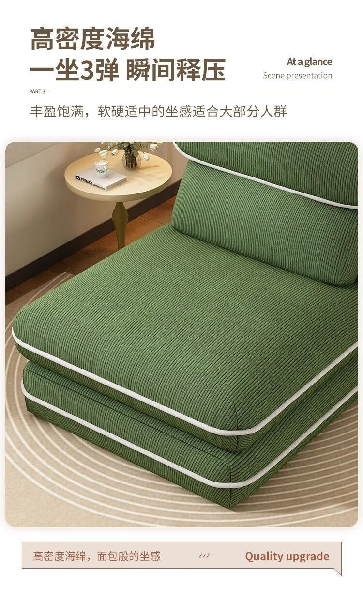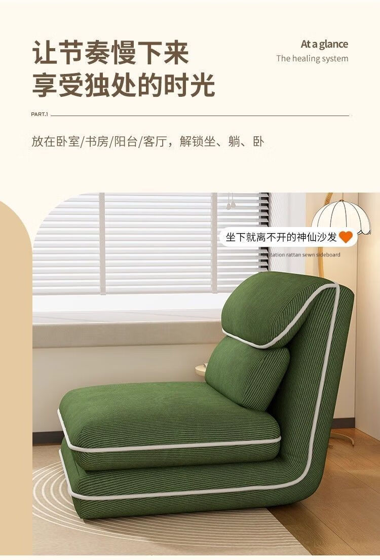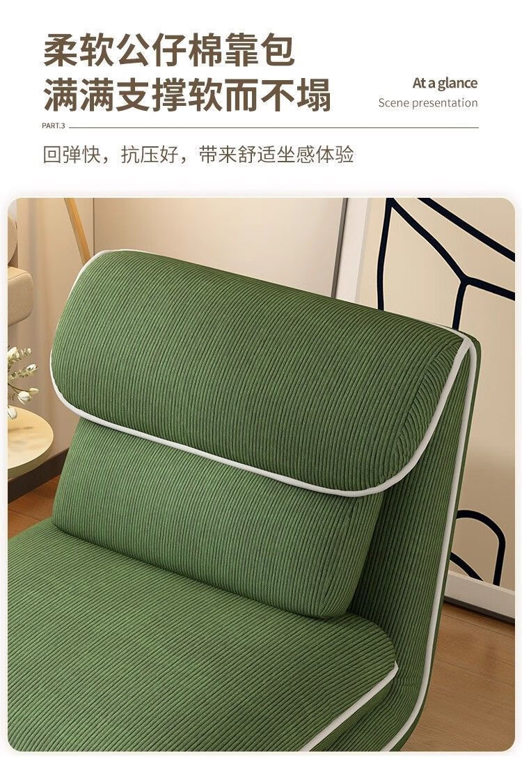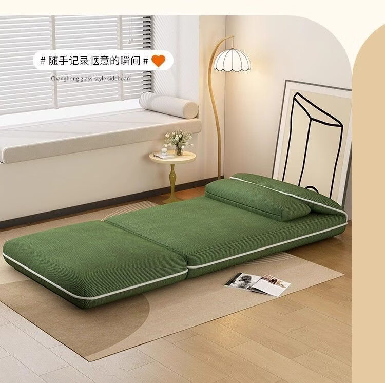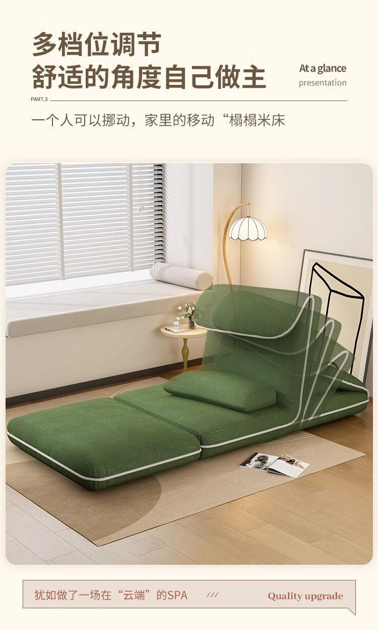欣慕雅懒人沙发阳台卧室小户型单人榻榻米折叠床客厅折叠沙发床一体两用 橄榄绿【加大款】亲肤灯芯绒-靠背多档调节