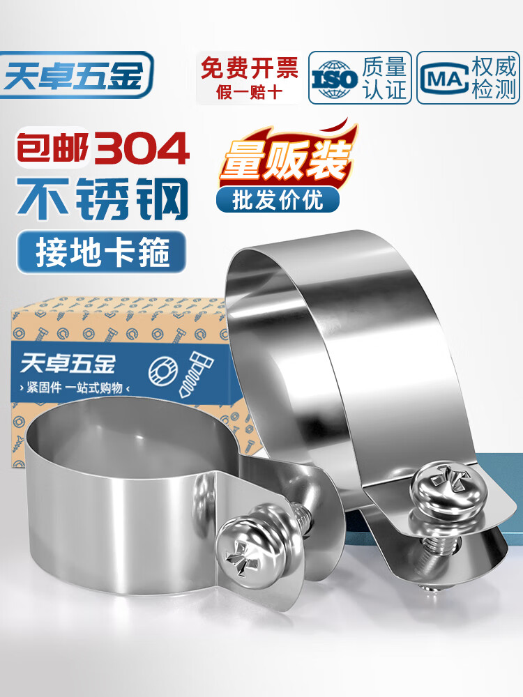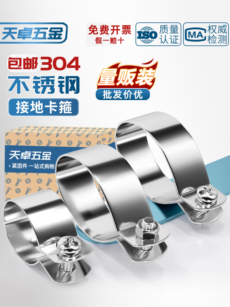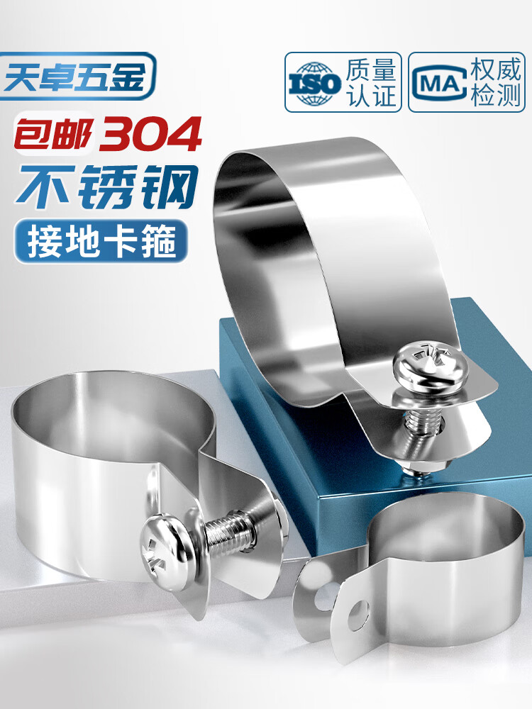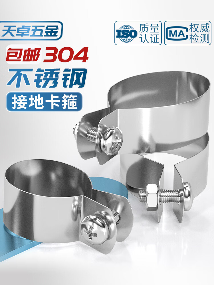 天卓五金304不锈钢管卡夹圆管固定卡扣卡箍钢管骑马卡夹抱箍连接线接地卡 【配套M4*16螺丝+螺母】50套
