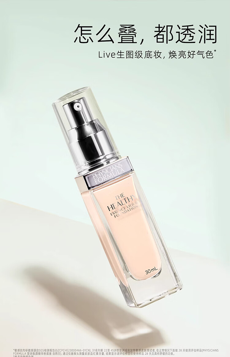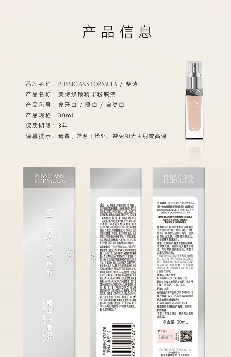 PHYSICIANS FORMULA斐诗PF焕颜精华粉底液pf超模空气遮瑕持久不脱妆润养服帖轻盈焕亮 暖白-适合黄调自然肤色