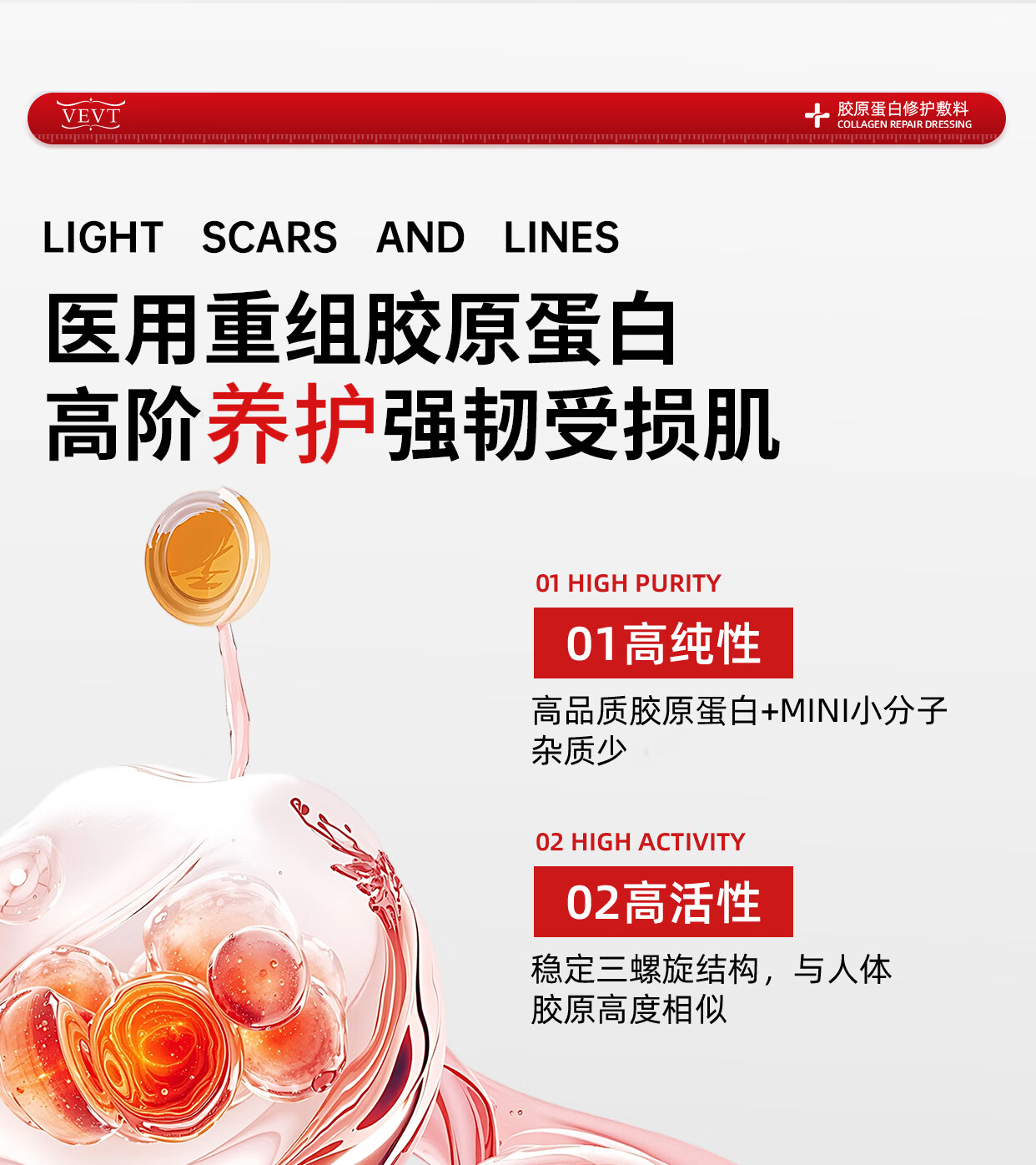 VEVT胶原膜vevt护理膜细腻vvt胶原蛋白护理膜重组胶原蛋白修复敷料 单支体验装【 不划算 多支效更佳】