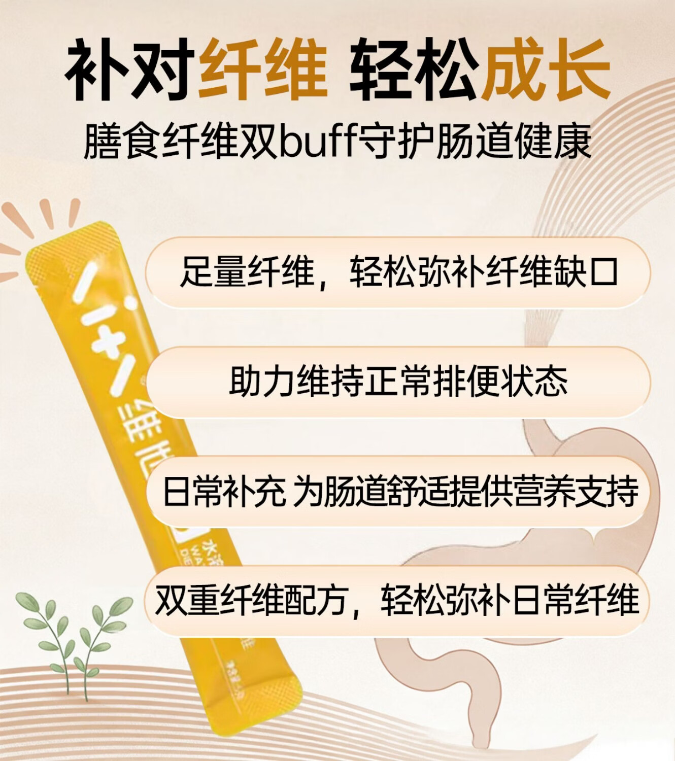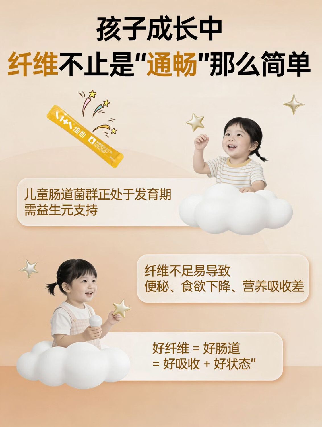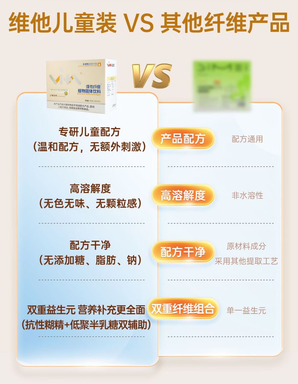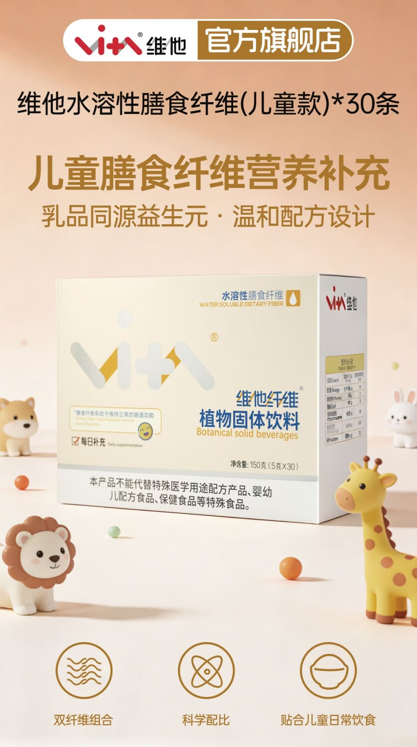 维他纤维儿童款青少年水溶性膳食纤维冲剂(益生元型)温和养护固体饮料 【儿童款膳食纤维】 30条*2盒