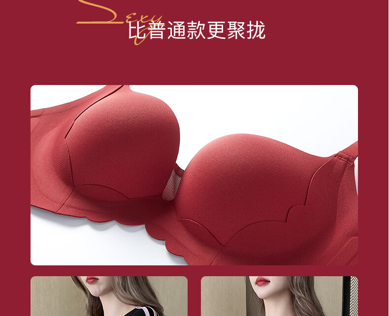 结婚新娘红色内衣女套装小胸显大上托聚拢防下垂秋冬款性感文胸罩 黑色(套装) XL 【适合 38/85ABC】