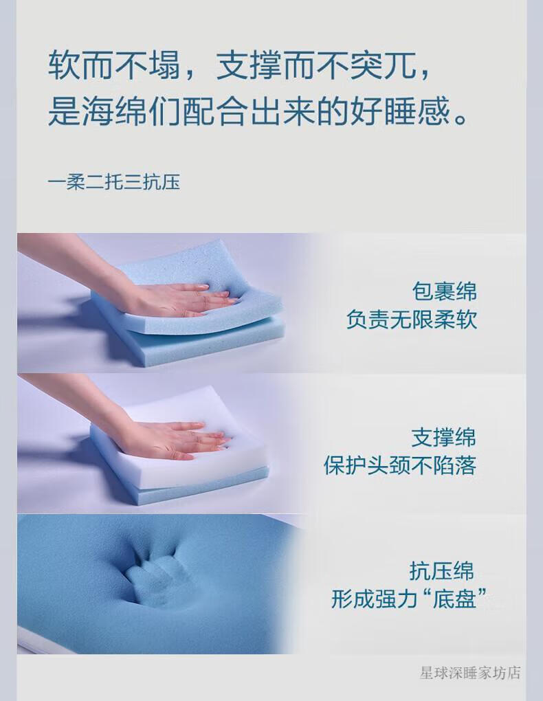 深睡枕Pro3.0海绵记忆枕成人护颈椎枕头助眠枕芯第3代枕头枕套 单只枕芯+岩溪蓝枕套 12cm 70*42