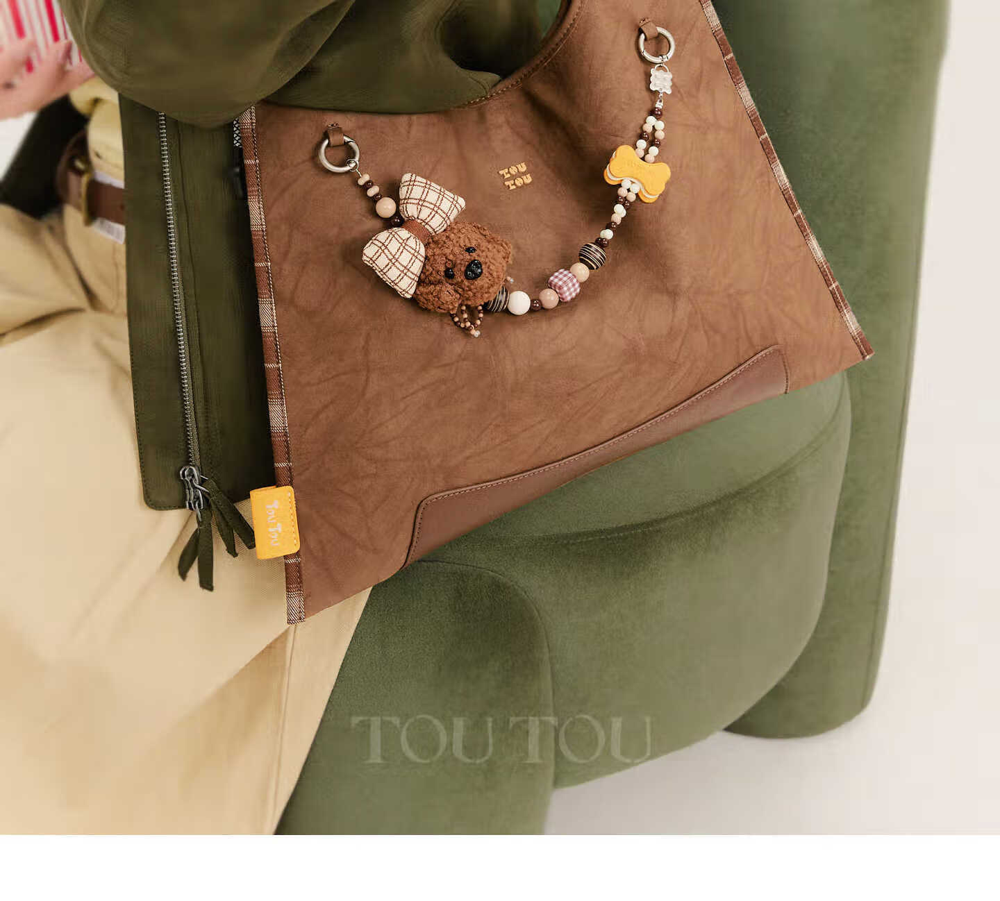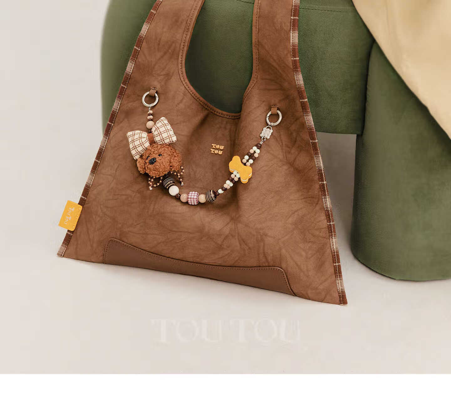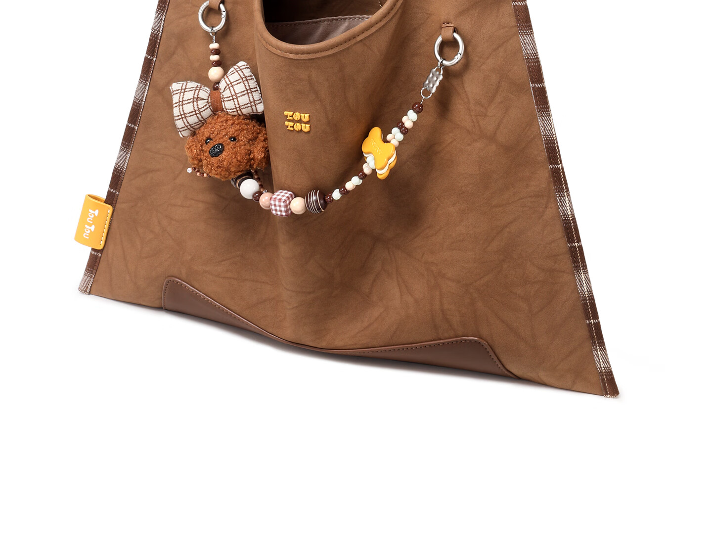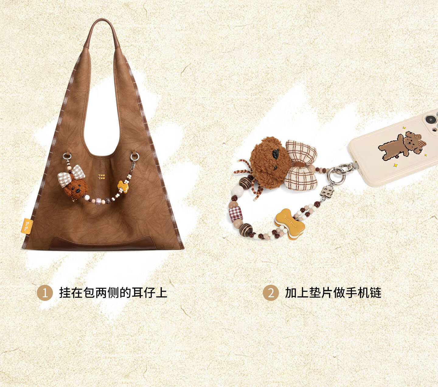 toutou小众设计小狗托特包带手机链单肩包包女包生日节日送礼 巧克力棕