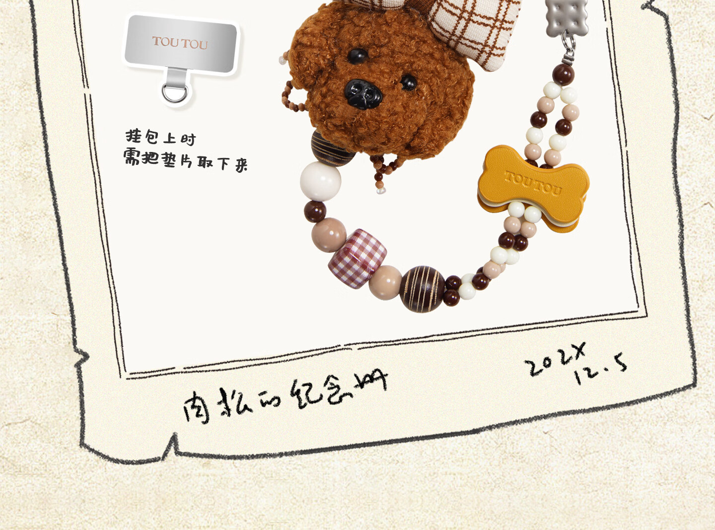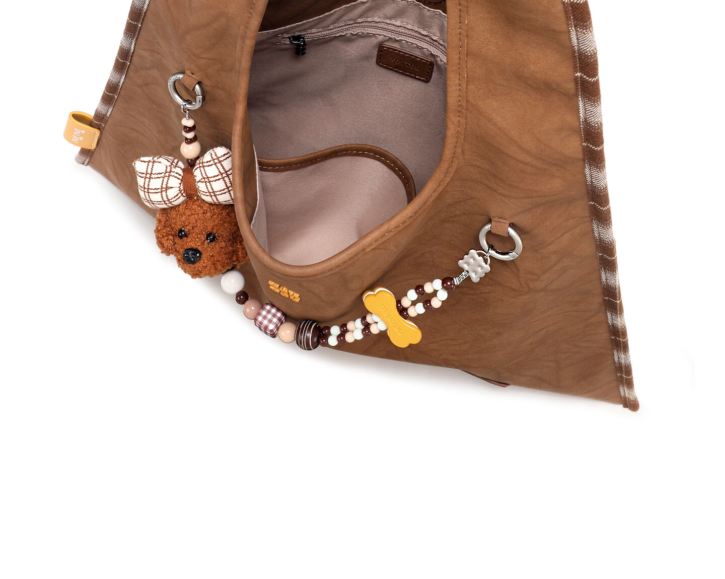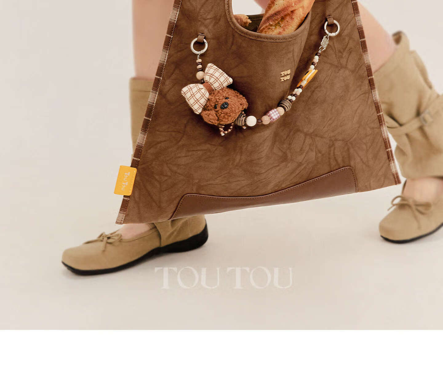 toutou小众设计小狗托特包带手机链单肩包包女包生日节日送礼 巧克力棕