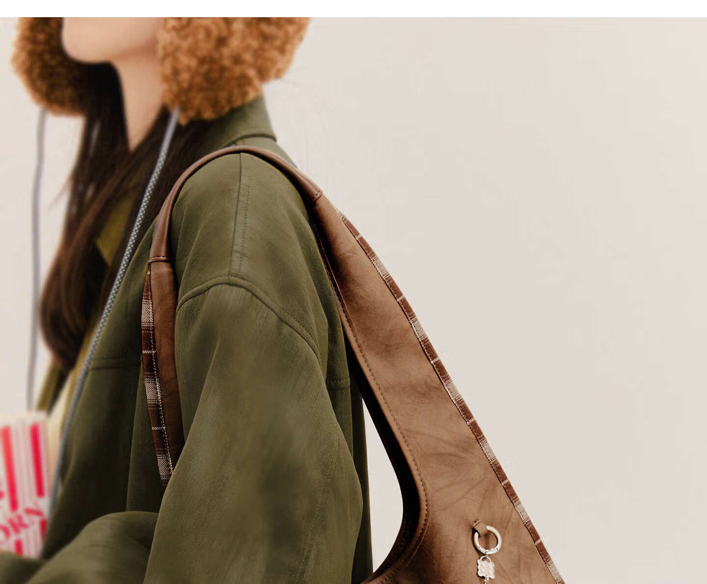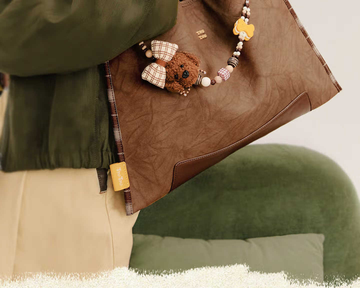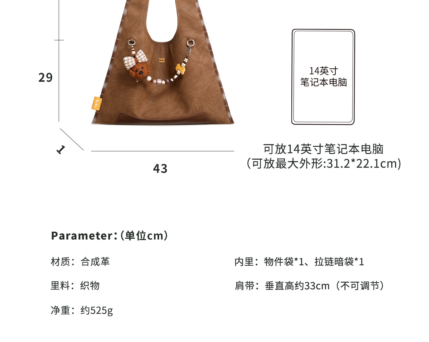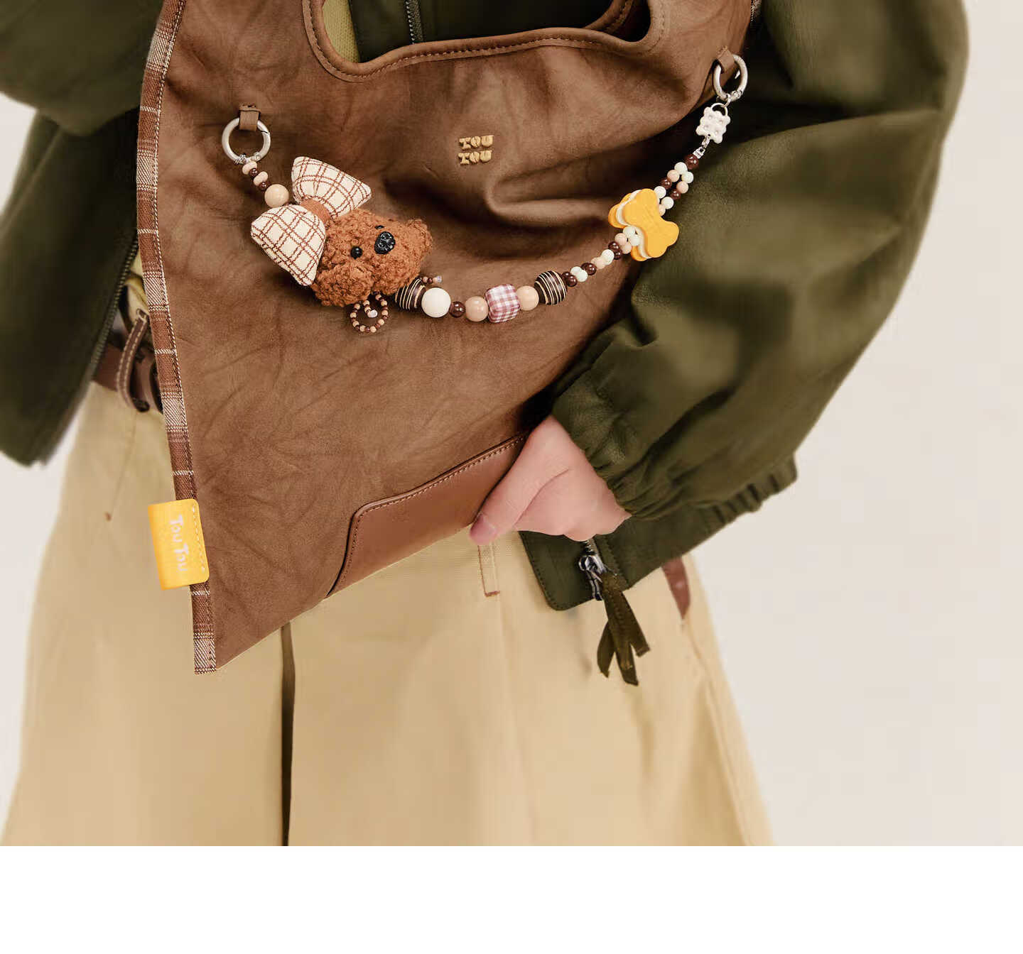 toutou小众设计小狗托特包带手机链单肩包包女包生日节日送礼 巧克力棕