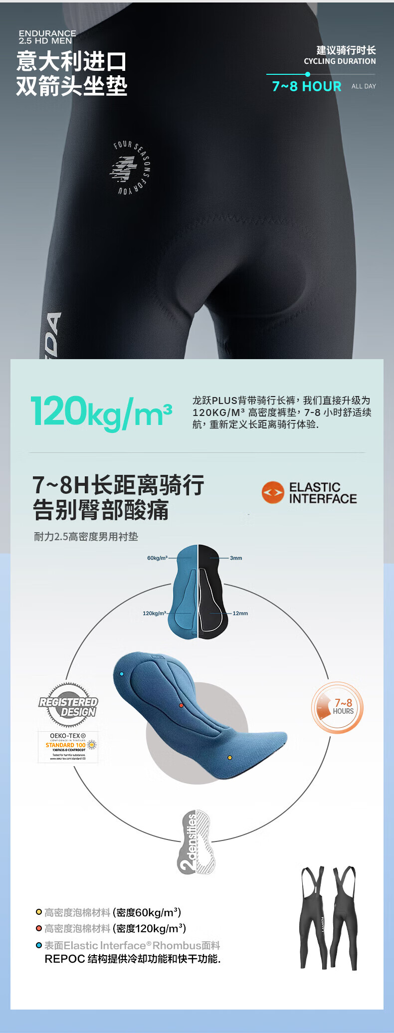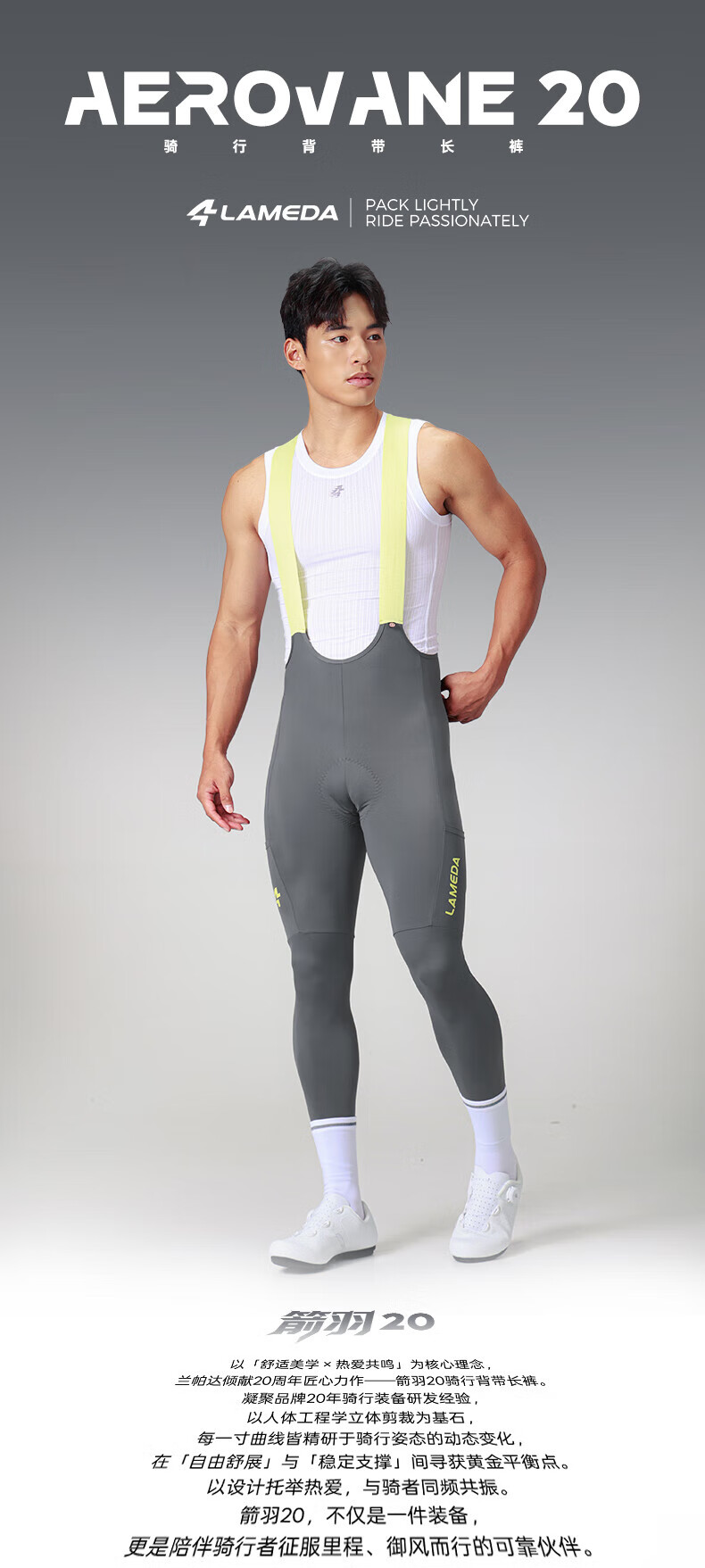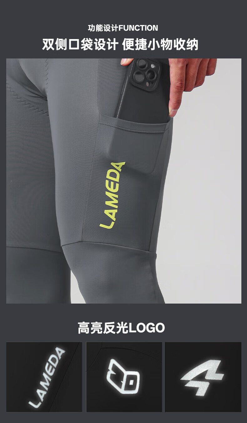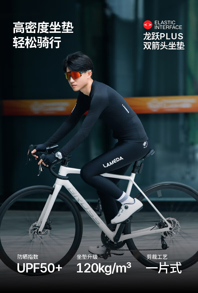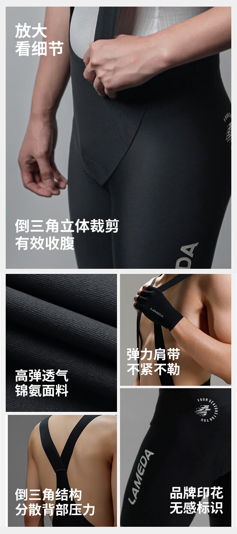 兰帕达(LAMEDA)骑行风衣防风服轻量男女秋冬公路自行车便携上衣寒锁双箭头春夏秋 【双箭头】龙跃Plus黑色背带长裤 120 密度 3XL