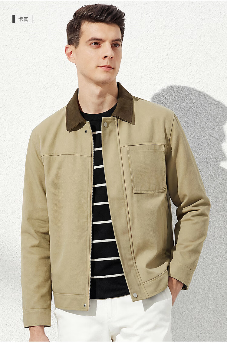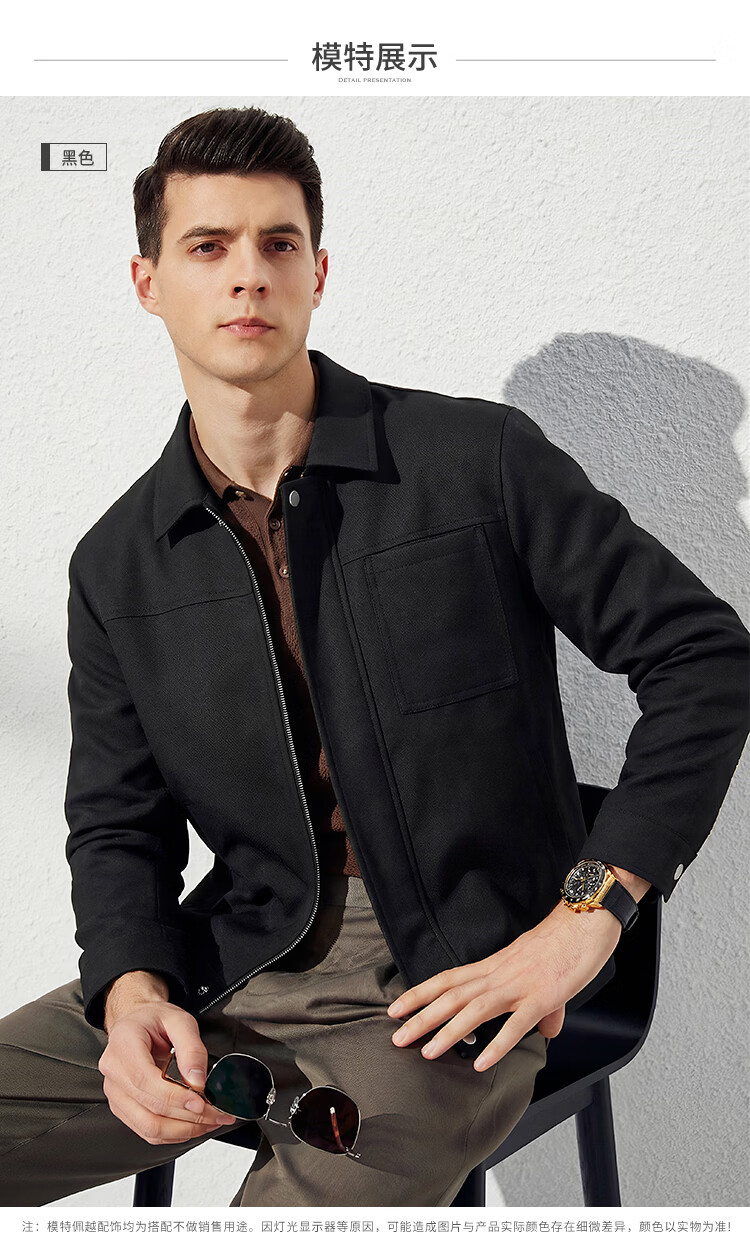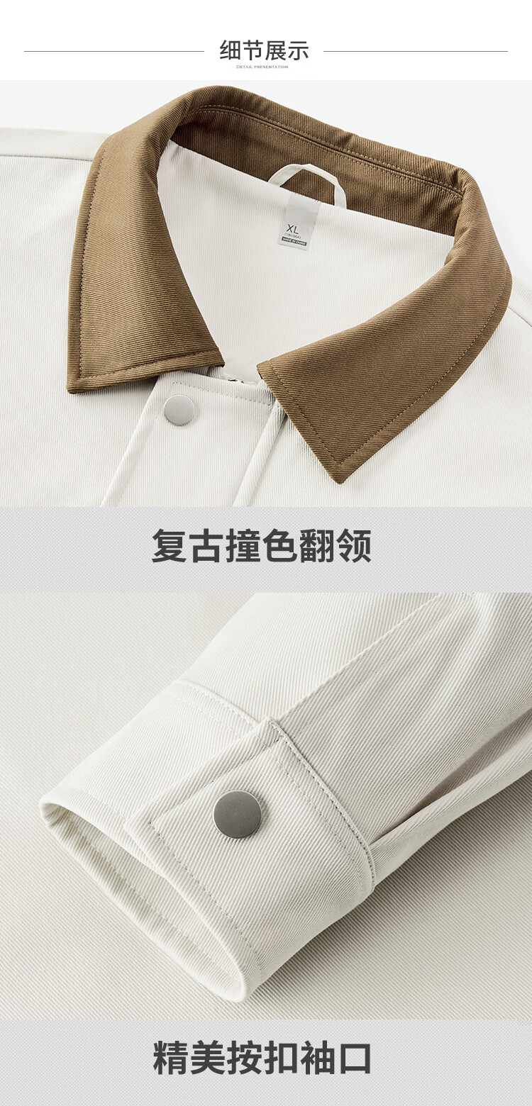 杉杉(FIRS)【斜纹撞色】杉杉复古工装外套男春秋挺括易打理休闲男士宽松夹克 黑 3XL 190/104A(3XL)