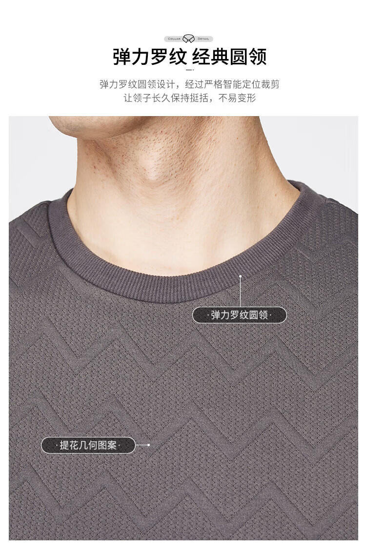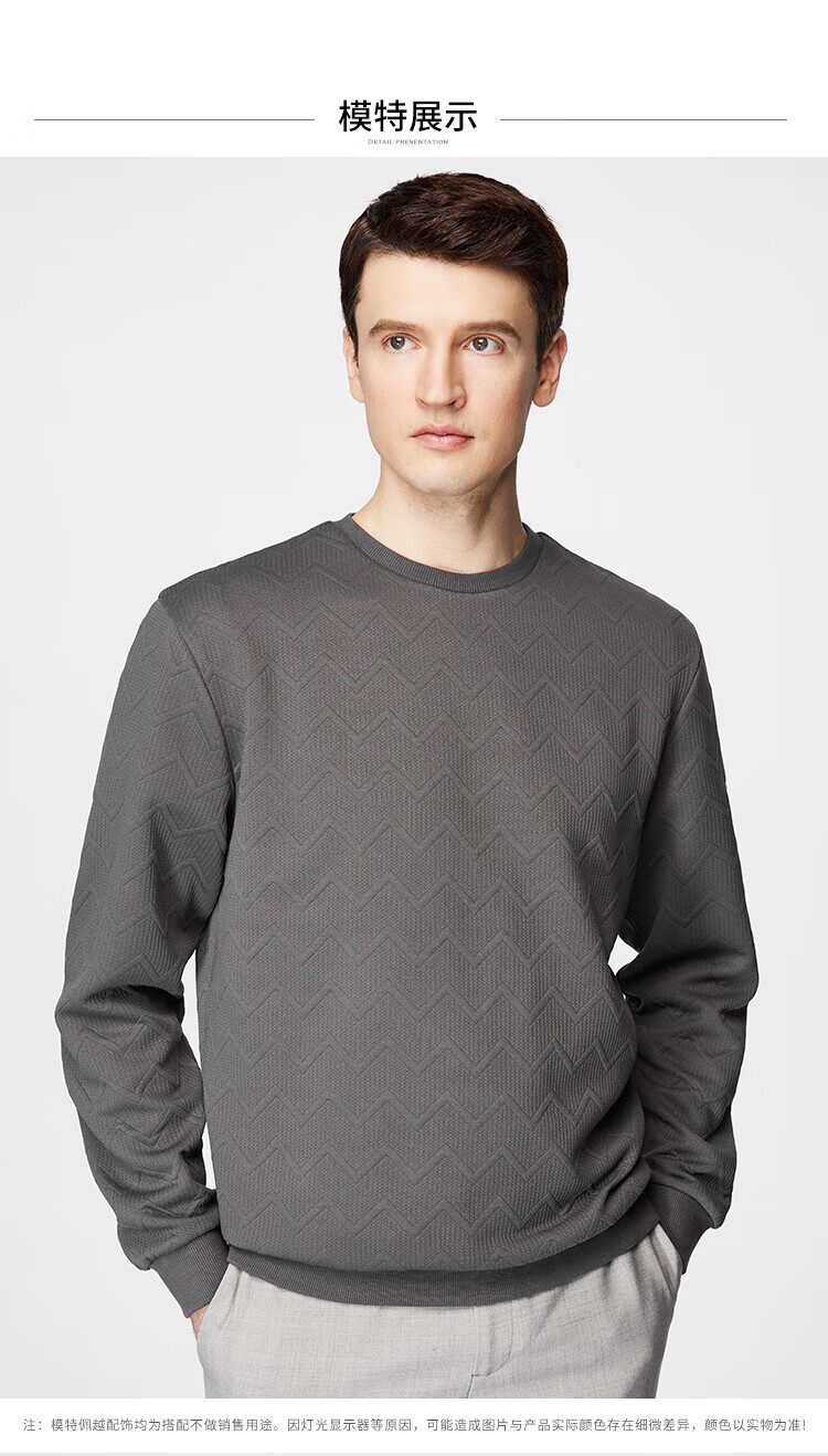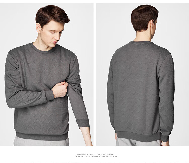 杉杉(FIRS)卫衣男长袖春秋款提花透气亲肤柔软圆领男装垂顺抗皱通勤休闲上衣 中性灰 M 170/88A
