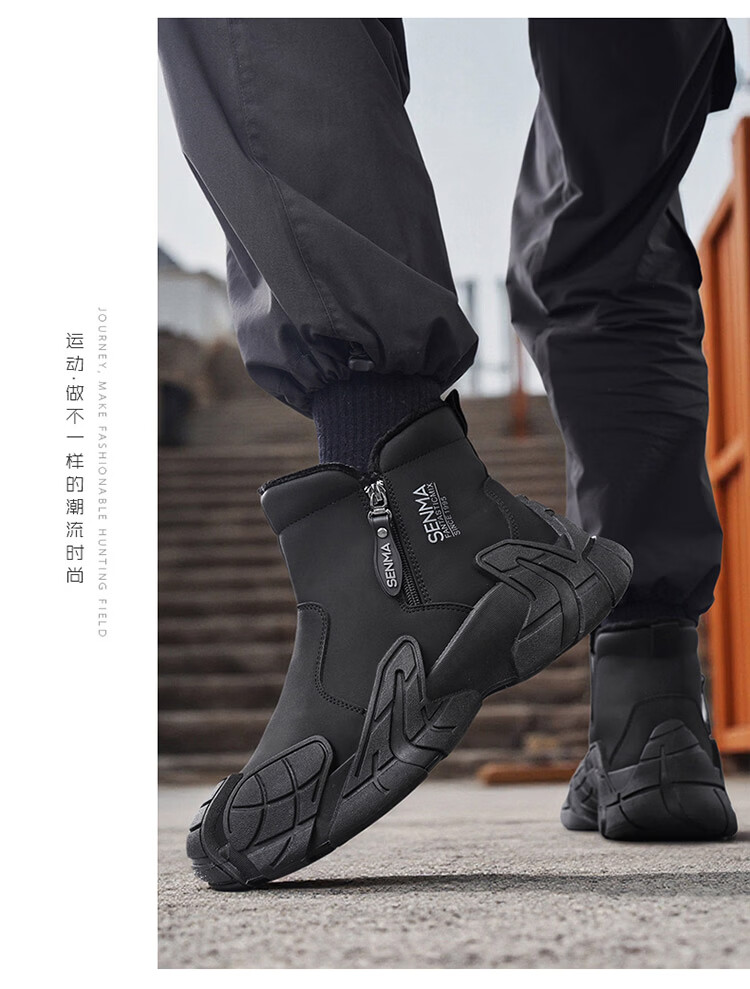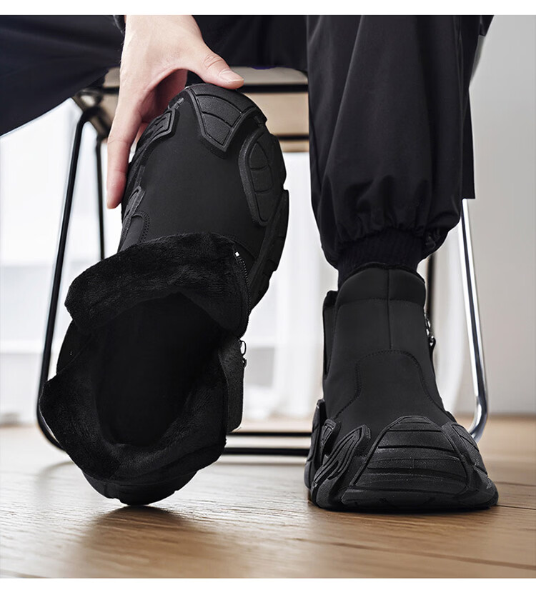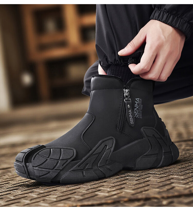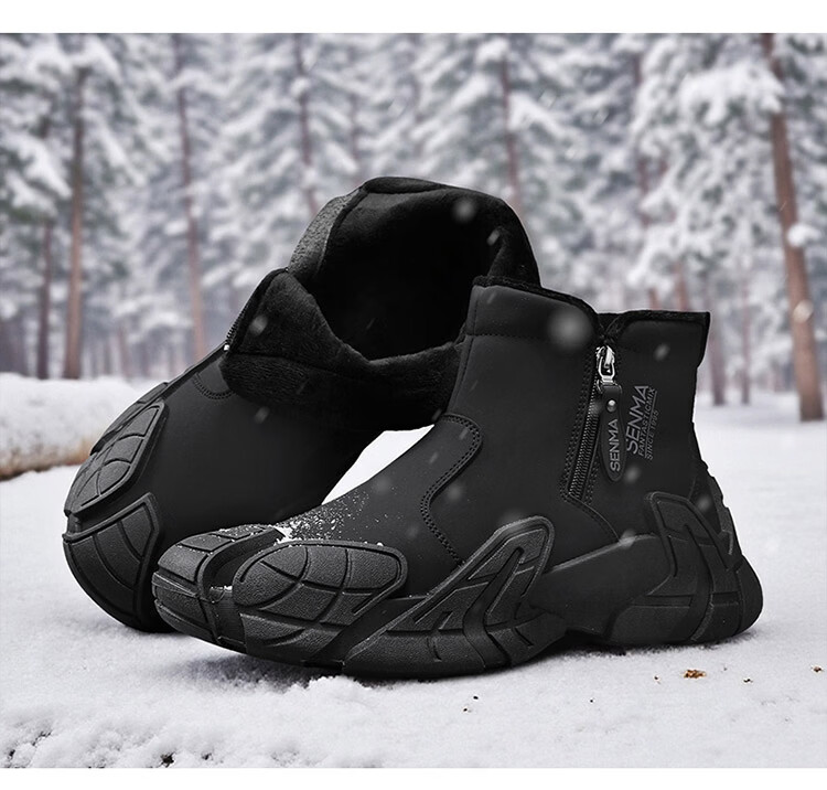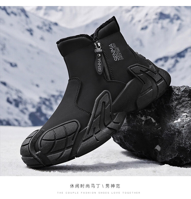 森馬雪地靴男2026新款冬季加绒保暖休闲棉靴男士厚底防滑东北抗寒棉鞋 黑色【基础款】 39 标准运动码/现货秒发