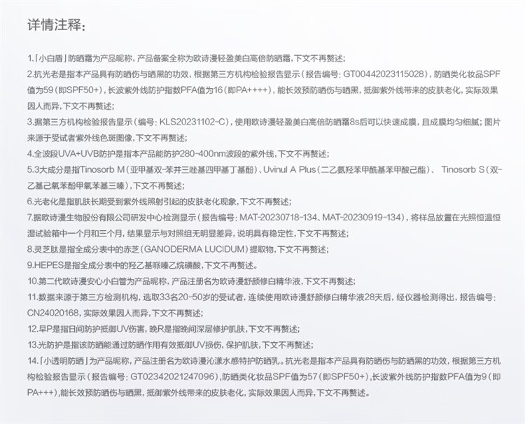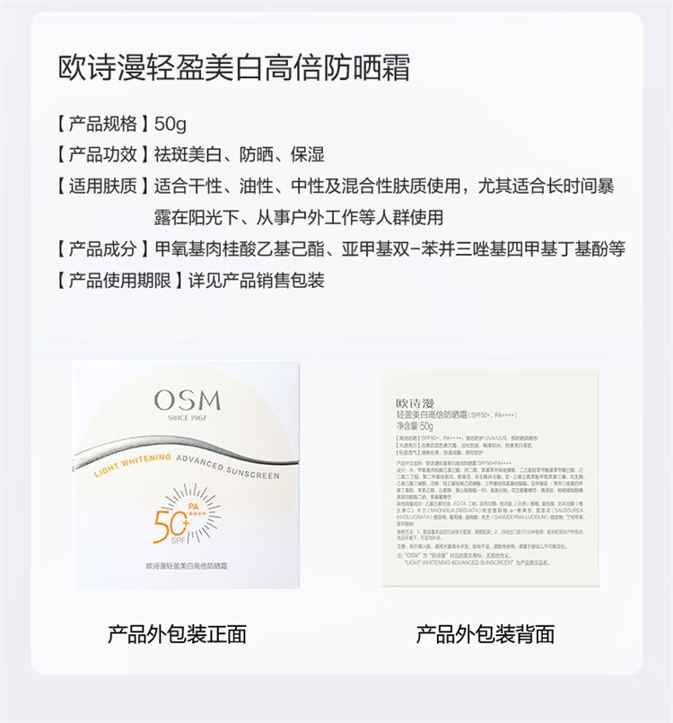 欧诗漫屈臣氏 欧诗漫轻盈美白高倍防晒霜 50ml