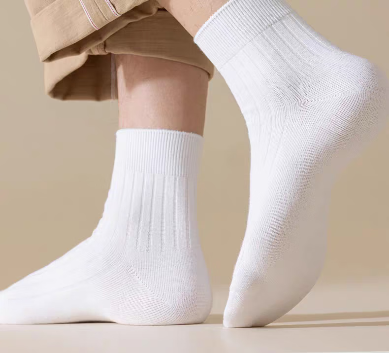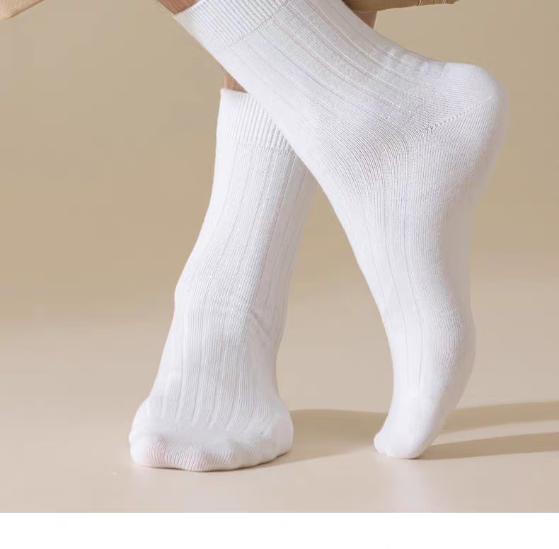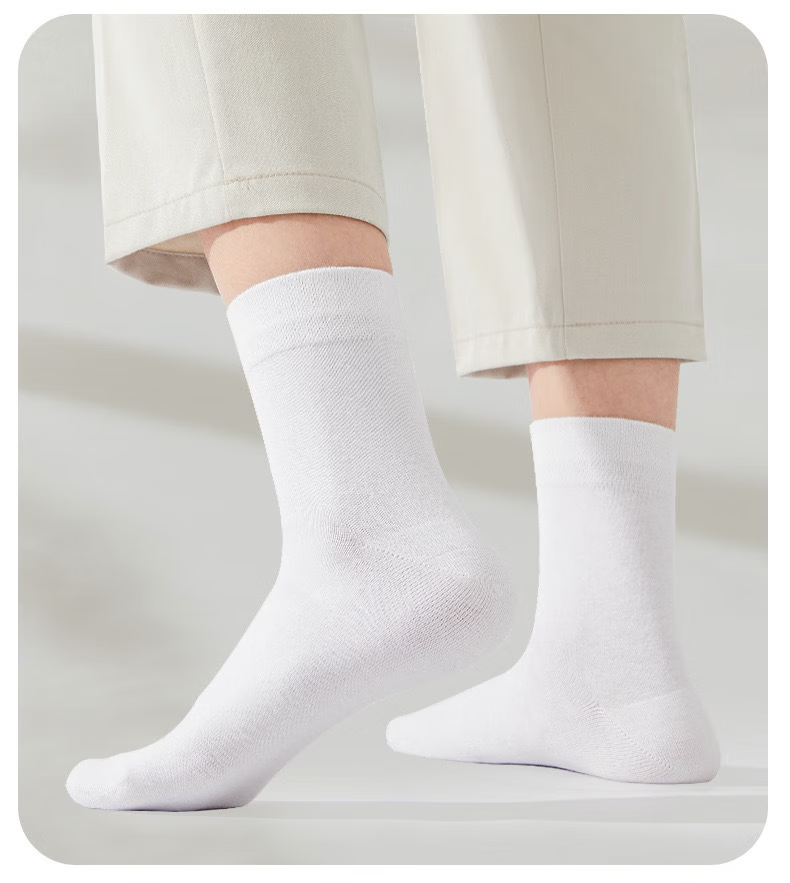 【新疆长绒棉】精梳棉袜子男女同款运动抗菌吸汗耐磨舒适透气高棉 白色 5双 均码 【中筒】