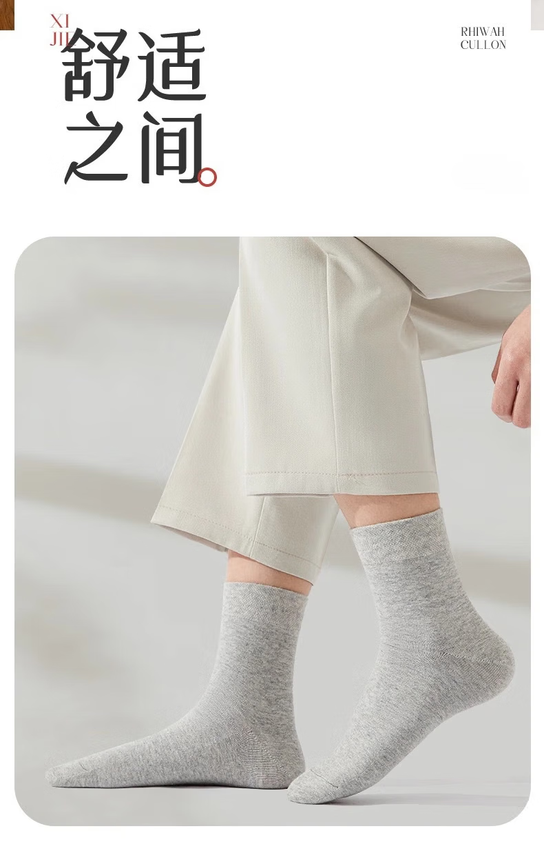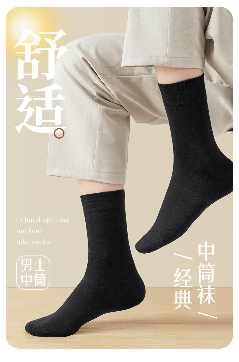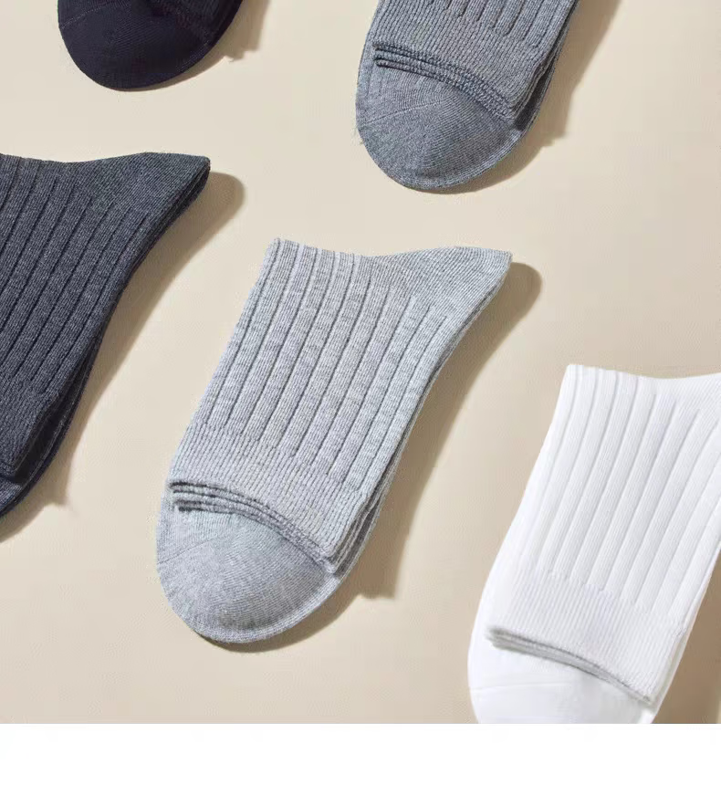 【经典竖纹男袜】袜子男士经典纯色竖纹吸汗透气防臭中筒袜 【中筒】竖条纹 五色各二- 10双