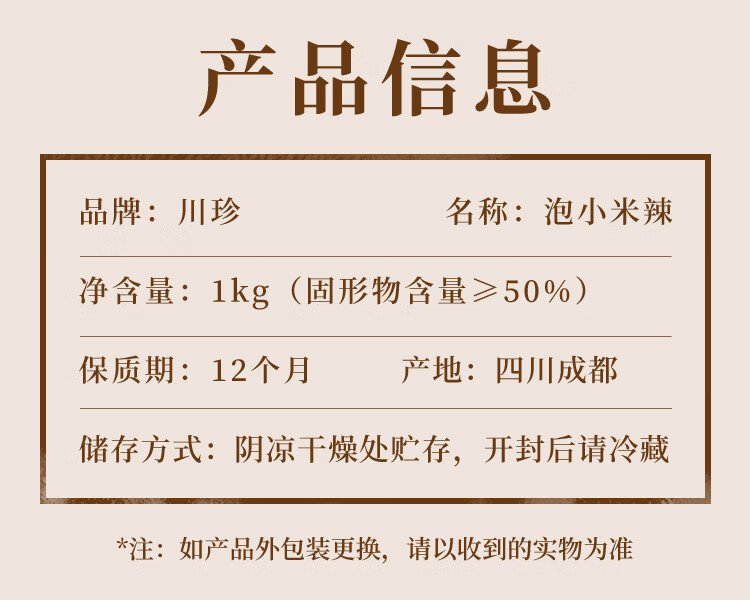 川珍泡小米辣1000g 酸辣下饭菜炒菜泡椒凤爪川菜调料新繁泡菜