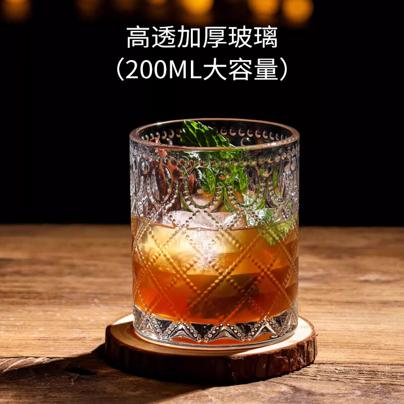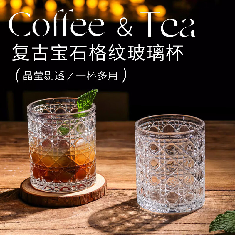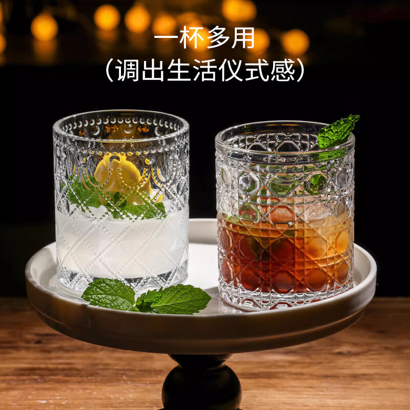 玻璃杯水杯轻奢感宝石纹高颜值洋酒杯透明家用加厚鸡尾酒杯子 宝石纹杯子装 1只