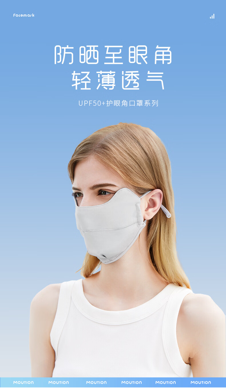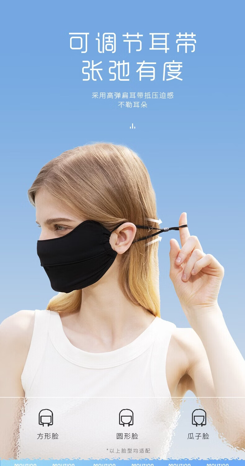 茉寻护眼角防晒口罩时尚透气冰丝面罩超薄凉感 黑色 无规格