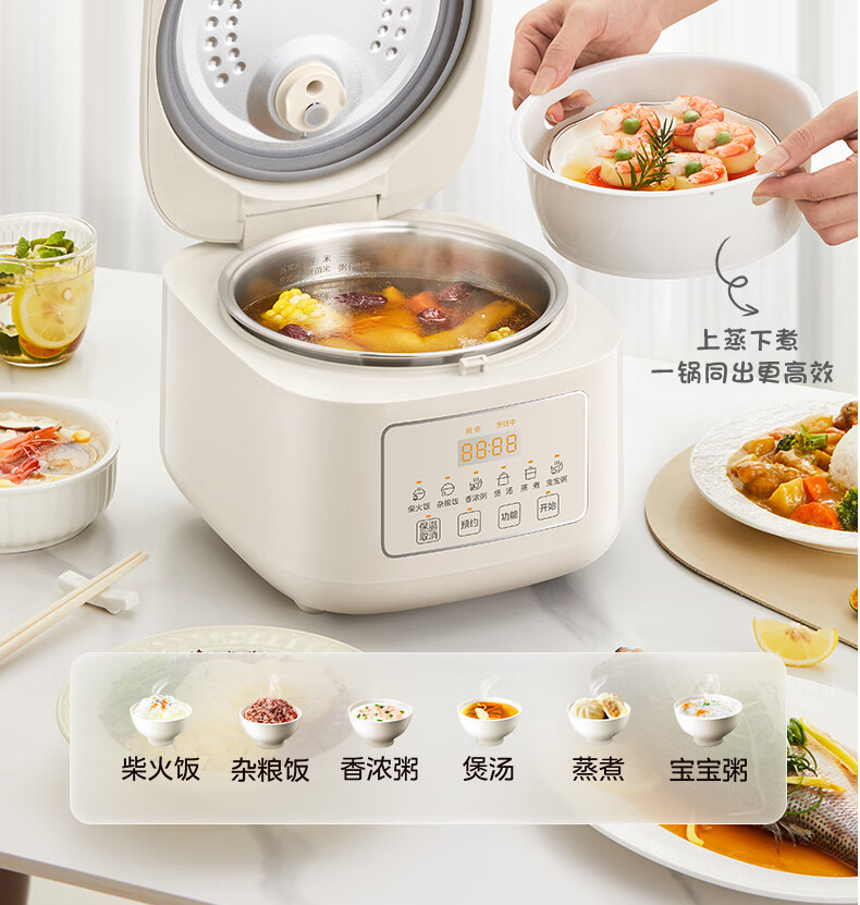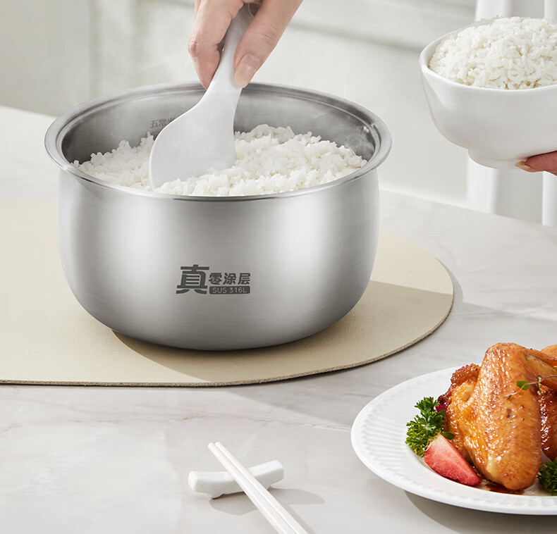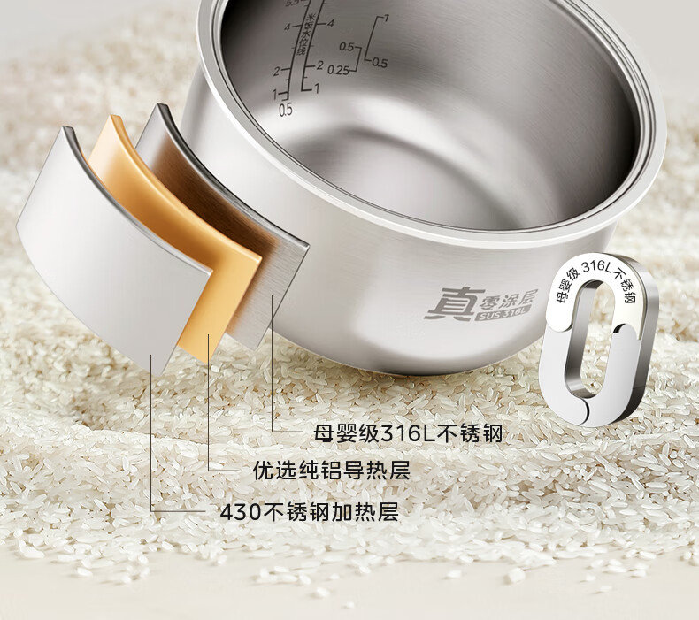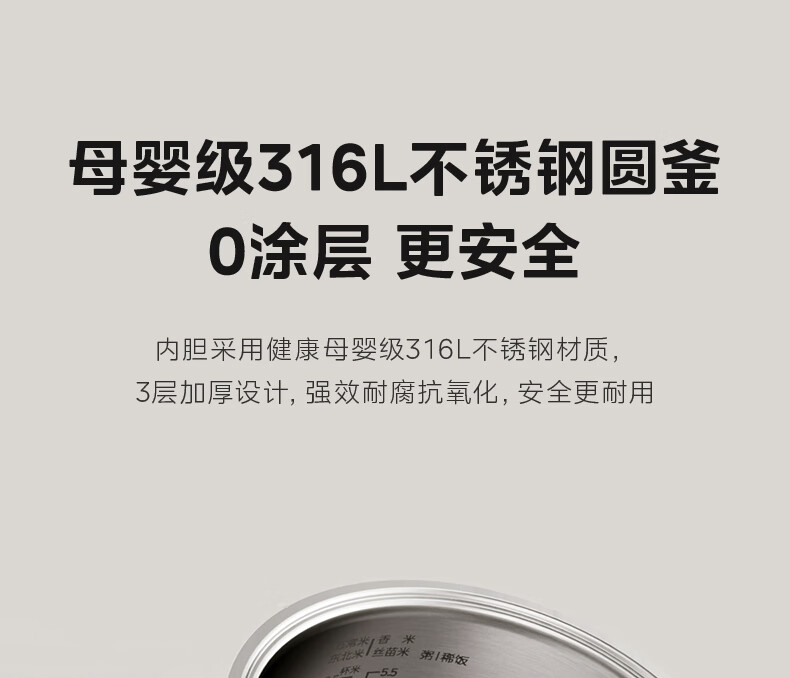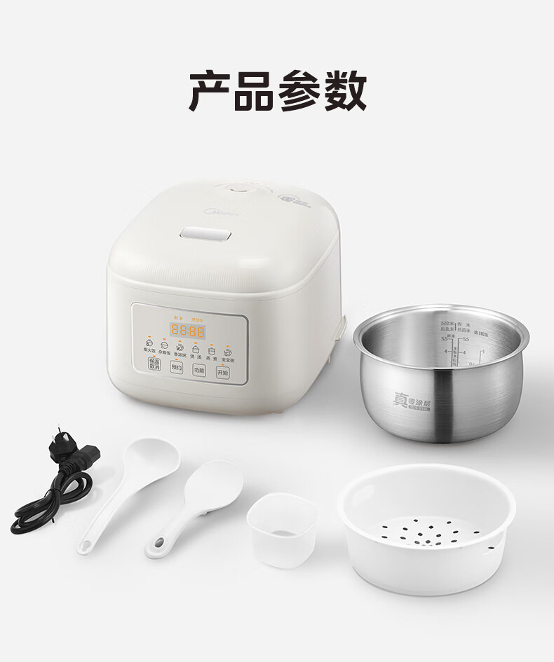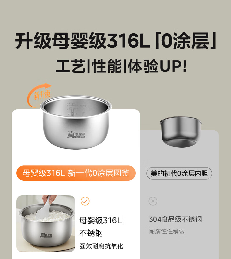 美的(Midea)电饭煲电饭锅家用商用柴火饭多功能预约小型迷你煮饭2-3-5-8人大容量不锈钢内胆不易粘锅年货好物 0涂层 3L 母婴级316L不锈钢内胆卡其灰偏白