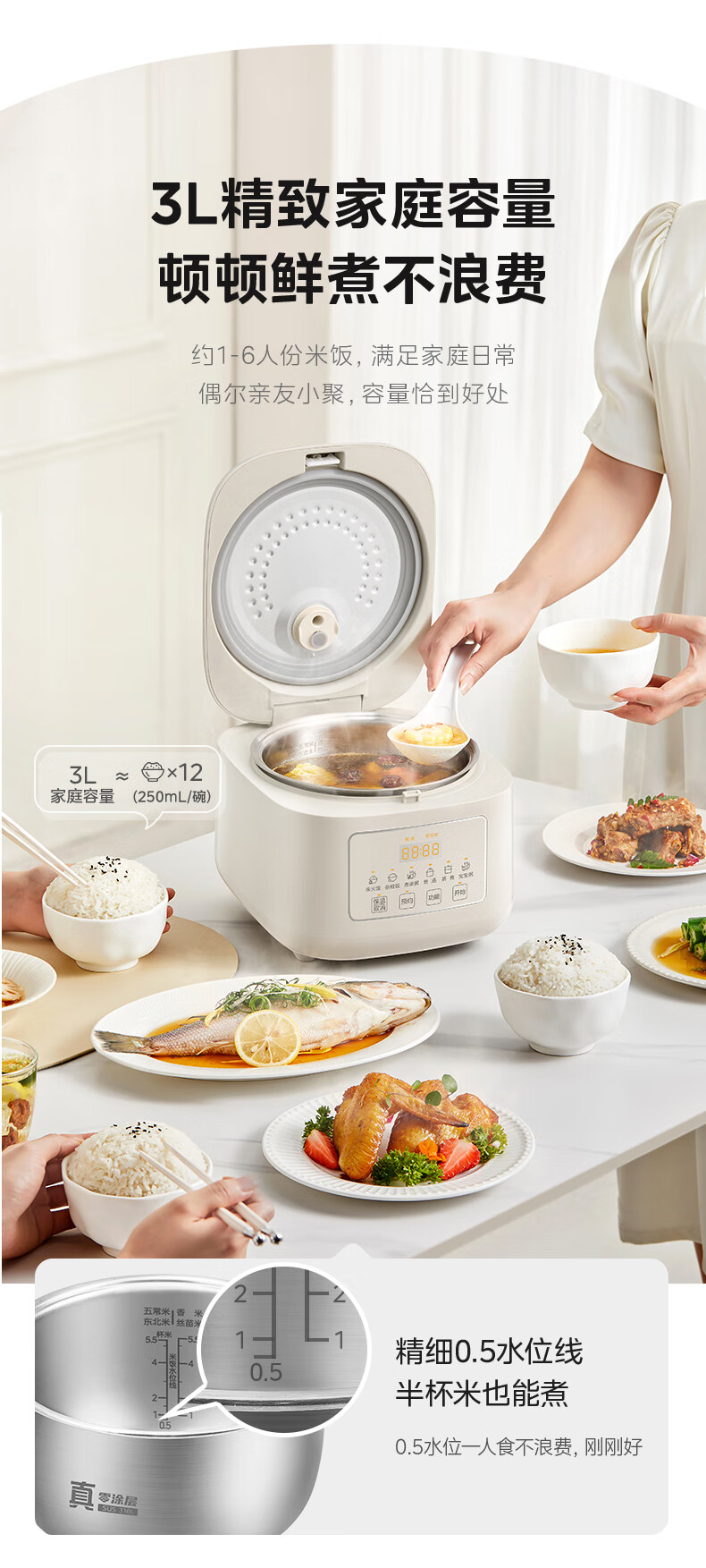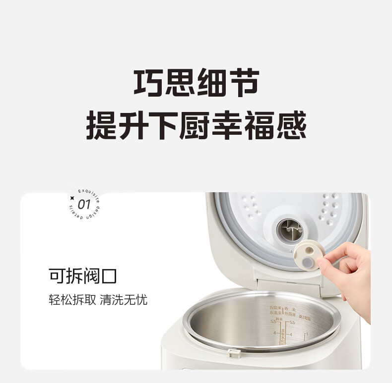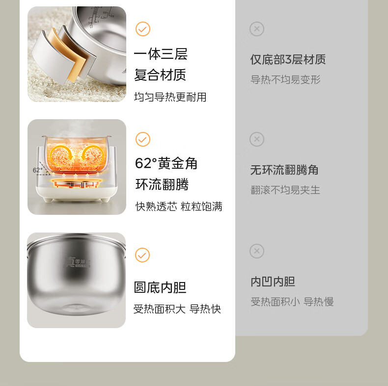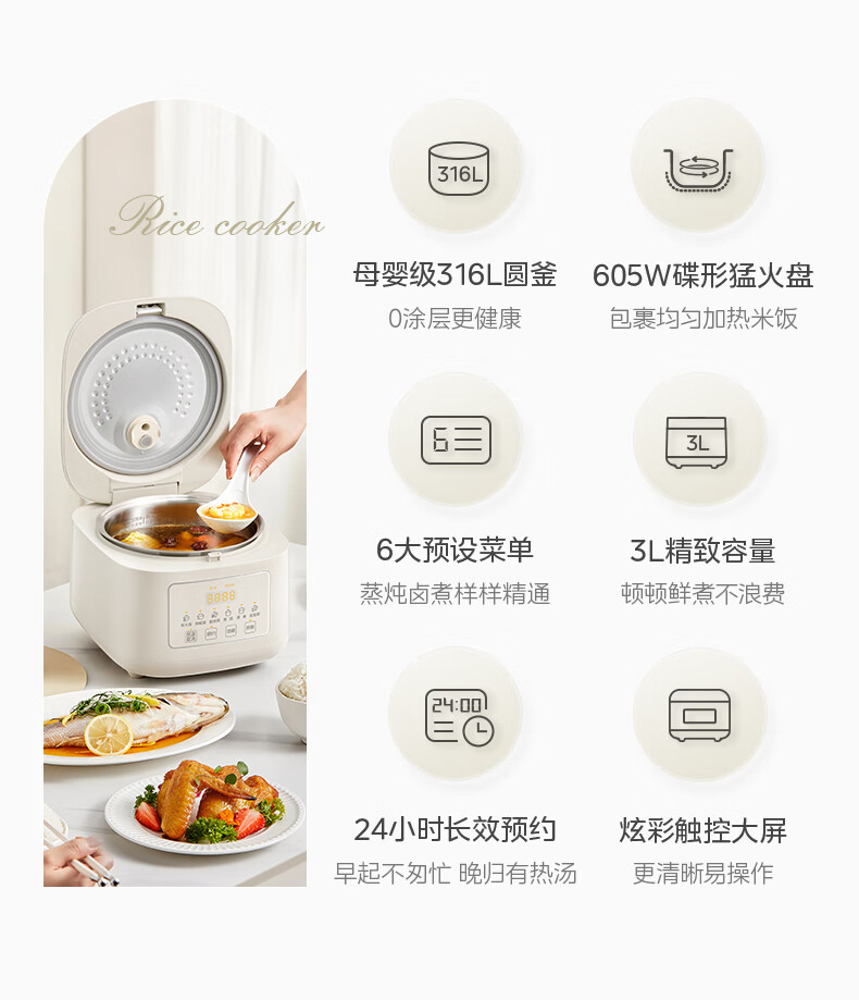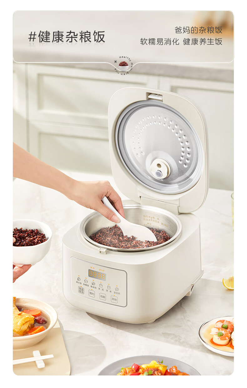 美的(Midea)电饭煲电饭锅家用商用柴火饭多功能预约小型迷你煮饭2-3-5-8人大容量不锈钢内胆不易粘锅年货好物 0涂层 3L 母婴级316L不锈钢内胆卡其灰偏白