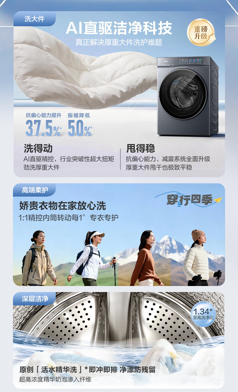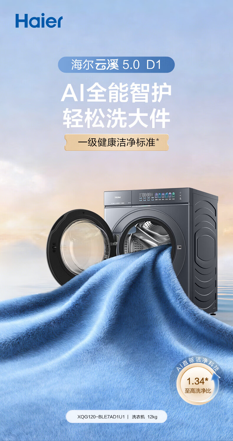 海尔(Haier)云溪5.0 滚筒洗衣机12公斤全自动单洗家用大容量全家筒D1系列 XQG100-BLE7AD1U1 滚筒