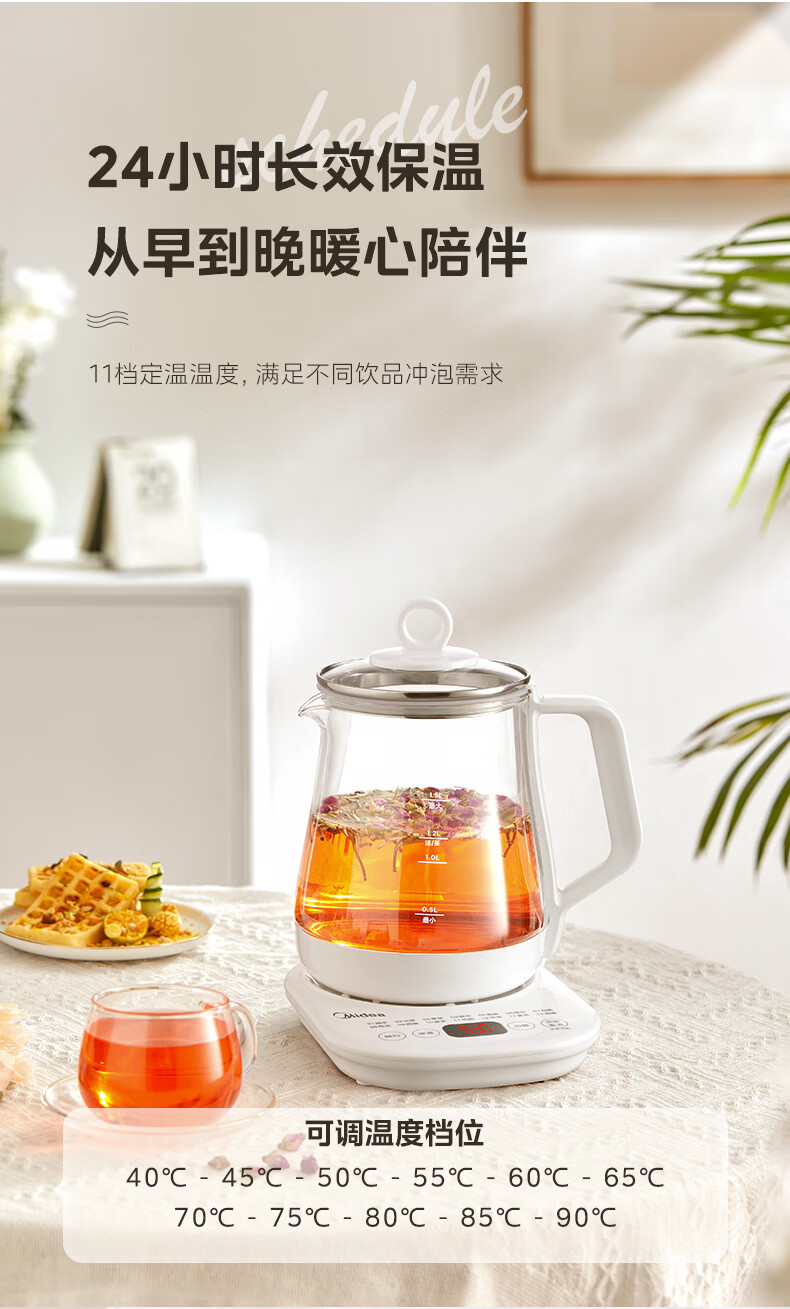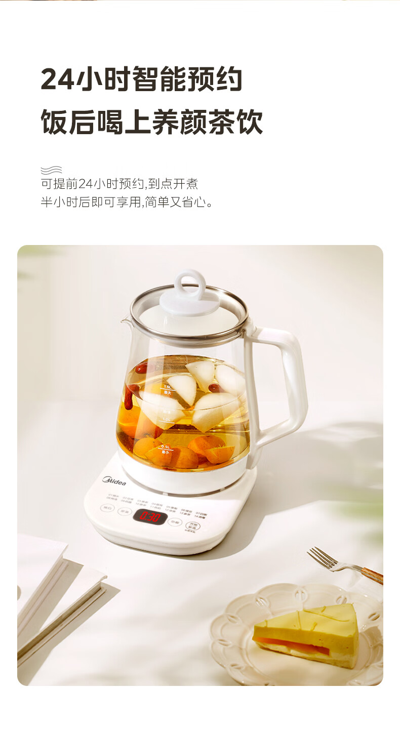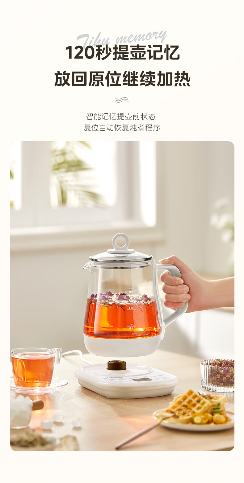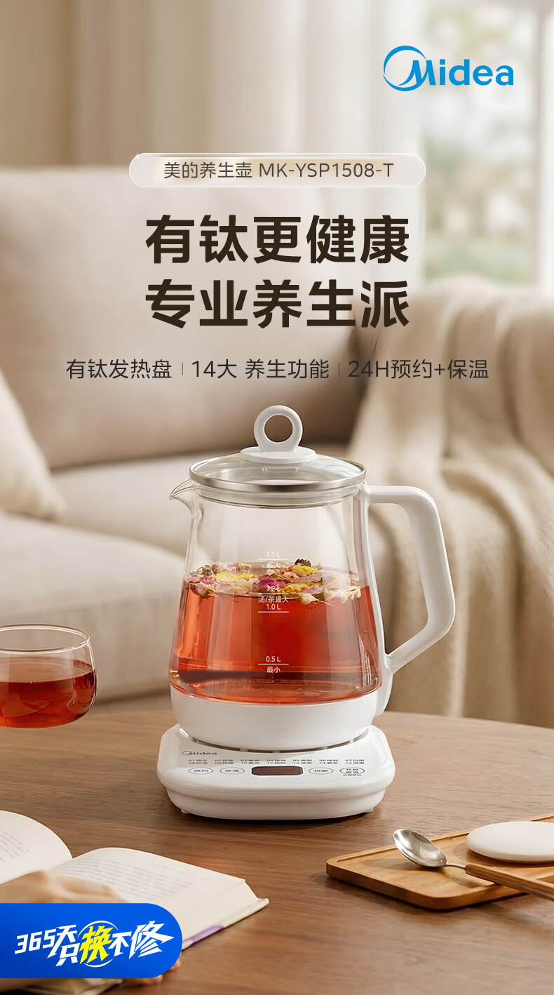 美的(Midea)养生壶【有钛】 1.5L全自动煮茶壶 花茶壶烧水壶24h恒温保温11档控温 电热水壶煮茶器办公室必备 1.5L 【有钛】2026升级新品