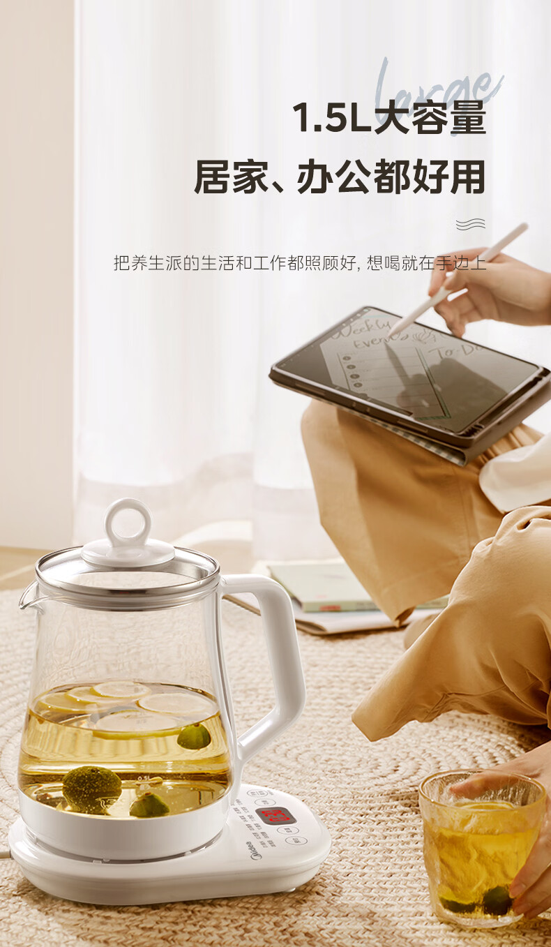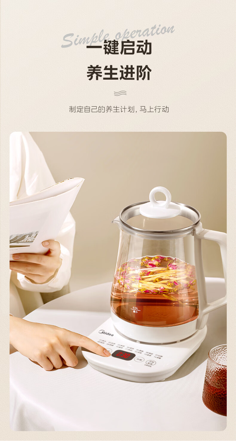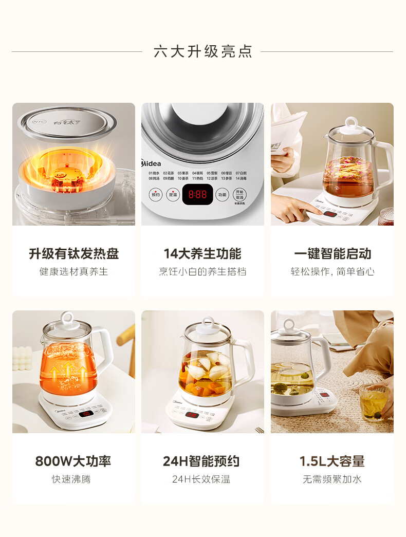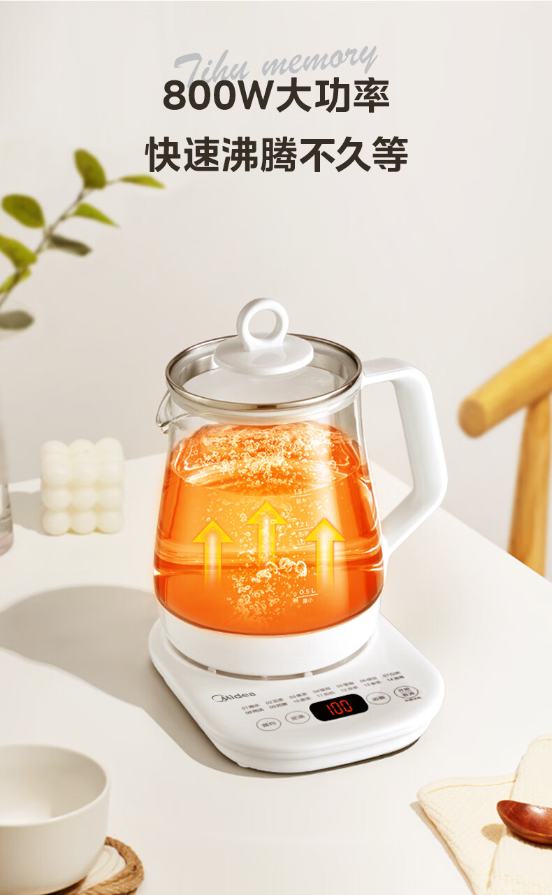 美的(Midea)养生壶【有钛】 1.5L全自动煮茶壶 花茶壶烧水壶24h恒温保温11档控温 电热水壶煮茶器办公室必备 1.5L 【有钛】2026升级新品