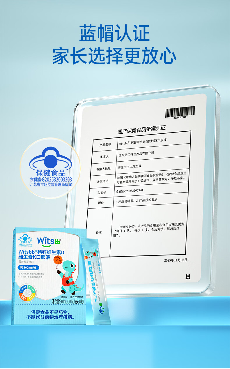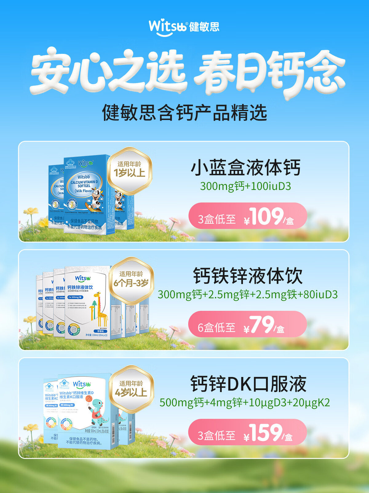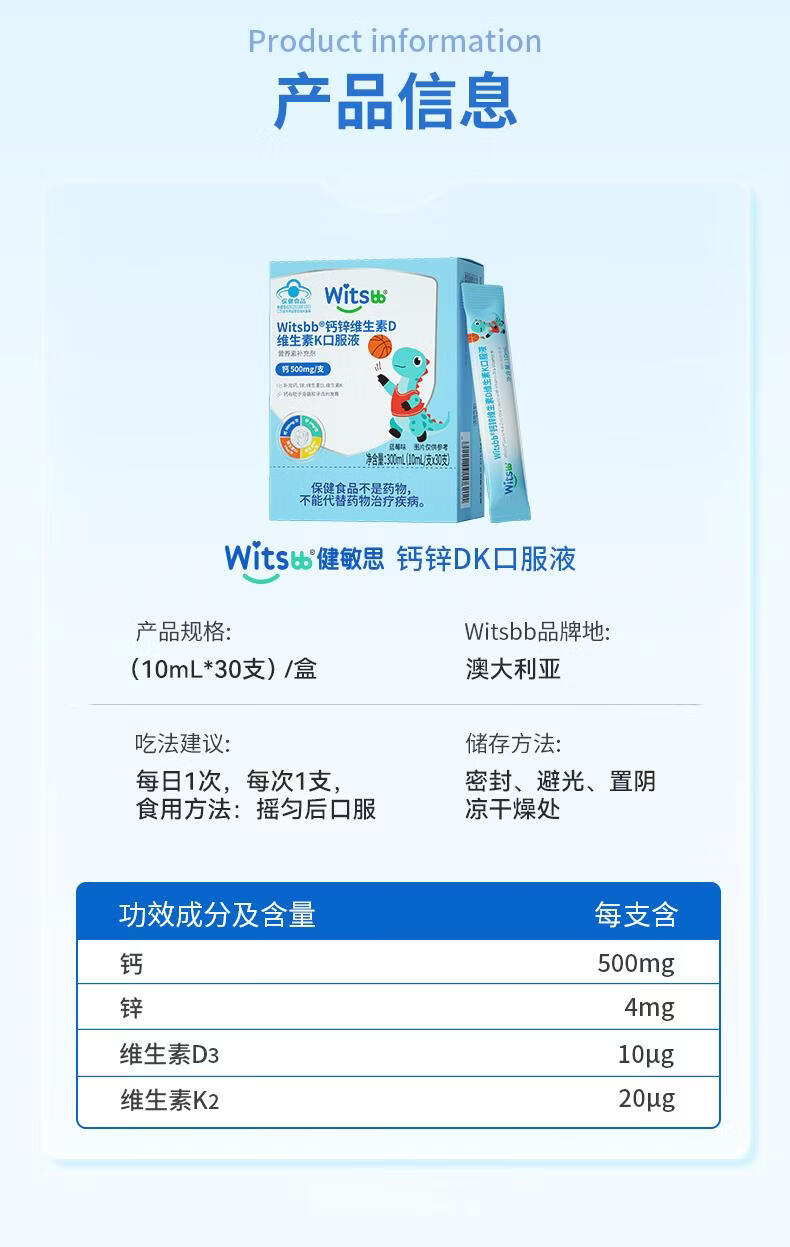 witsbb【春季补钙500mg】健敏思钙锌DK口服液VD3补钙柠檬酸钙